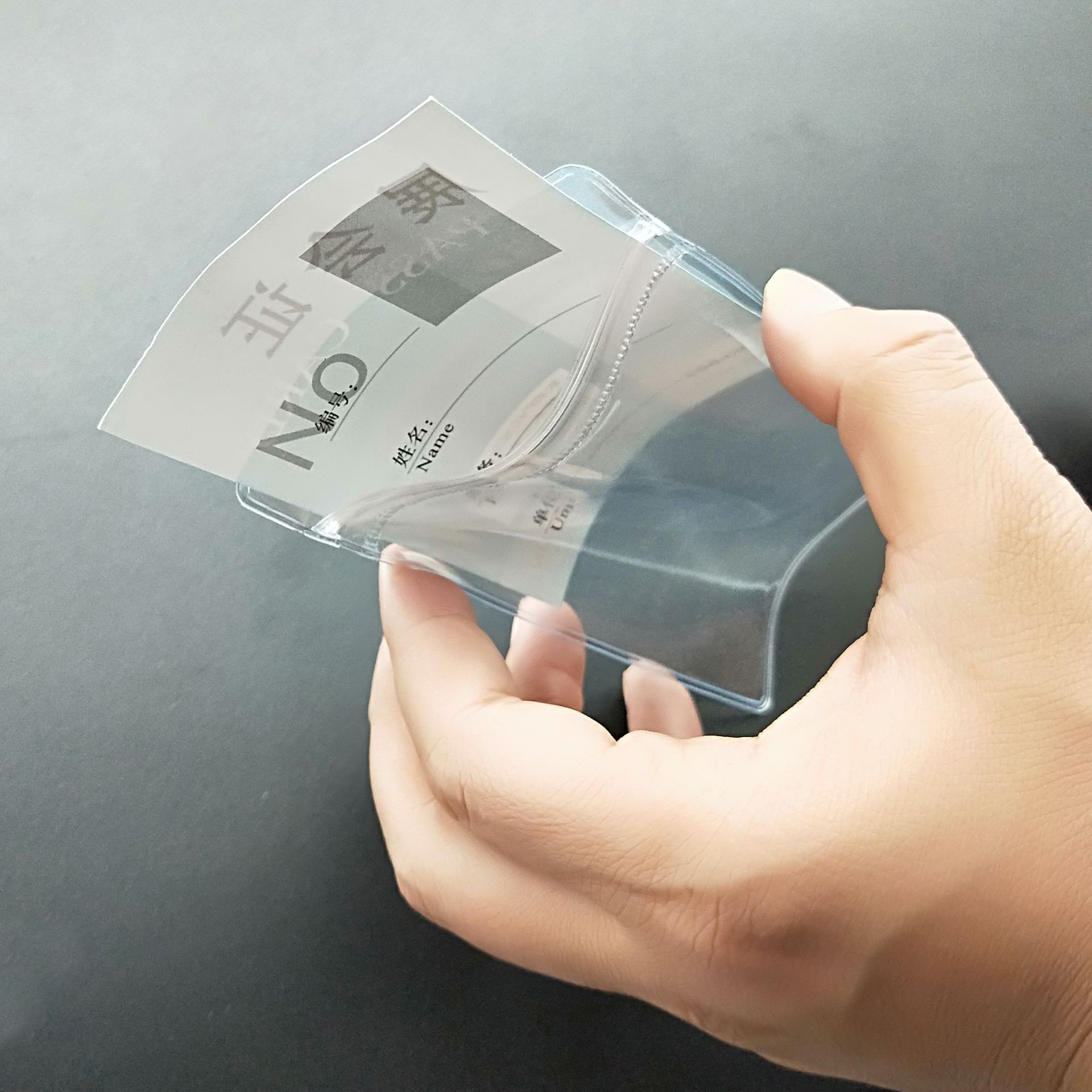 La tarjeta de exposición de PVC suave e impermeable está hecha de materias primas de PVC de Taiwán, el producto se siente grueso, tiene alta transparencia y el diseño único de apertura impermeable puede proteger más eficazmente el papel interior de daños. Está especialmente diseñado para su uso en ambientes húmedosUn producto hecho a medida para el personal que trabaja en el entorno. Adecuado para colocar diversas tarjetas de identificación como tarjetas de empleado, permisos de trabajo, gafetes con número de empleado, identificaciones de estudiante, tarjetas VIP de conferencia, permisos de acceso, etc.