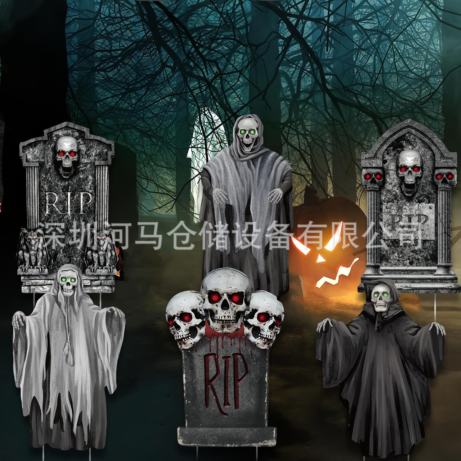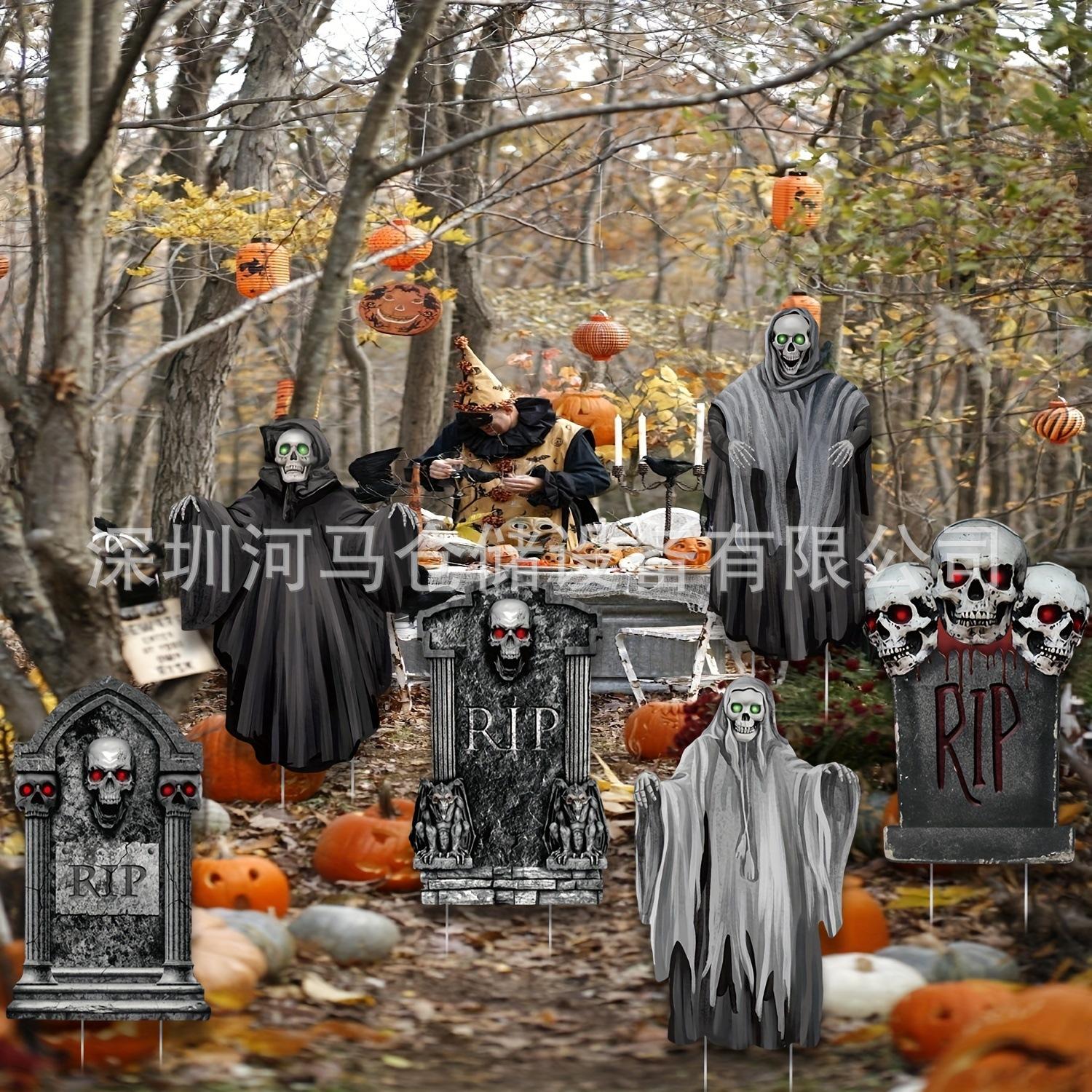 2025 Halloween Transfronterizo Inserción de Piso Lápida Exterior Calavera Señal de Patio Decoración de Fiesta Temática de Terror