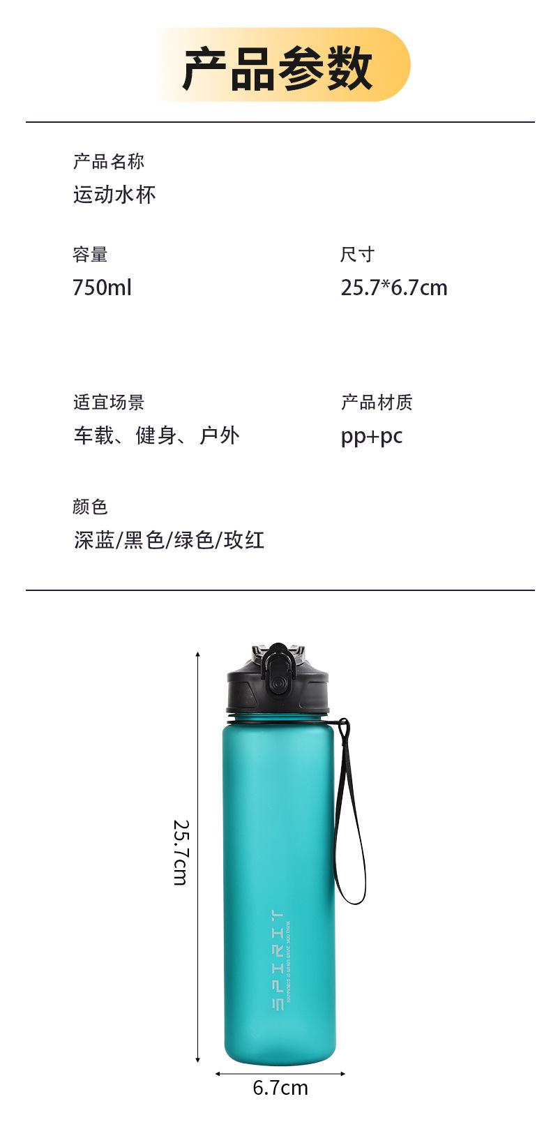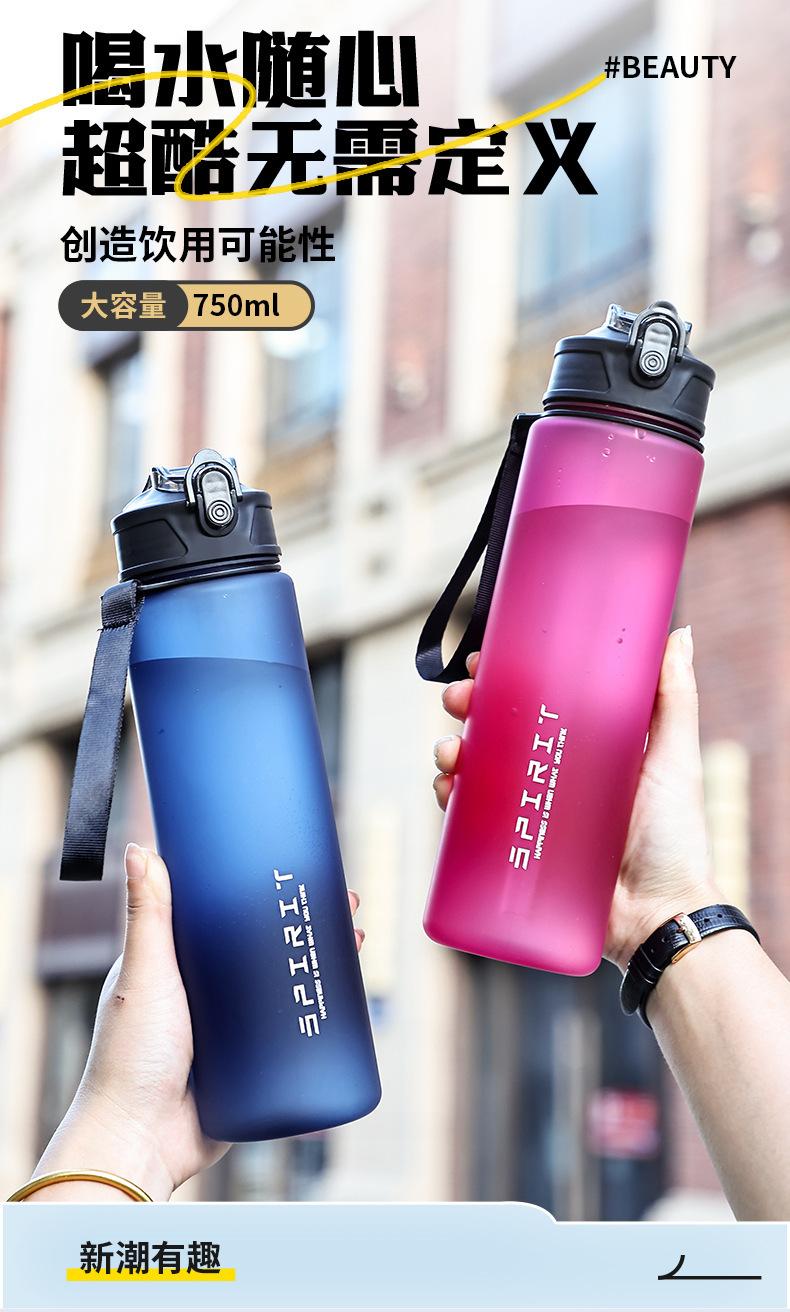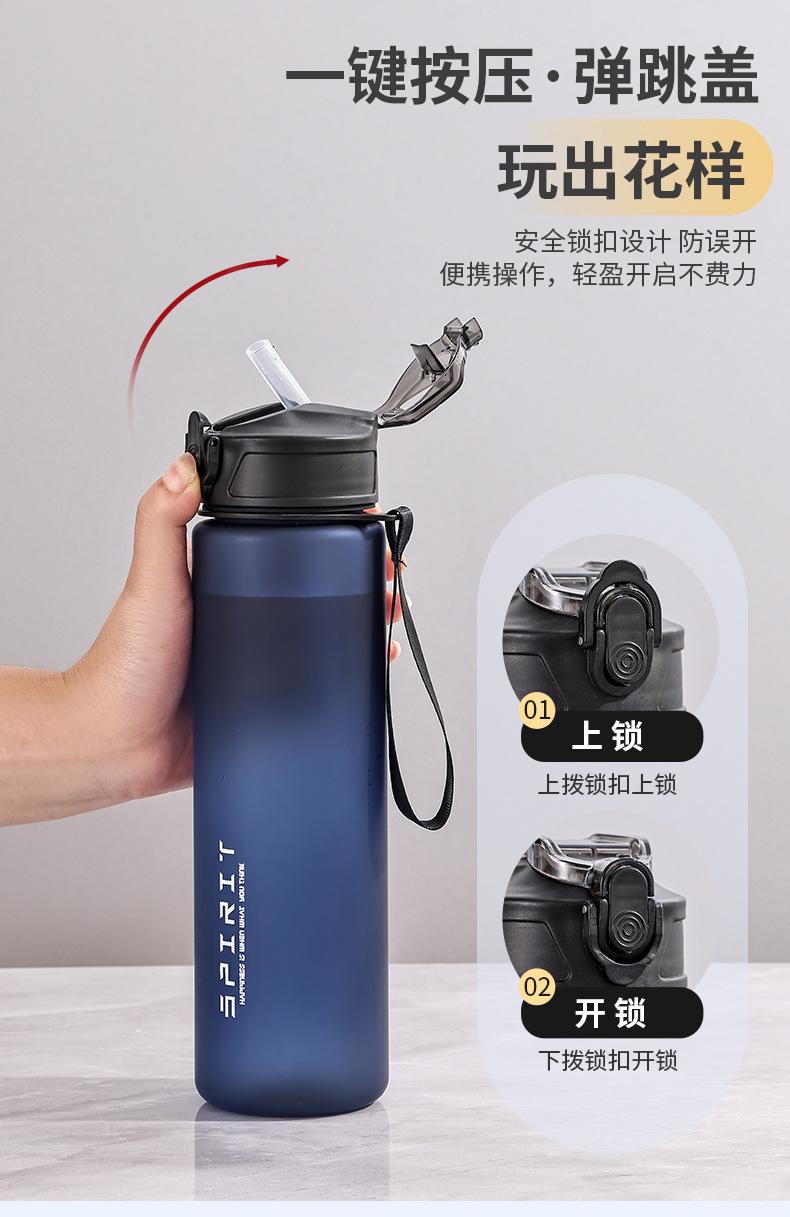 Vaso de Agua de Plástico Simple Transfronterizo Vaso Espacial Vaso con Pajita Cuerda Deportes al Aire Libre 750ml Tapa Emergente para Hombre Resistente a Caídas