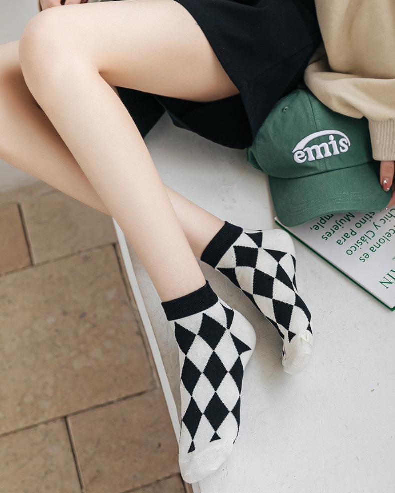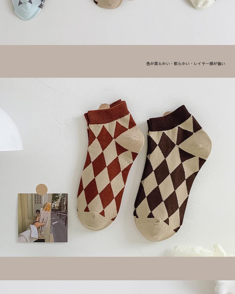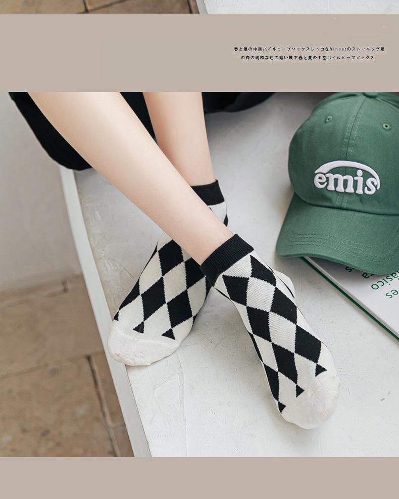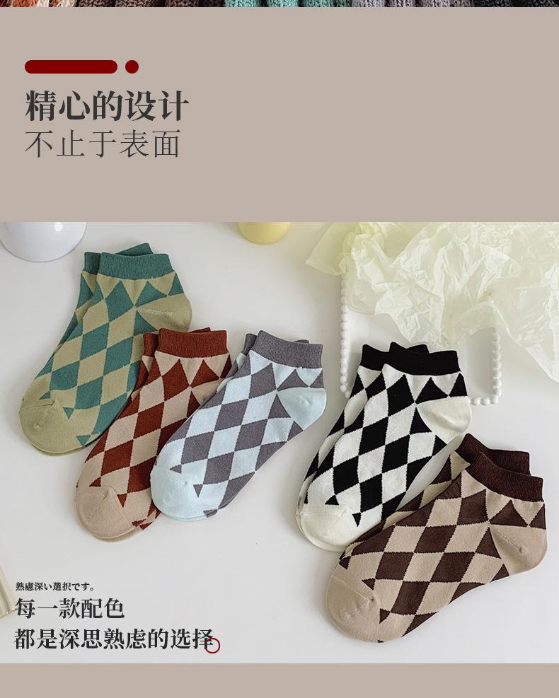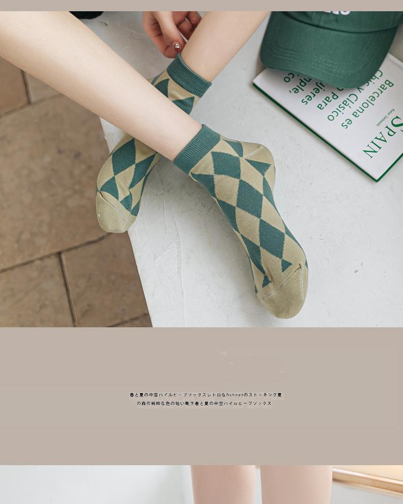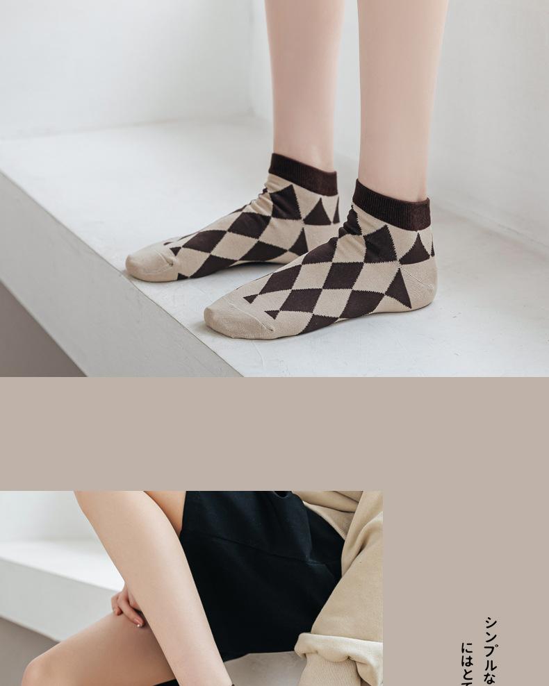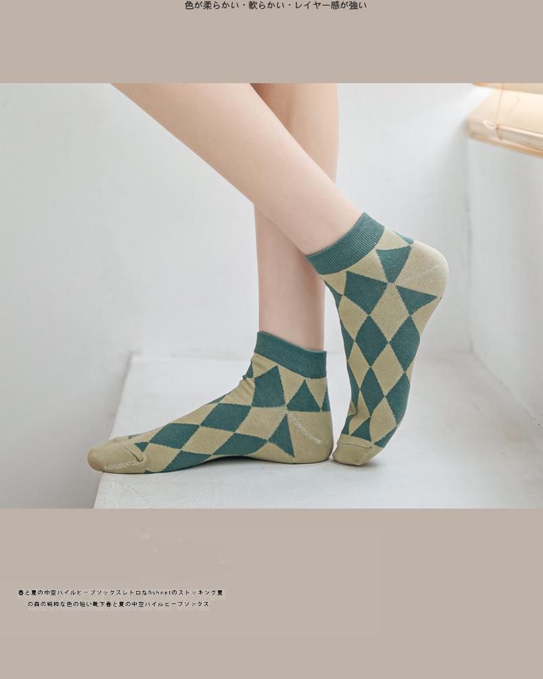 Calcetines Otoño Delgados Estilo Coreano Estilo Universitario Calcetines de Algodón para Mujer Cuadros Retro Japoneses ins Modernos Calcetines Cortos para Mujer