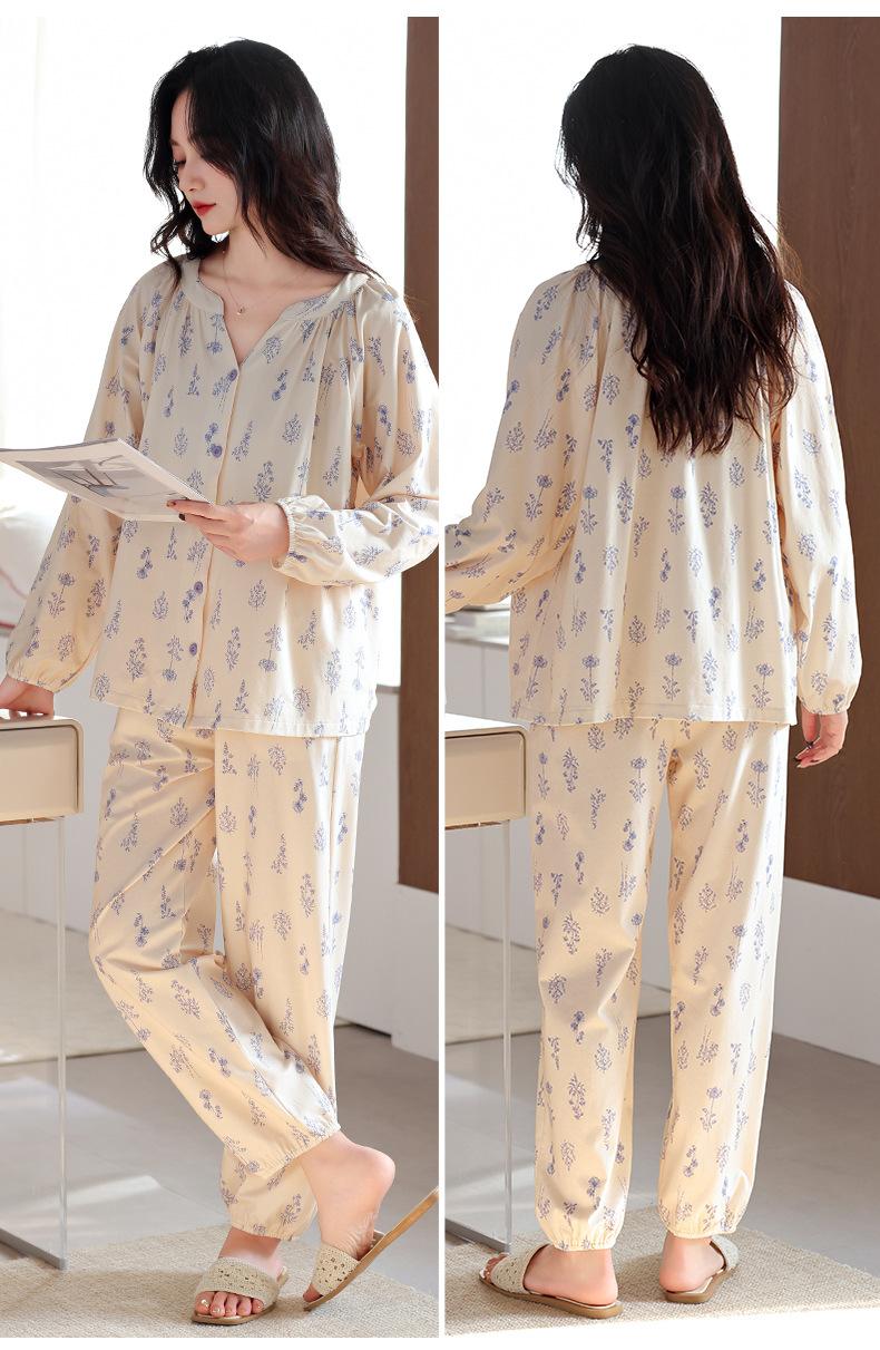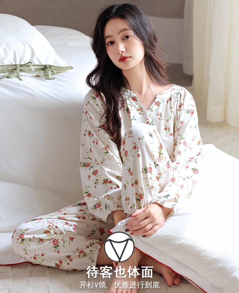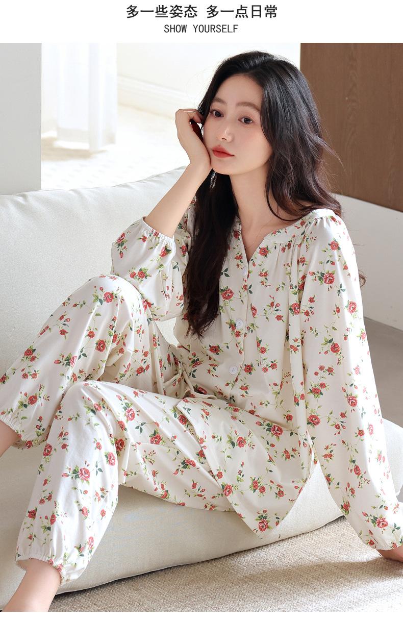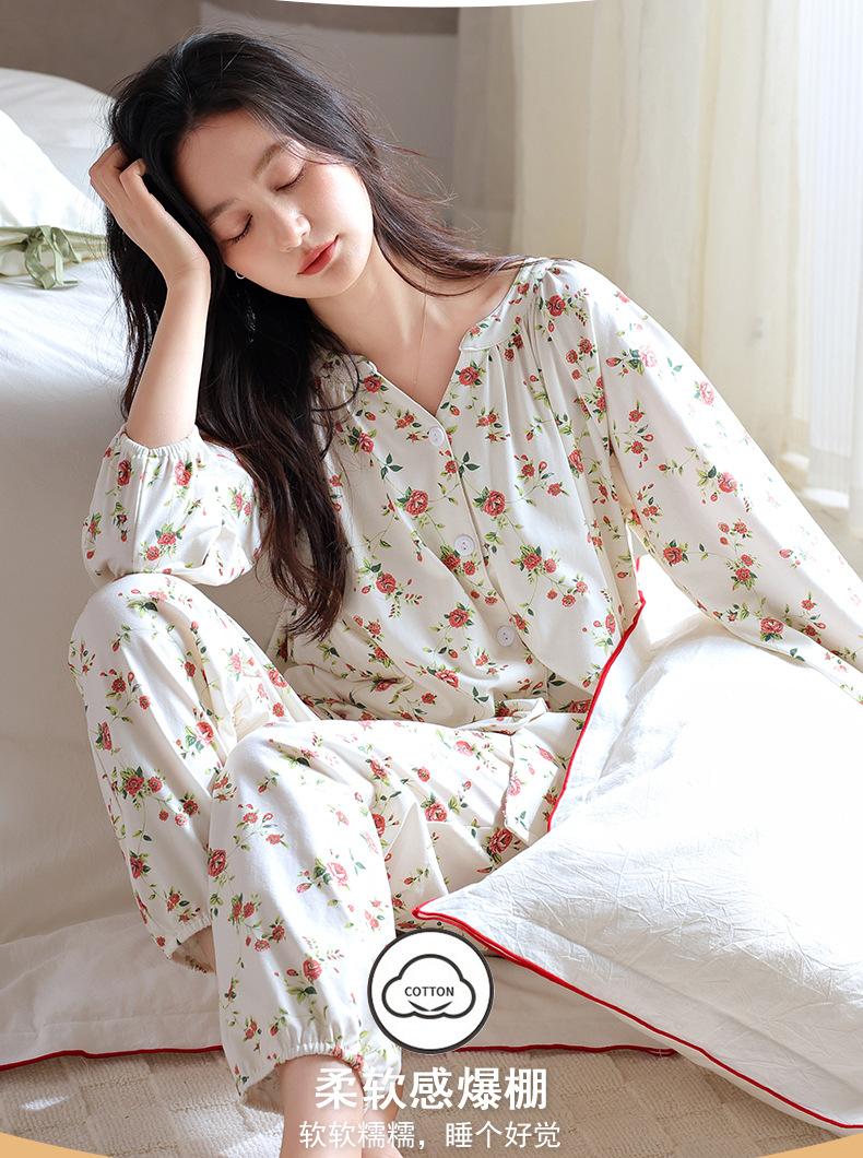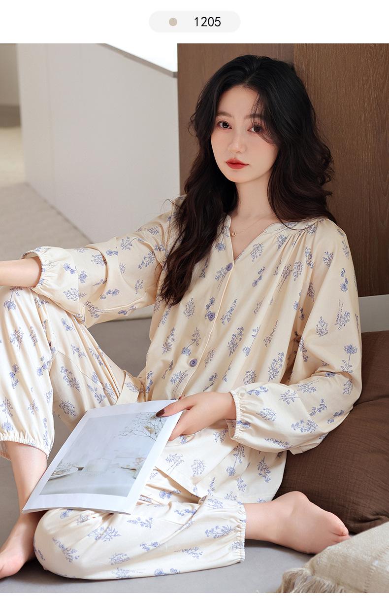 Pijama de Mujer Primavera y Otoño Algodón Puro Manga Larga Otoño Algodón Puro Delgada Talla Grande Otoño Alta Gama Ropa para el Hogar para Usar Afuera