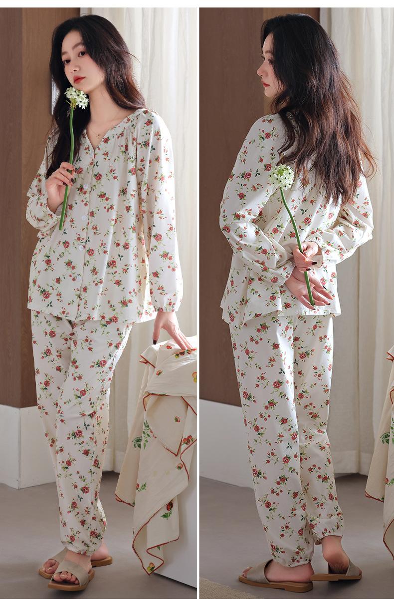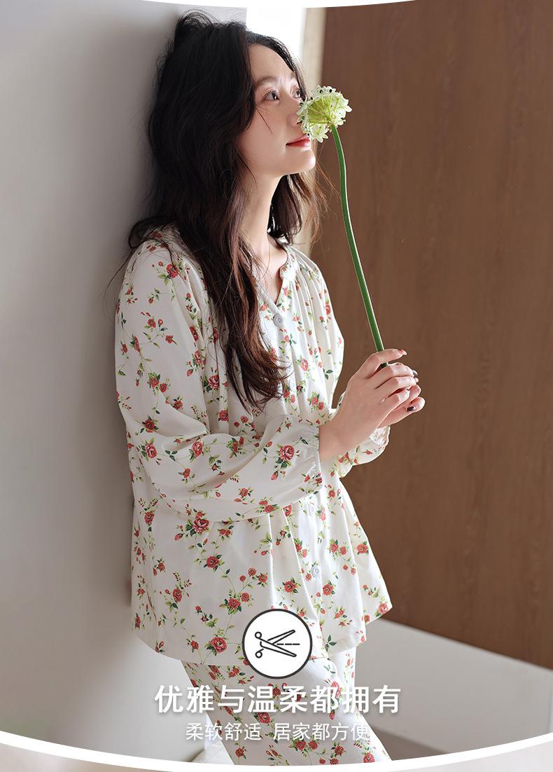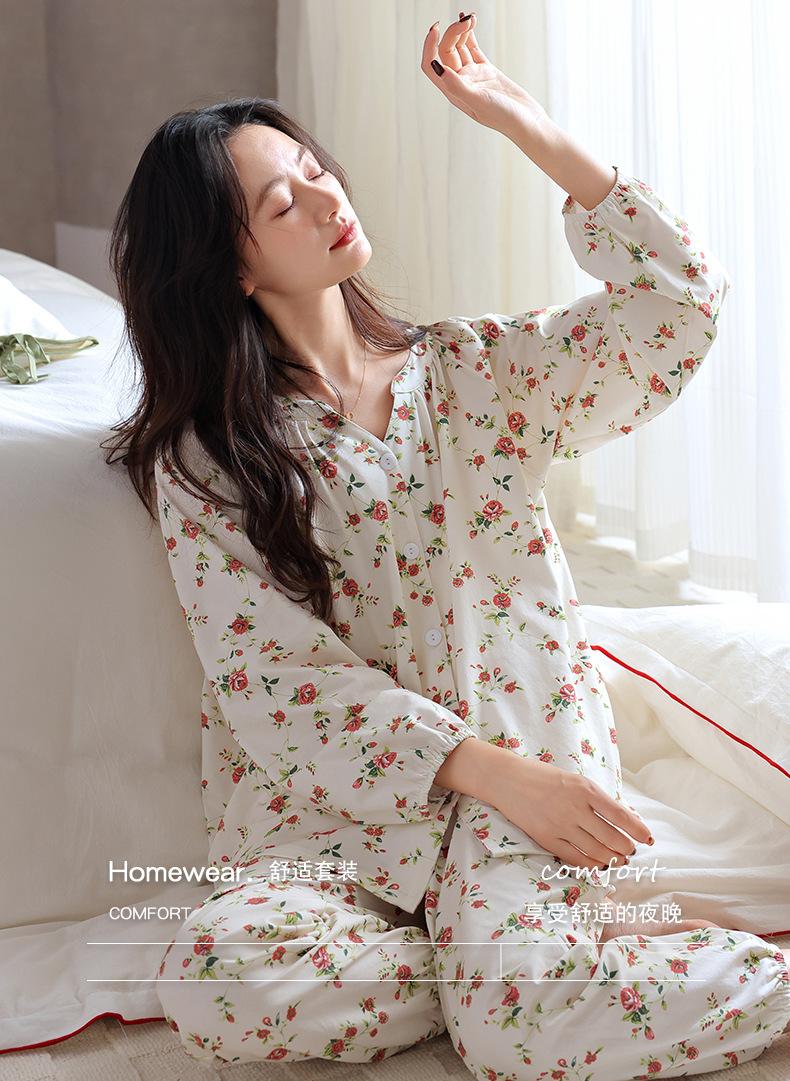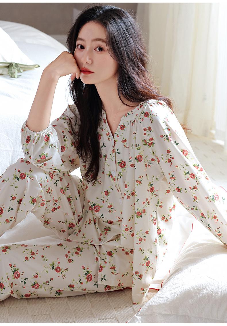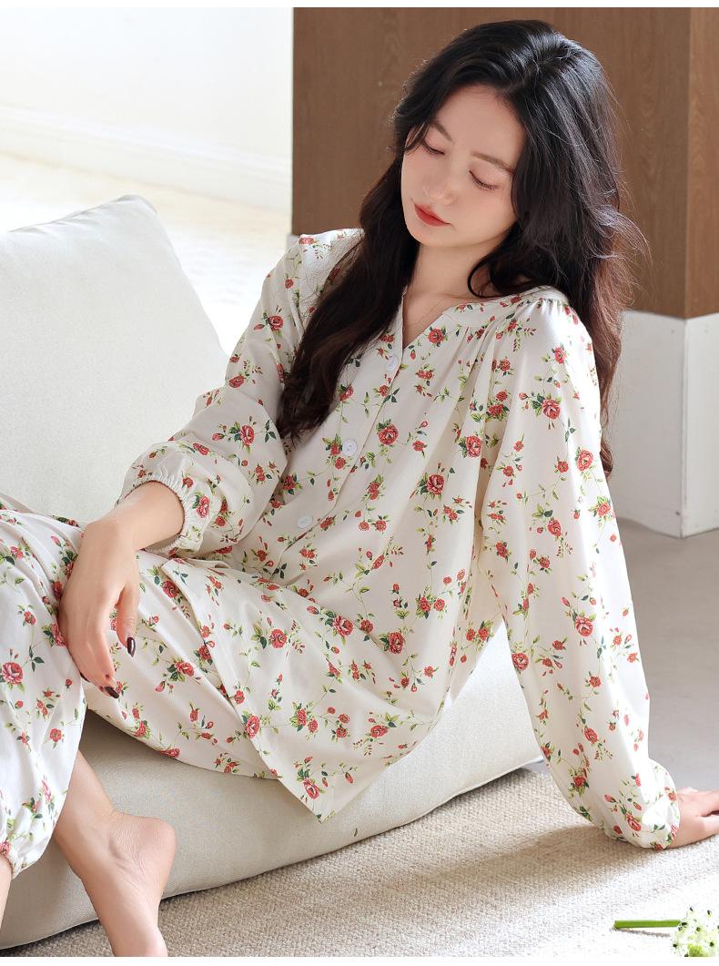 Pijama de Mujer Primavera y Otoño Algodón Puro Manga Larga Otoño Algodón Puro Delgada Talla Grande Otoño Alta Gama Ropa para el Hogar para Usar Afuera