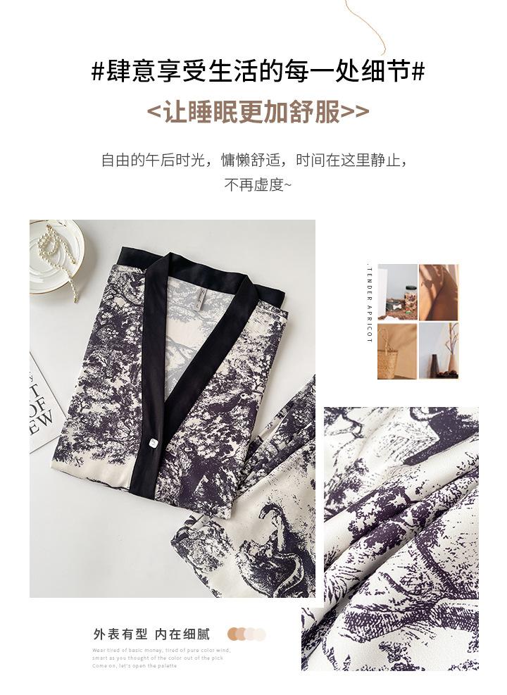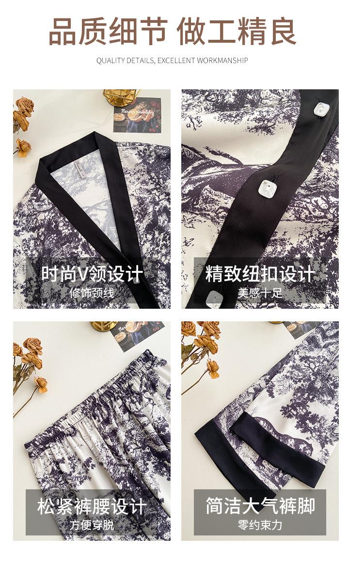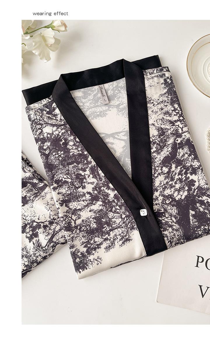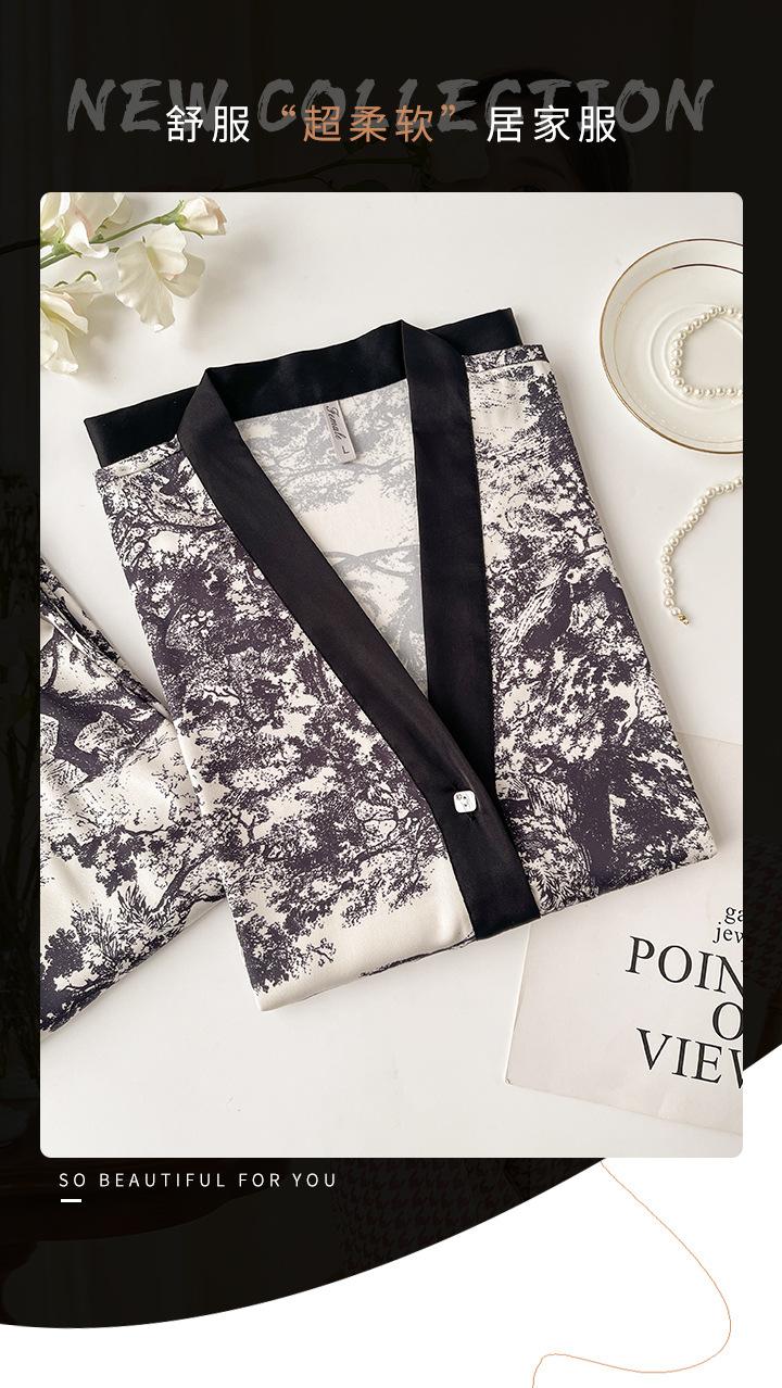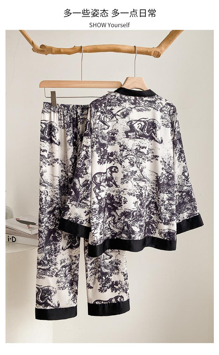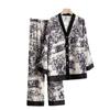 Pijamas de Alta Gama para Mujer Primavera y Otoño Nueva Moda Pintura con Tinta Ropa para el Hogar Delgada Seda de Hielo Manga Larga Pantalones Traje para el Hogar