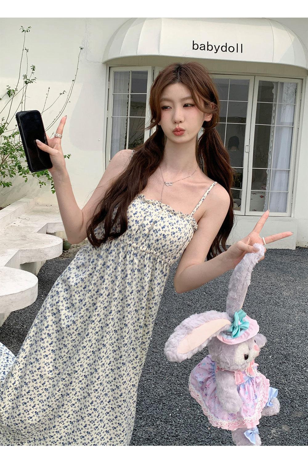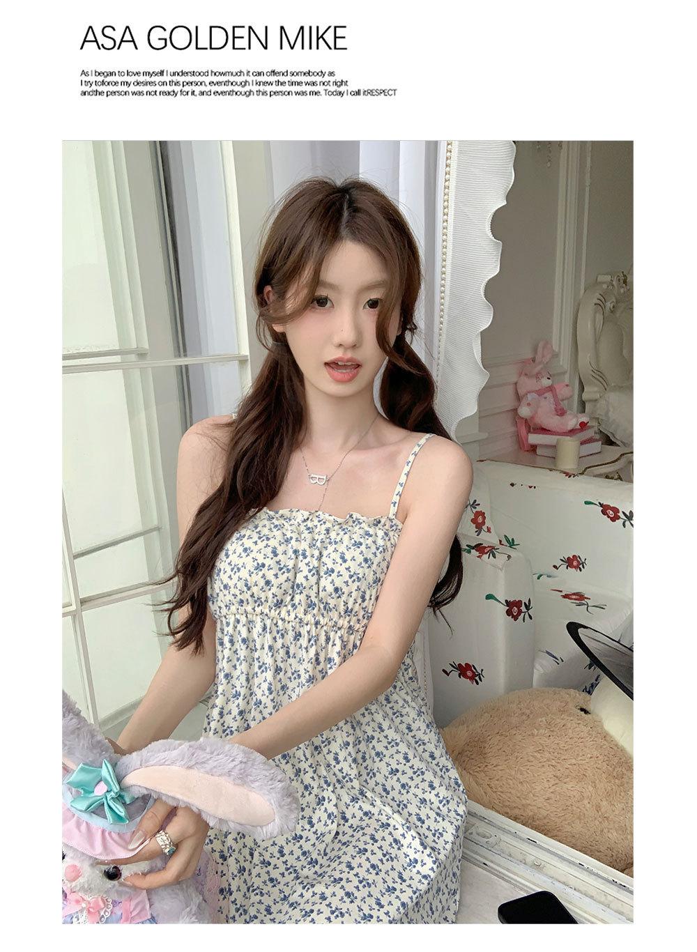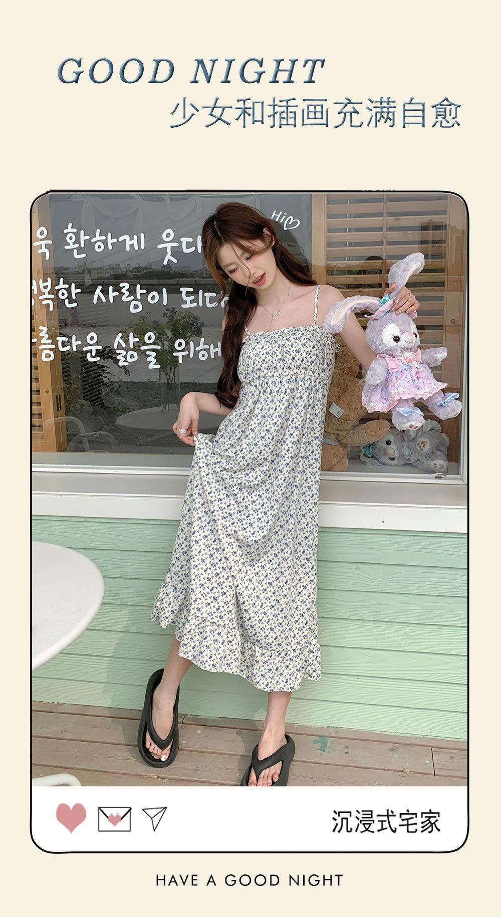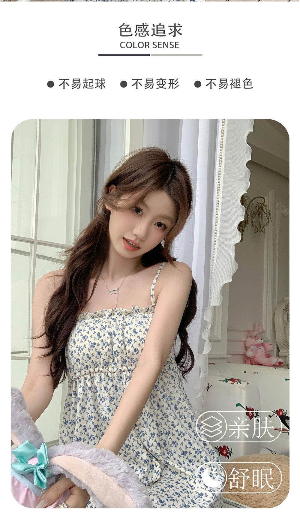 Camisón de tirantes de verano para mujer con almohadilla en el pecho, pijama de puro deseo, vestido floral, comercio exterior, venta al por mayor, traje de ropa exterior