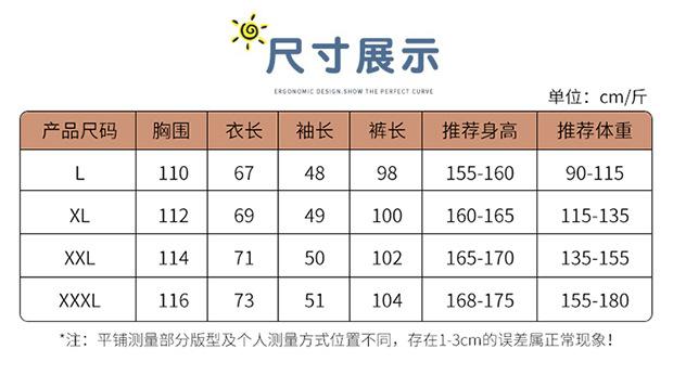 L size (90-115 catties), XL (115-135 catties), XXL (135-155 catties), 3XL (155-180 catties)