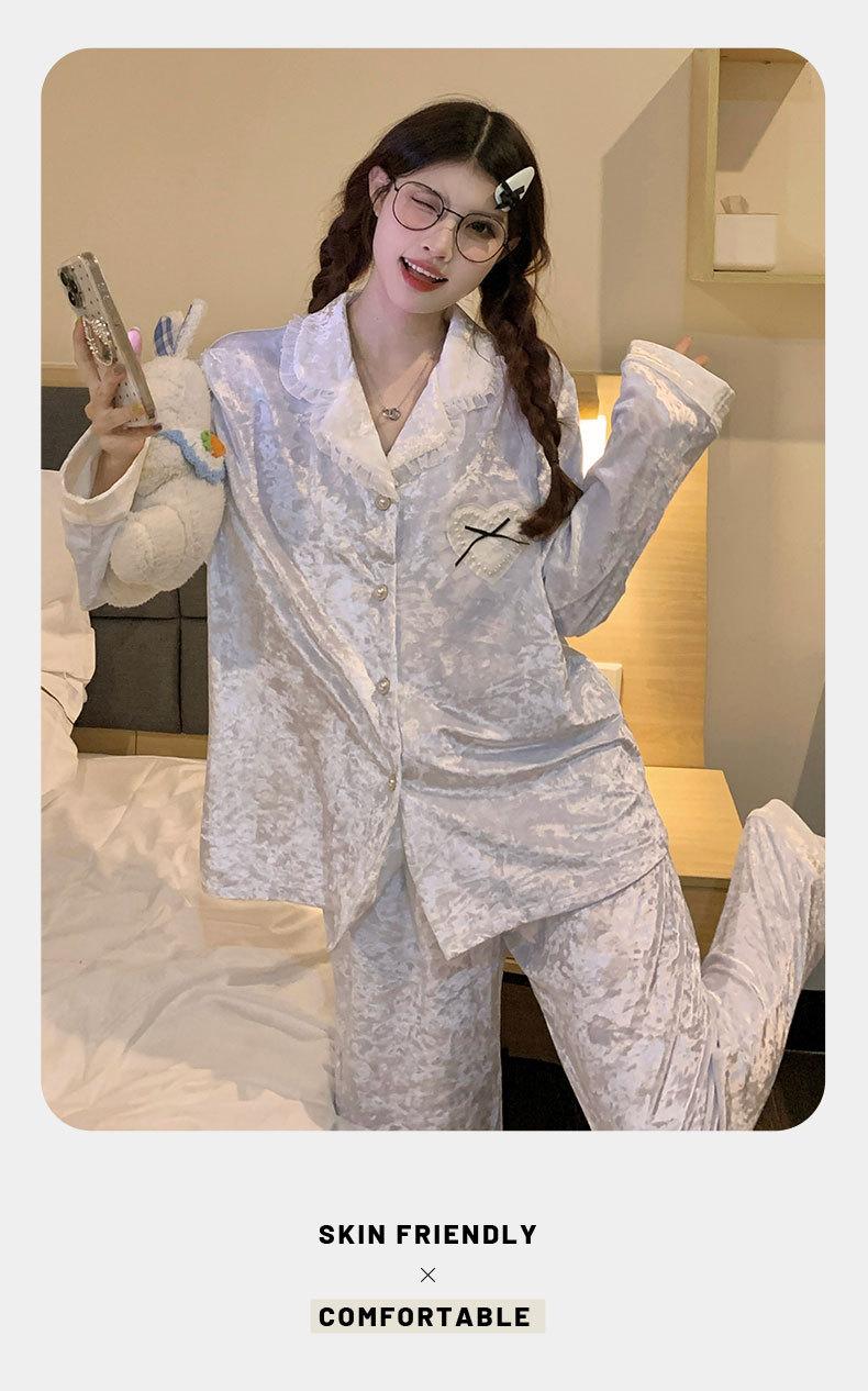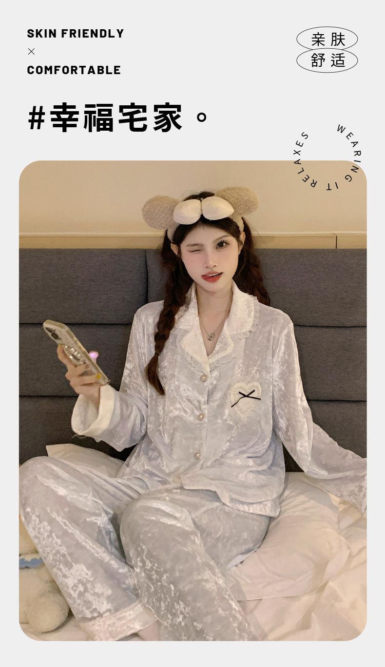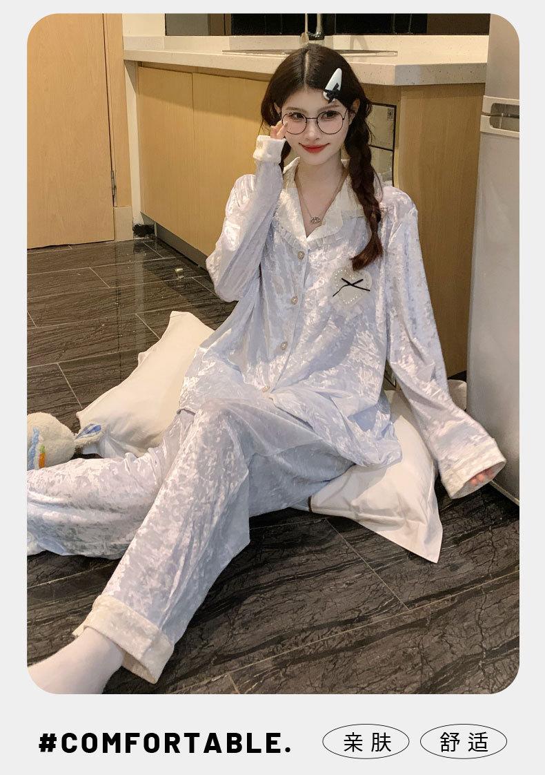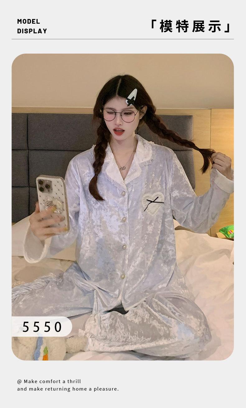 Pijama para Mujer Primavera Otoño Invierno Nuevo Dulce Sencillo Rojo de Internet Terciopelo Dorado Ropa de Dormir Conjunto de Dos Piezas