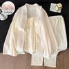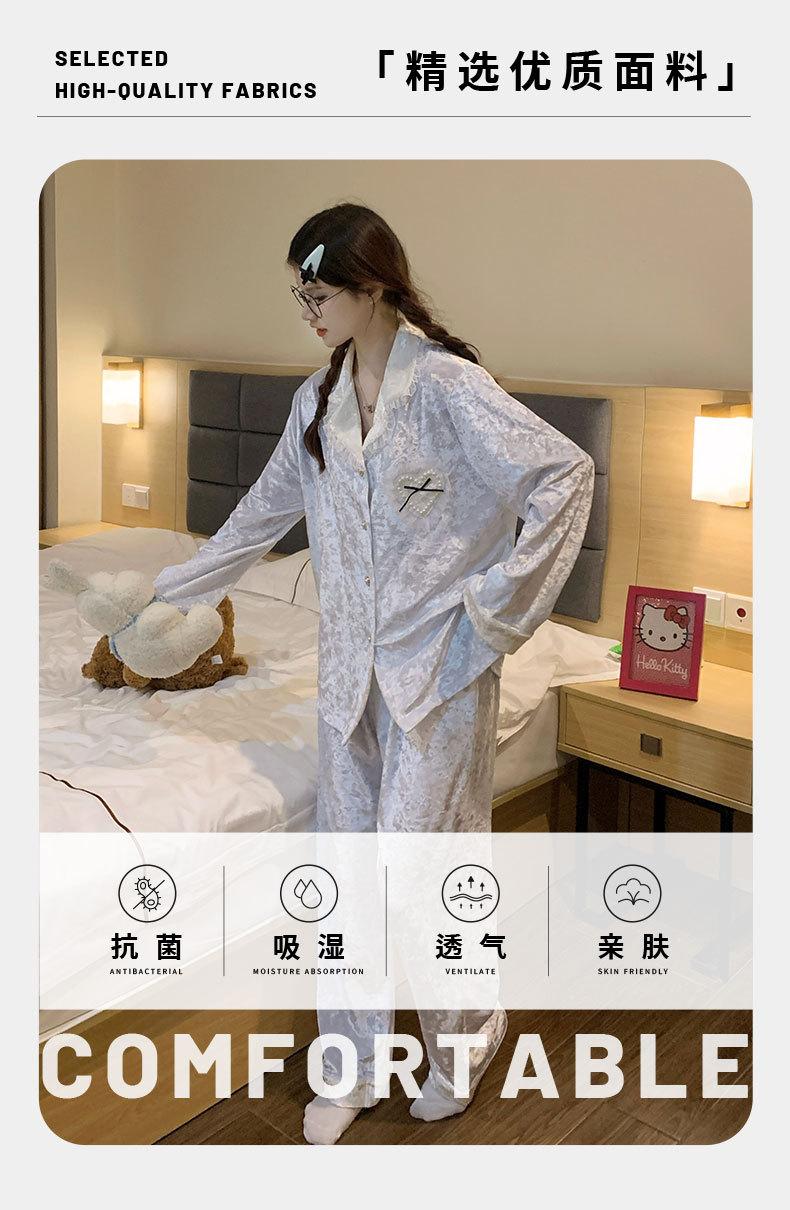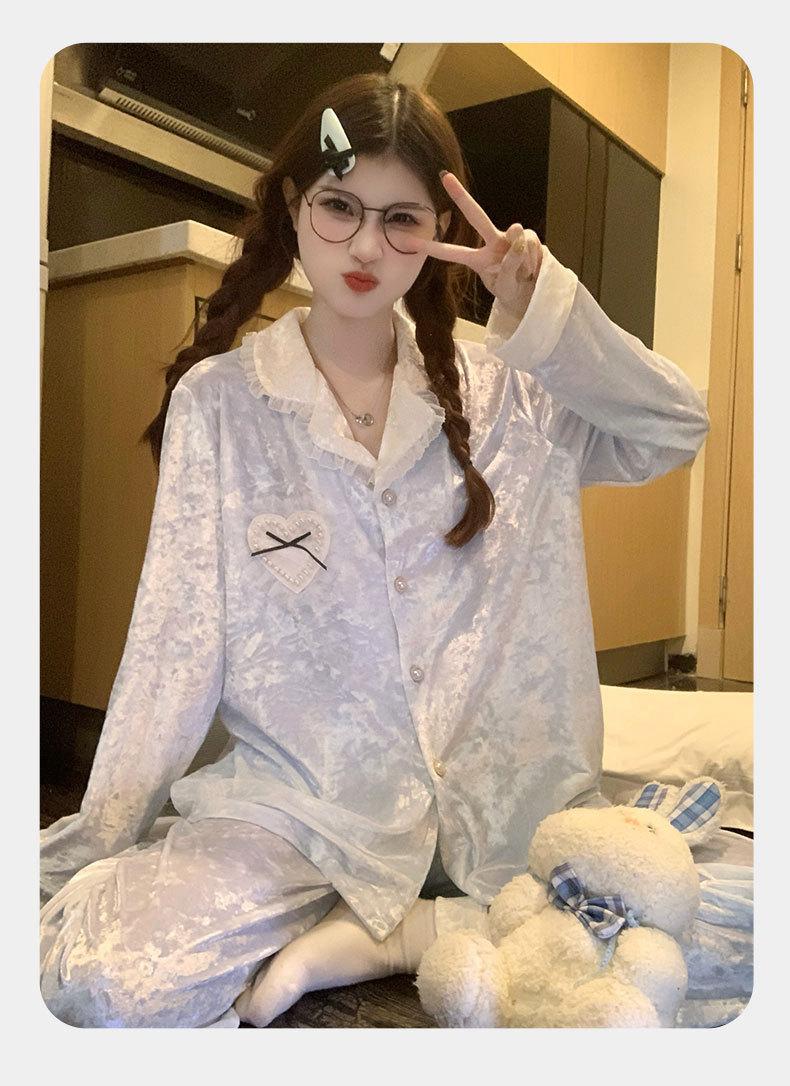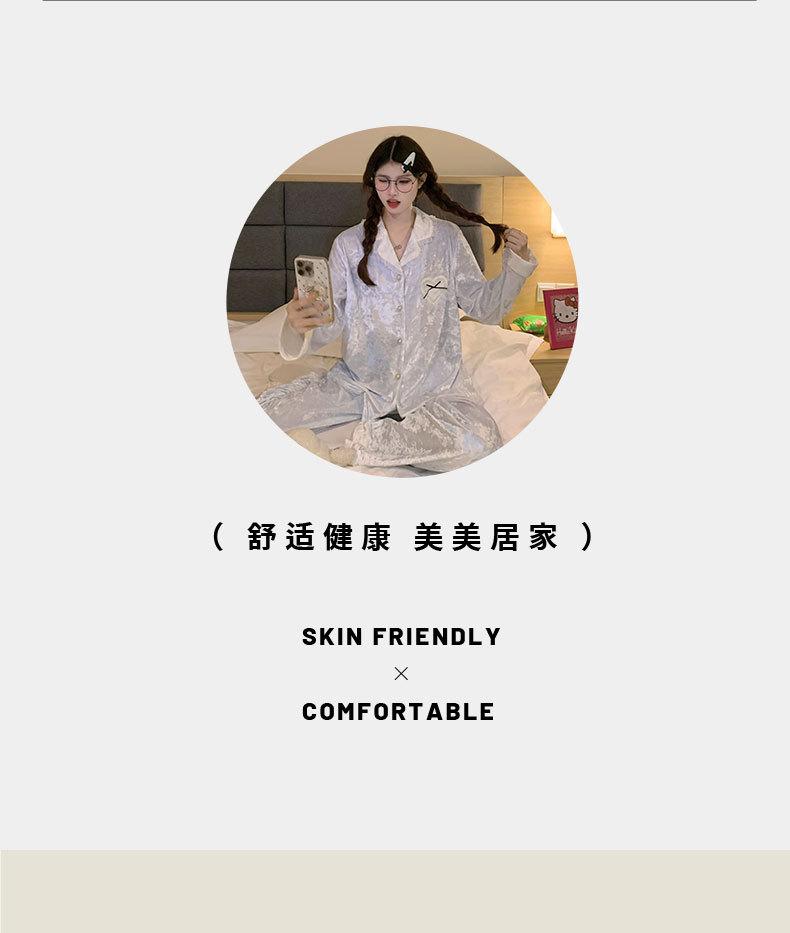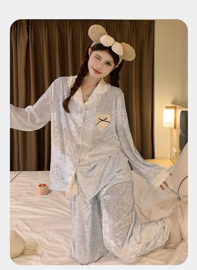 Pijama para Mujer Primavera Otoño Invierno Nuevo Dulce Sencillo Rojo de Internet Terciopelo Dorado Ropa de Dormir Conjunto de Dos Piezas