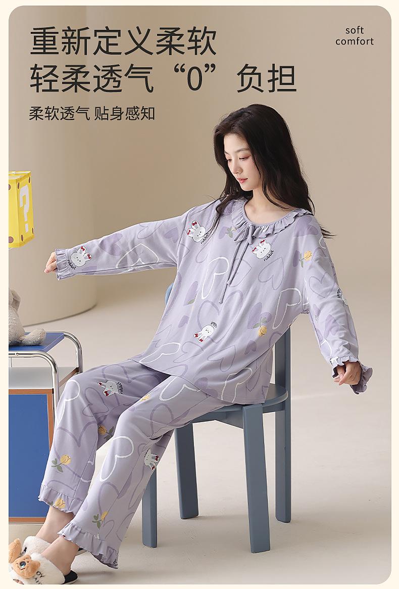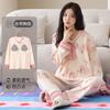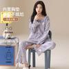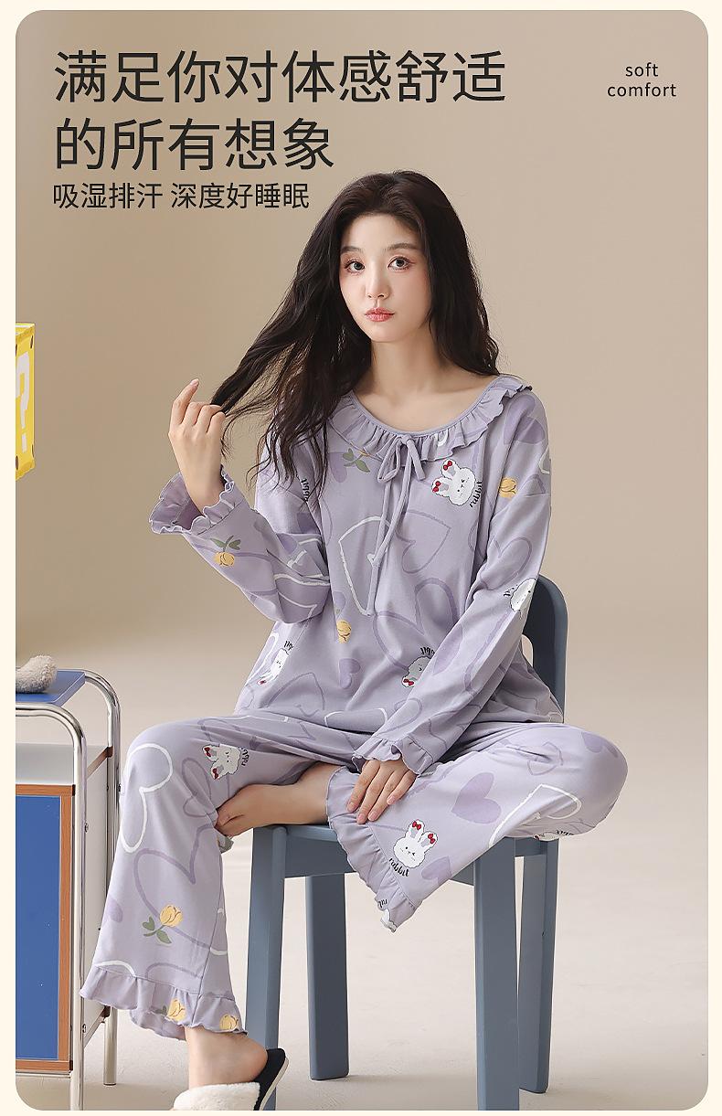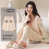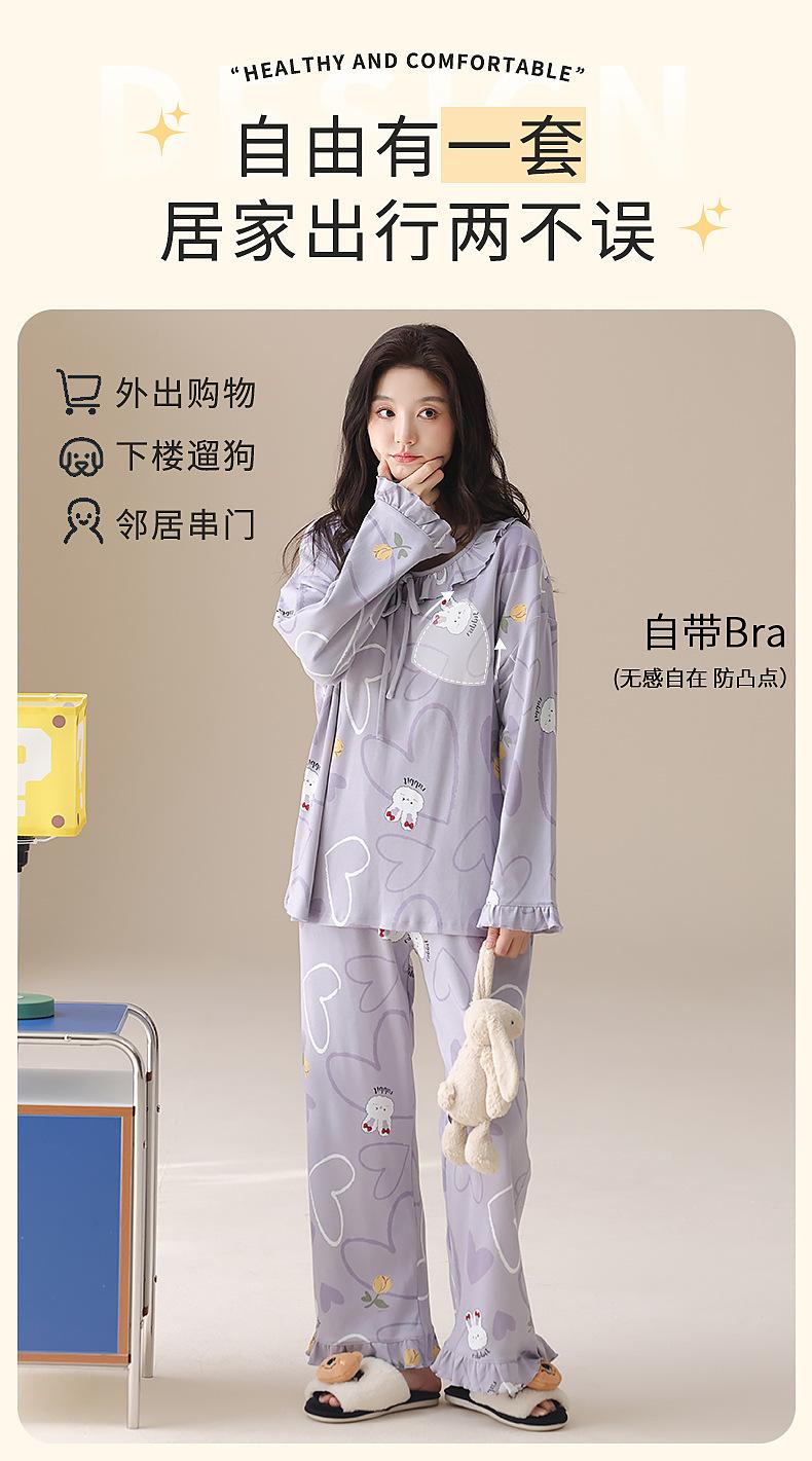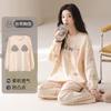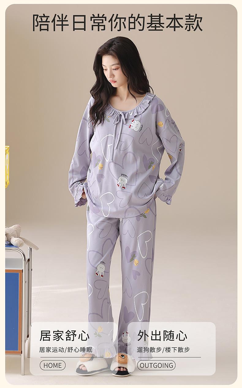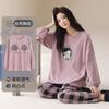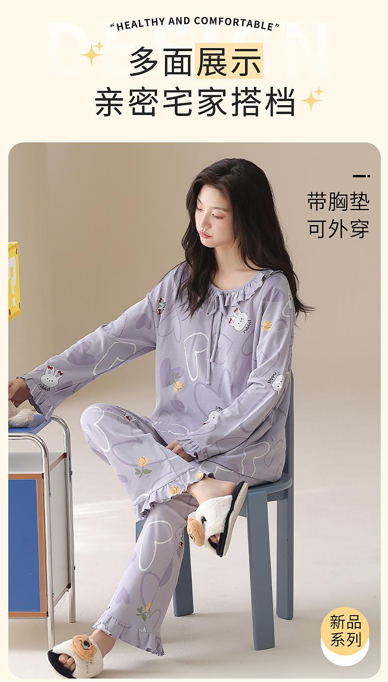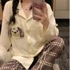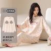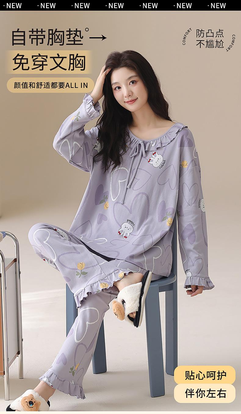 Pijama de Mujer de Algodón Puro de Manga Larga Suelto Casual de Dibujos Animados para Primavera y Otoño 2025 con Almohadillas en el Pecho Se Puede Usar Afuera