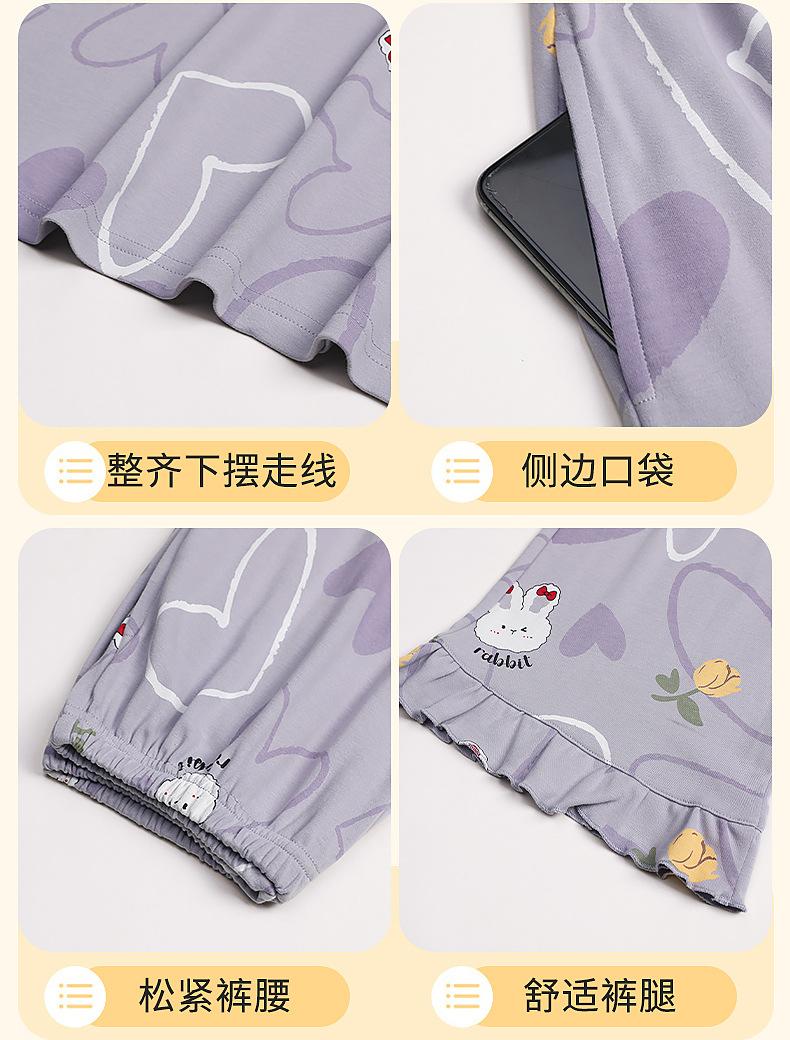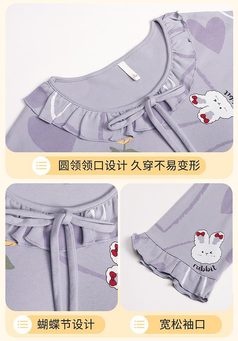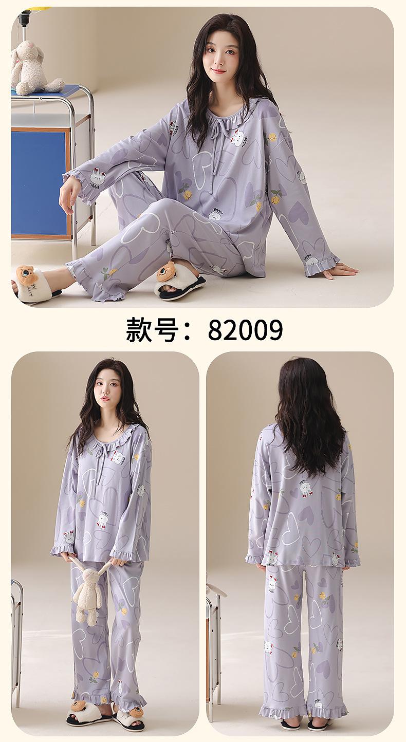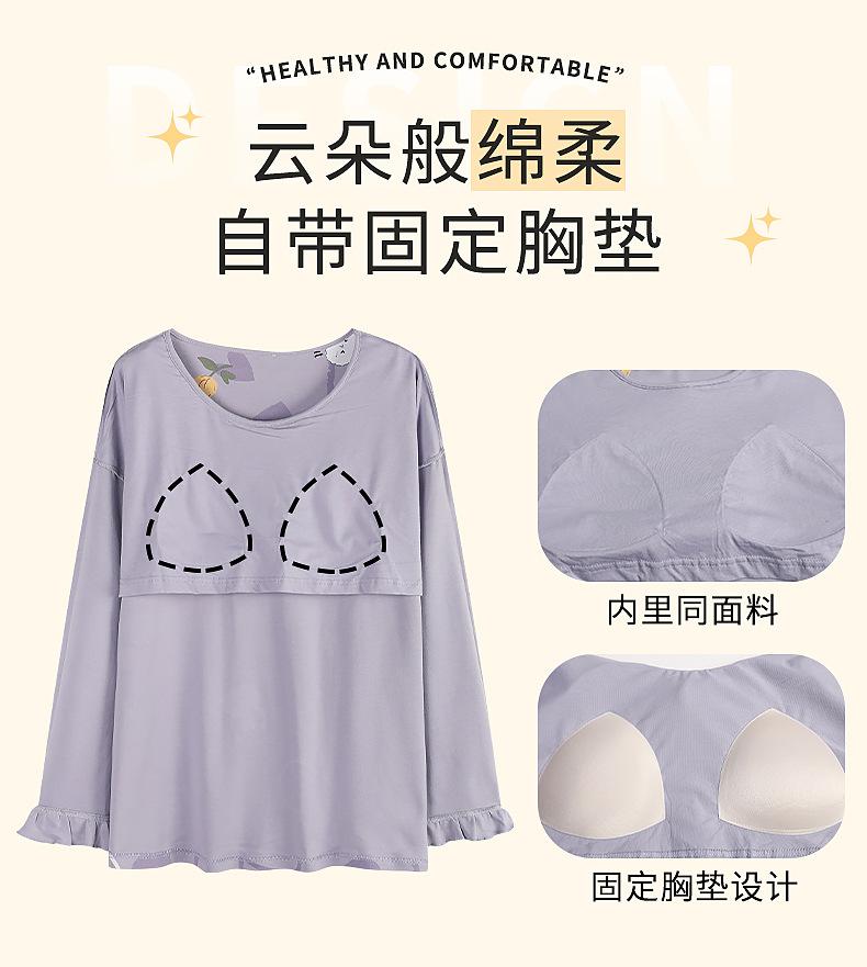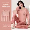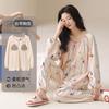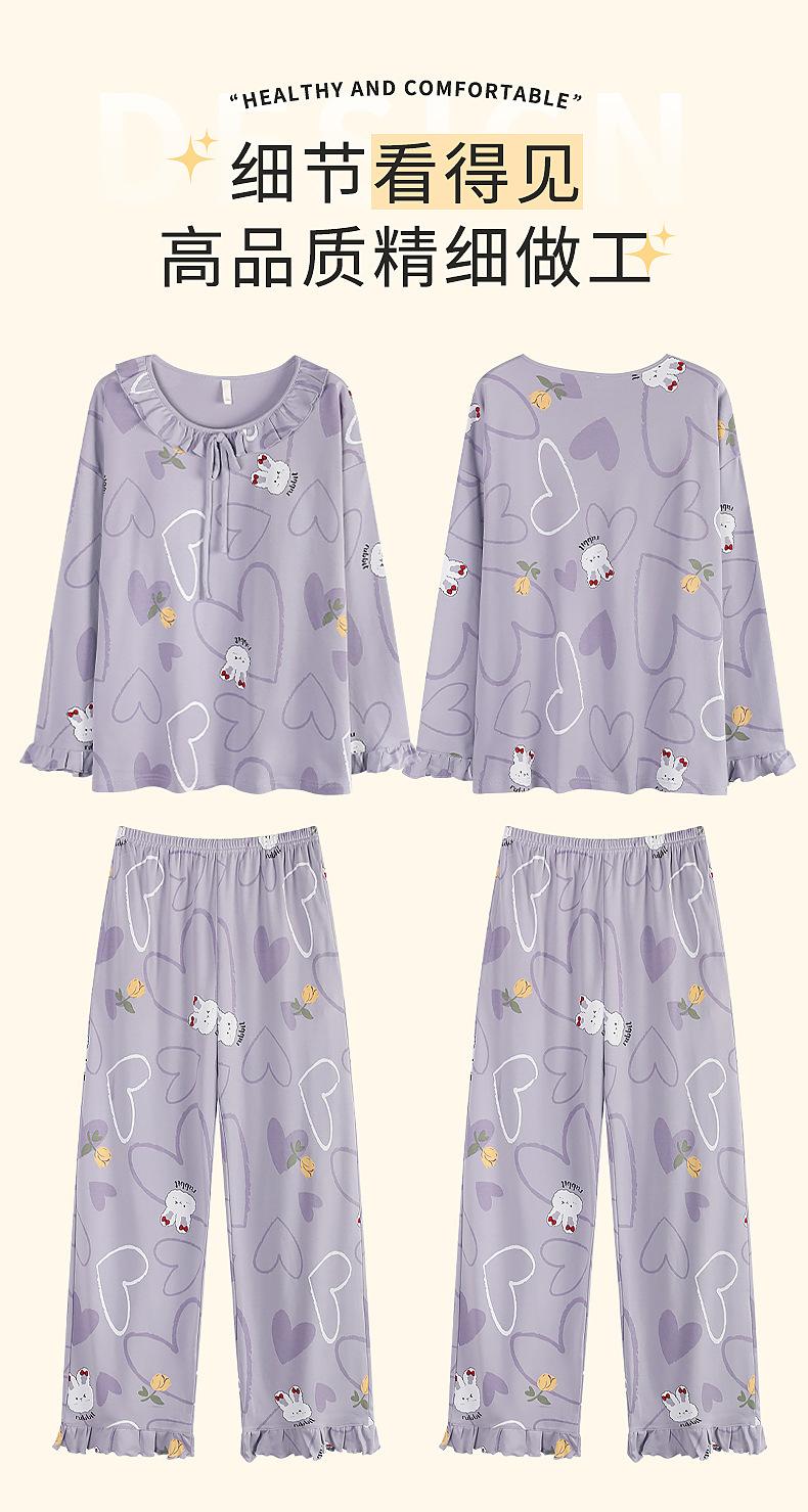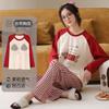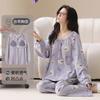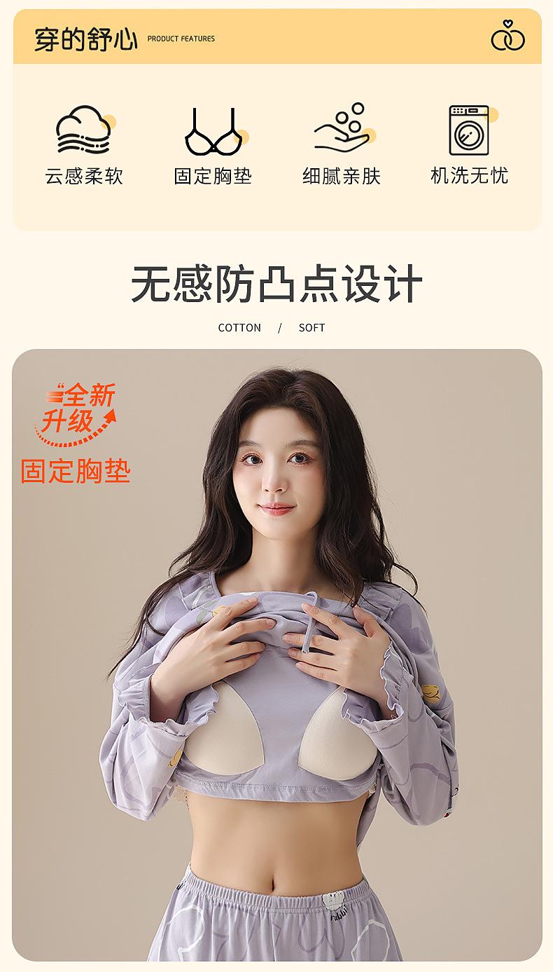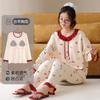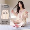 Pijama de Mujer de Algodón Puro de Manga Larga Suelto Casual de Dibujos Animados para Primavera y Otoño 2025 con Almohadillas en el Pecho Se Puede Usar Afuera