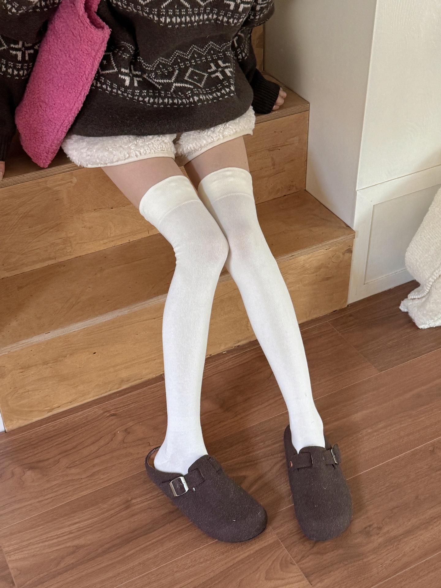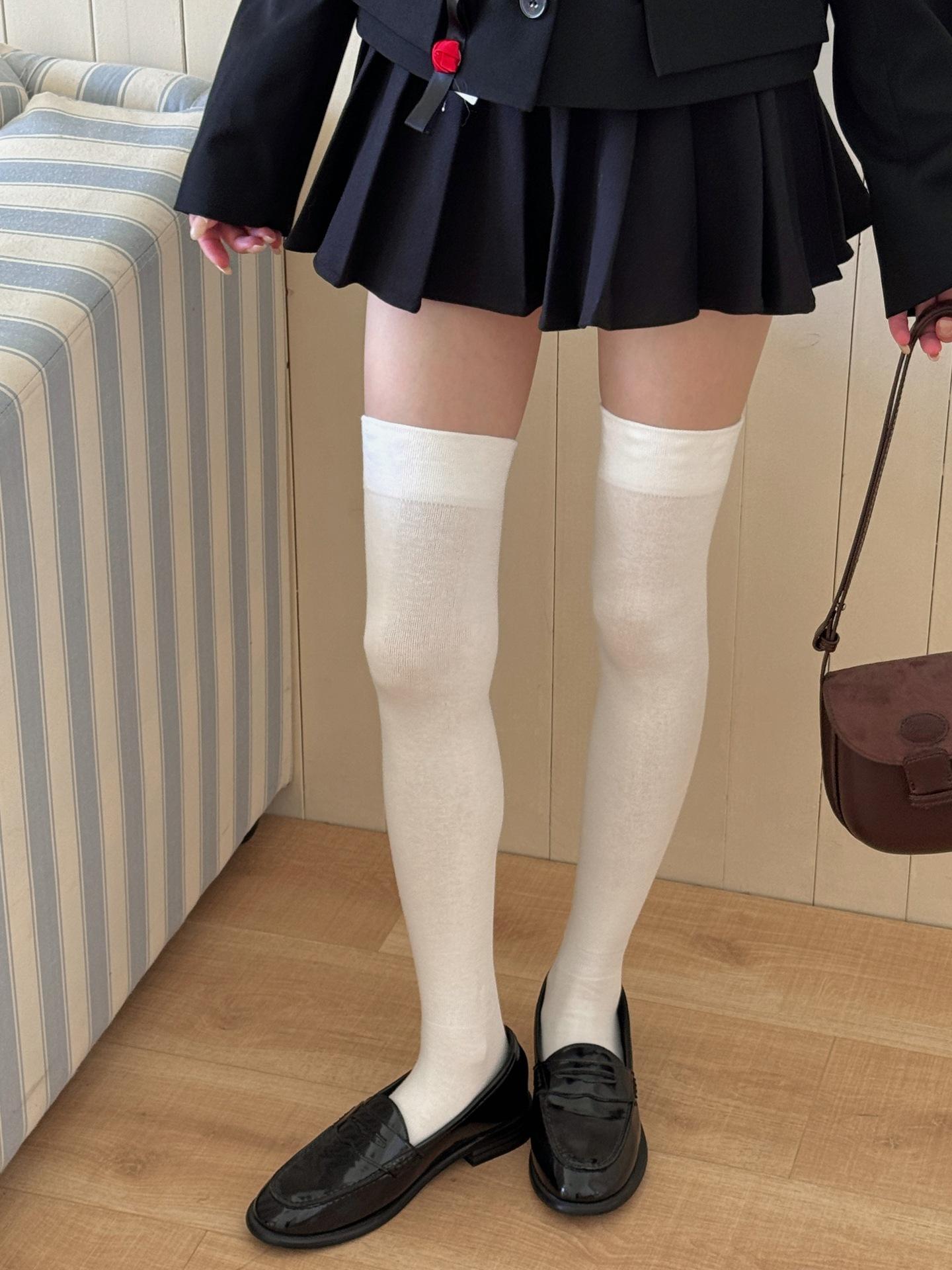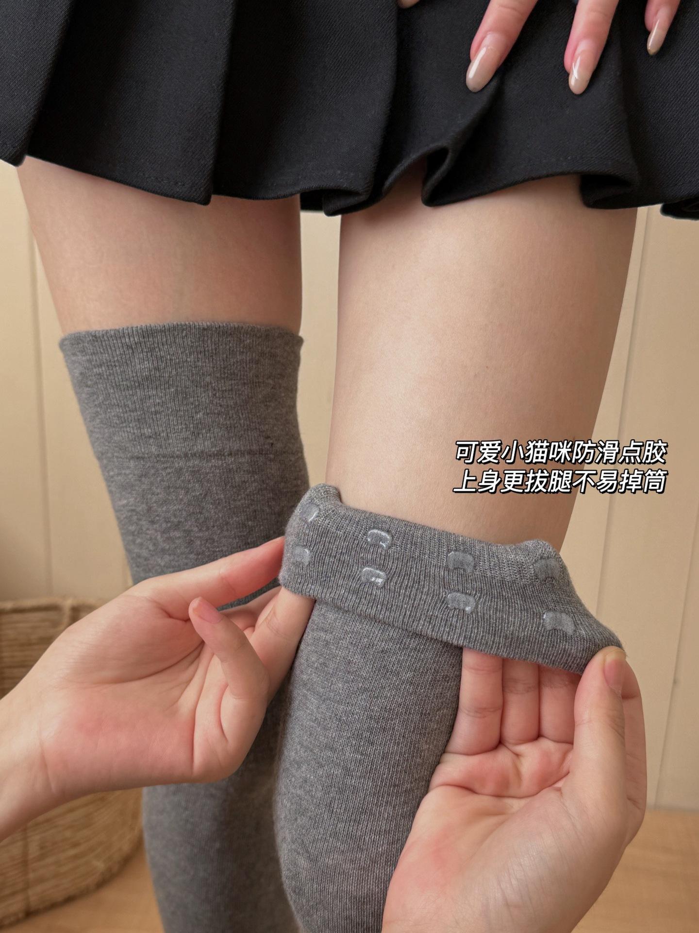 IOULOR Nuevos Calcetines Dispensadores Antideslizantes Hasta el Muslo Otoño Invierno Estilo Preppy Calcetines sin Costuras para Pantorrilla Calcetines Japoneses Coreanos Adelgazantes por Encima de la Rodilla