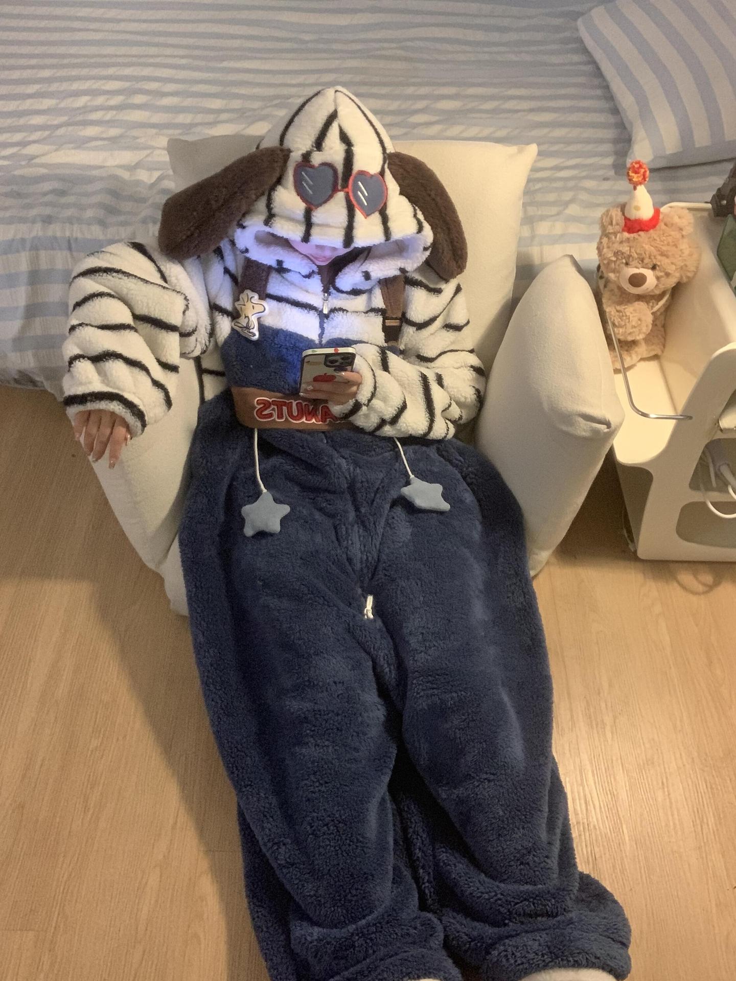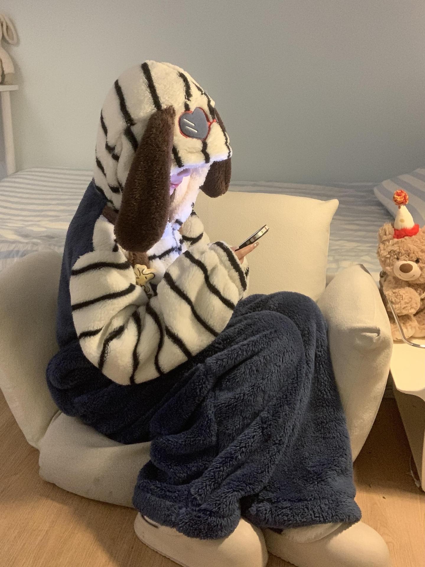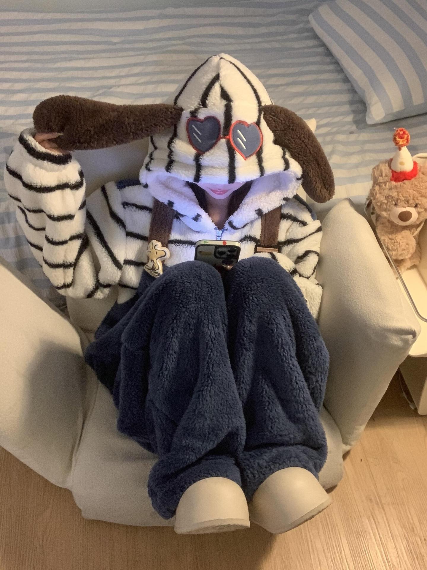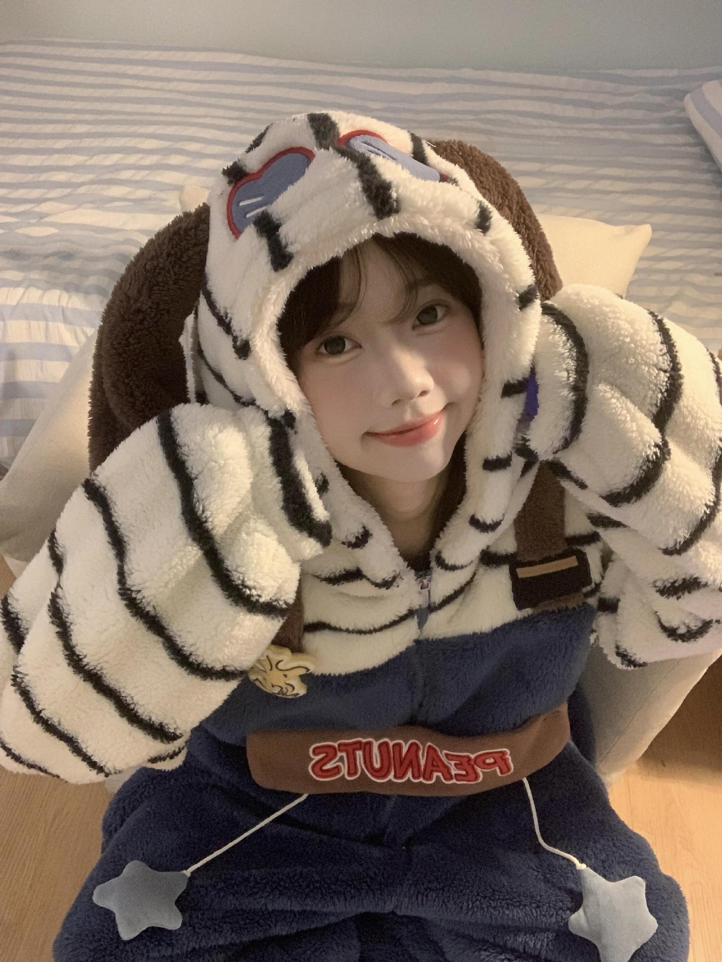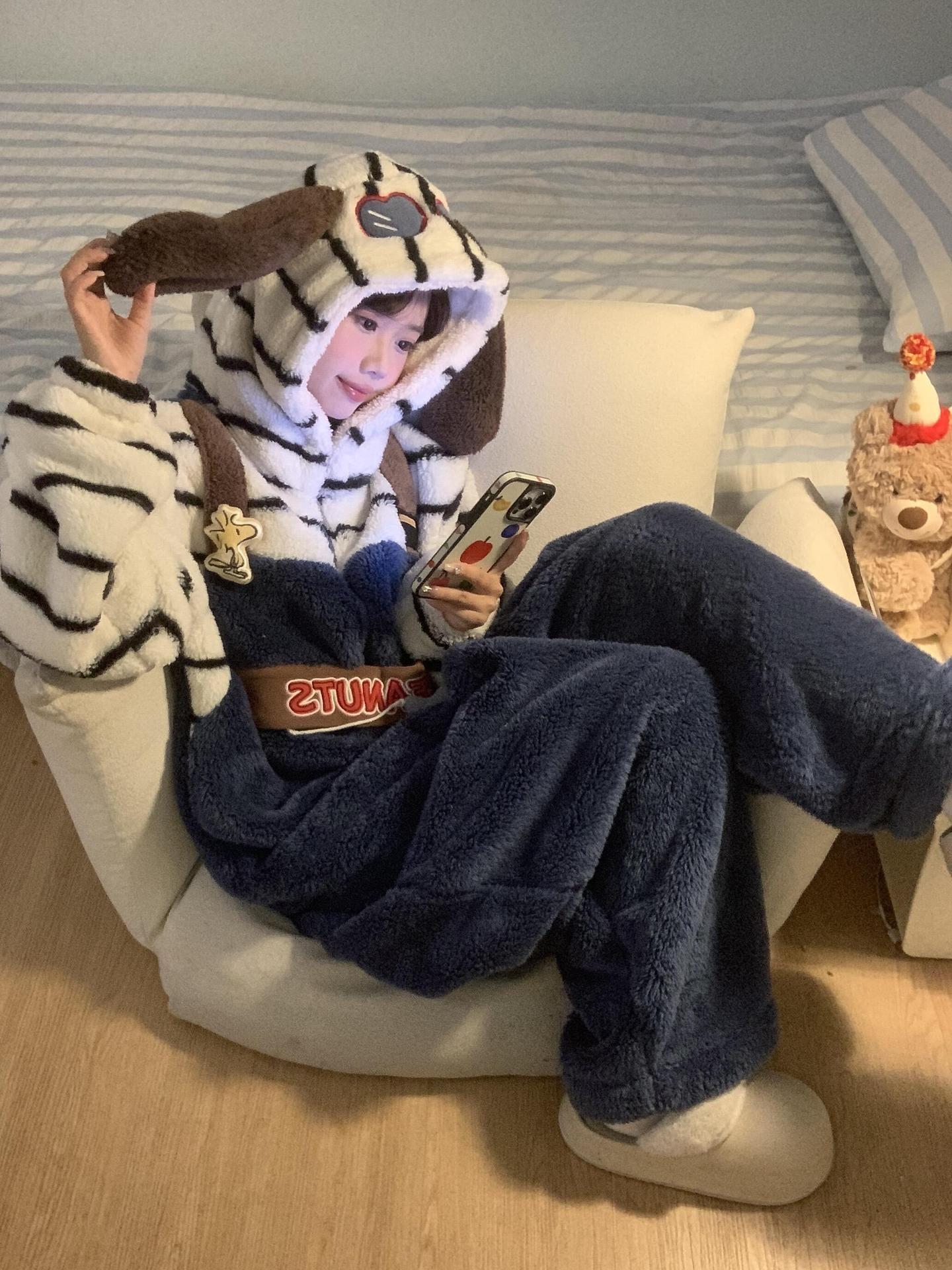 Pijama Onesie con Capucha de Vellón Coral para Mujer Estilo Dulce Cachorro de Orejas Caídas Otoño/Invierno Ropa para el Hogar Onesie Cálido de Vellón Coral