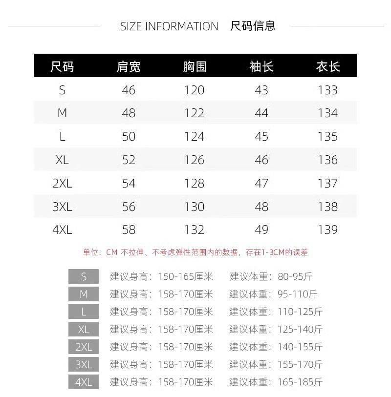 S (recommended 80~95 catties), M (recommended 95~110 catties), L (recommended 110~125 catties), XL (recommende...