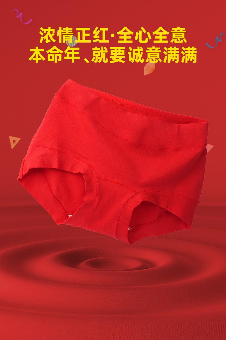 Ropa Interior Nueva al Por Mayor Roja de Cintura Alta para Mujer para el Año de Nacimiento Entrepierna de Algodón Cómoda Transpirable Rojo Grande Algodón Puro Bragas Triángulo para Mujer
