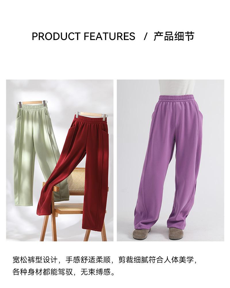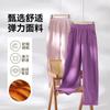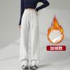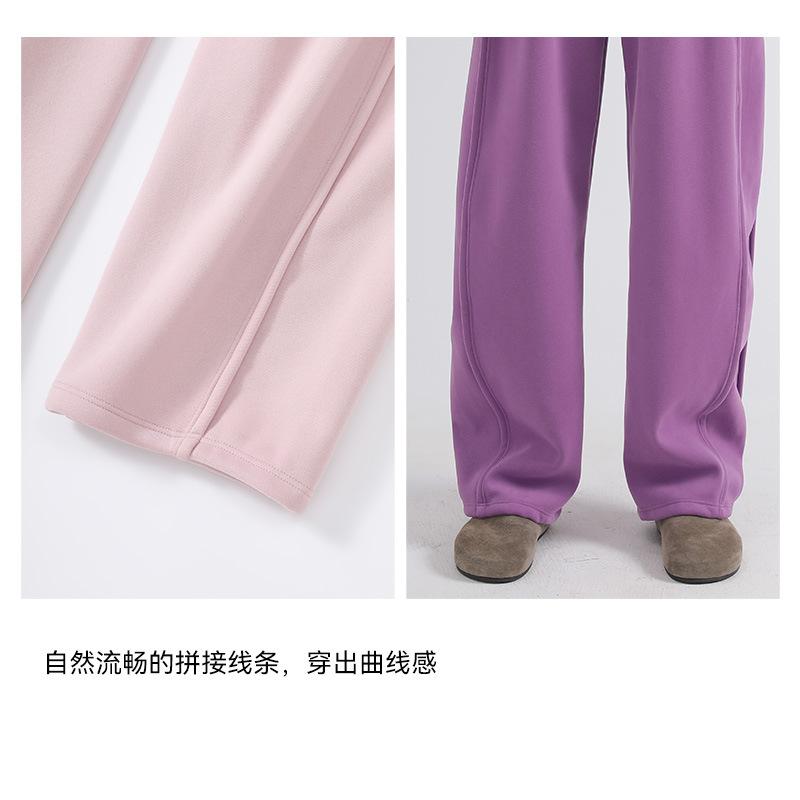 Pantalones casuales para mujer forrados de polar y gruesos para otoño e invierno, pantalones de pierna recta, pantalones deportivos cálidos, pantalones adelgazantes de pierna ancha tipo plátano