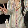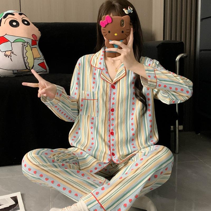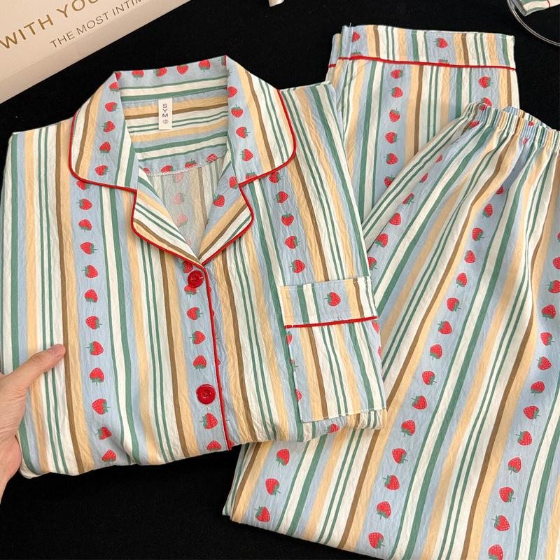 Fabricante Lugar Talla Grande Pijamas Mujer Pequeña Fresa Bloque de Color Rayado Dibujos Animados Lindo Ropa de Hogar Conjunto de Dos Piezas Se Puede Usar Afuera