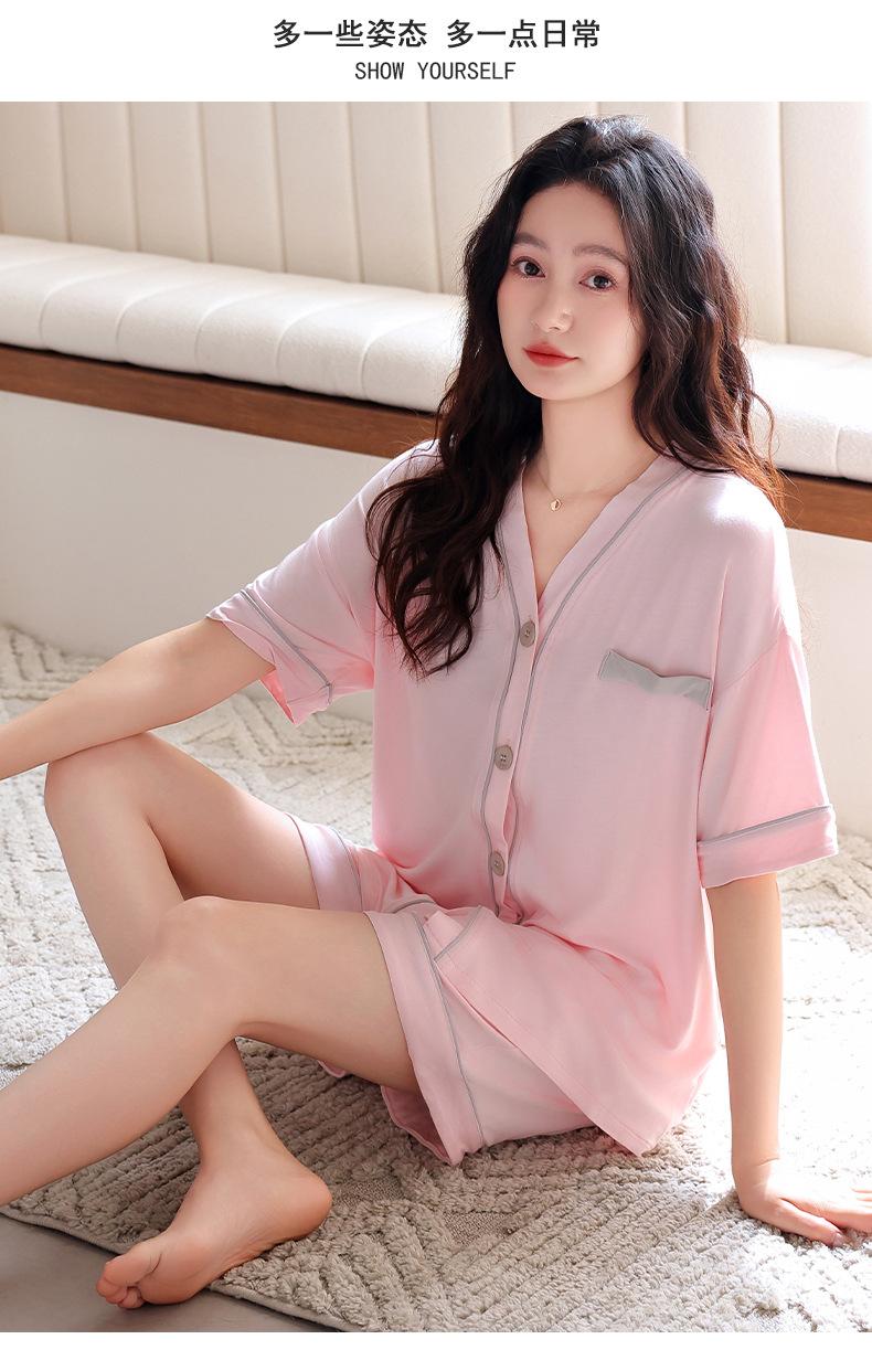 Pijama Modal de Mujer de Una Pieza de Verano de Manga Corta 2025 Nuevo Traje de Ropa para Casa de Verano de Seda de Hielo para Mujer