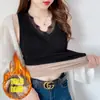 Chaleco Grueso con Forro Polar Cálido para Mujer Invierno con Almohadilla en el Pecho Adorno de Encaje Top Cuello en V Versátil Ropa Interior Capa Base Tendencia