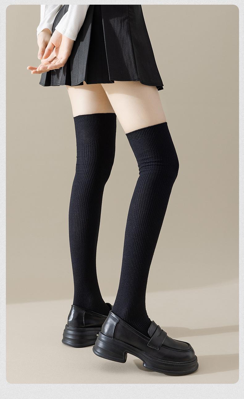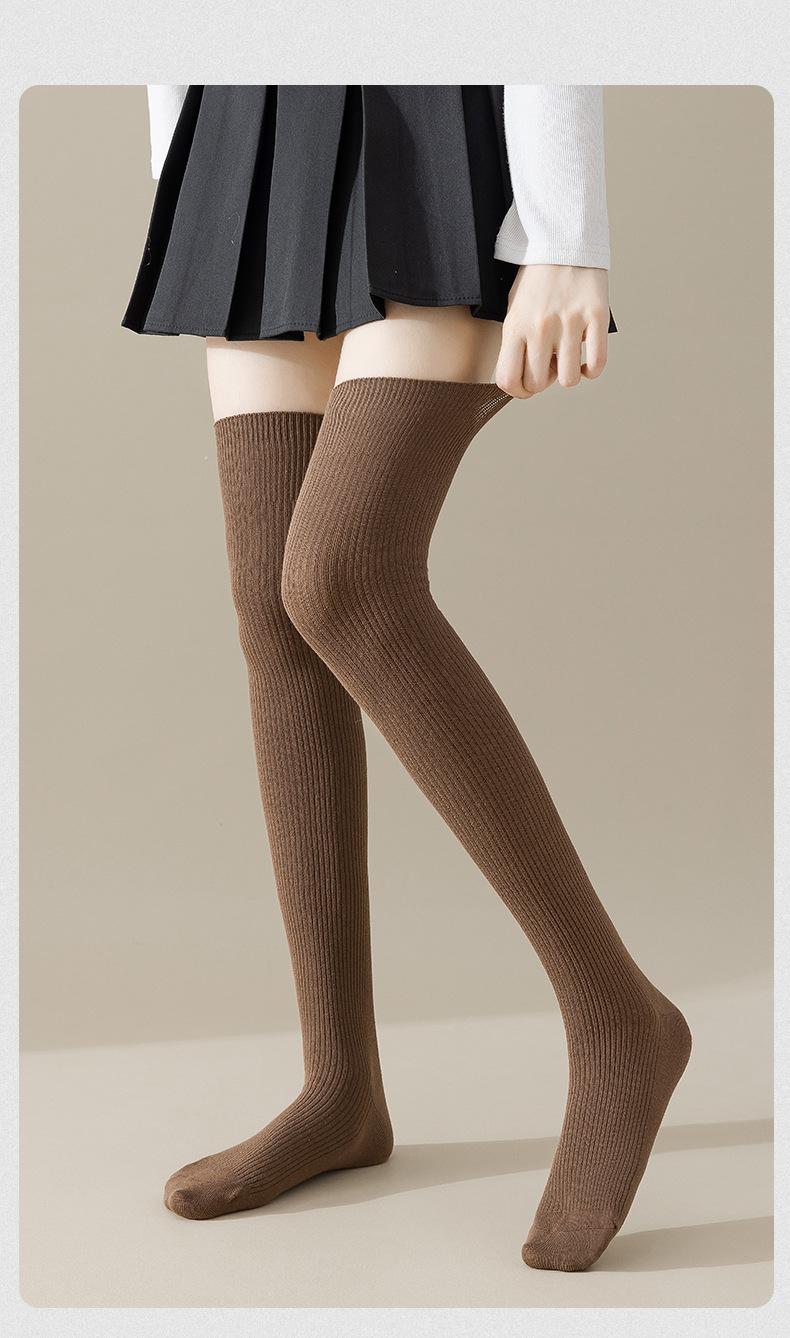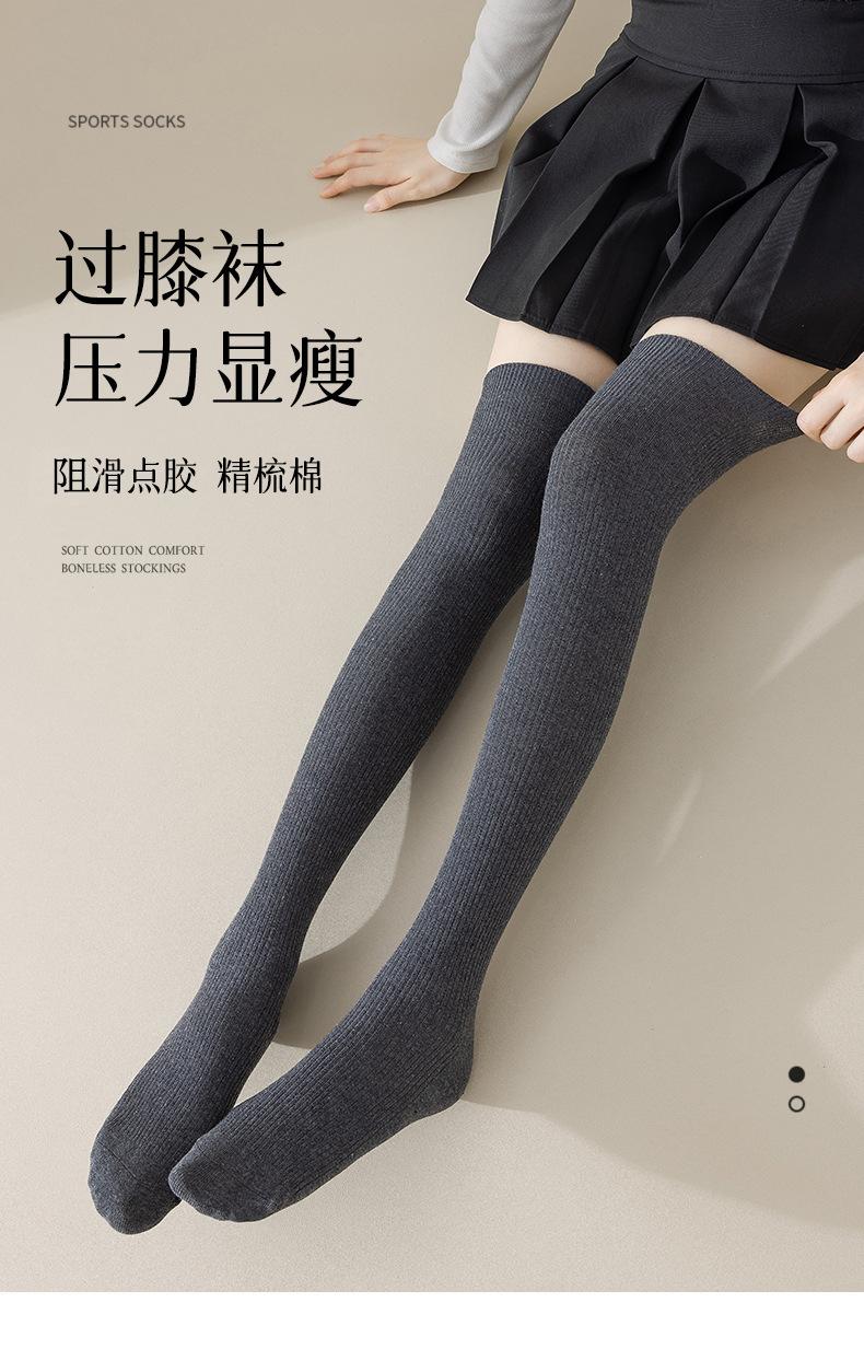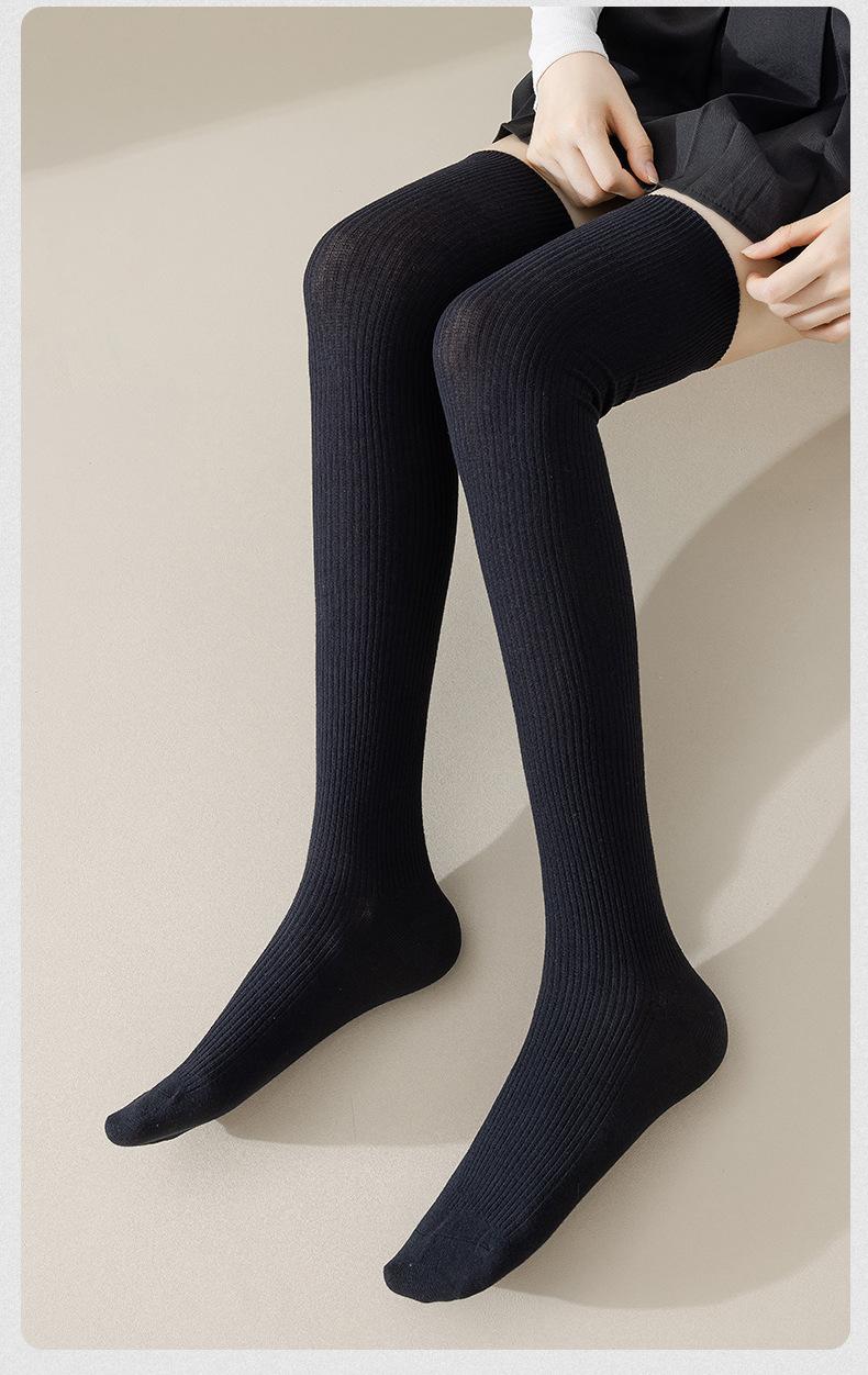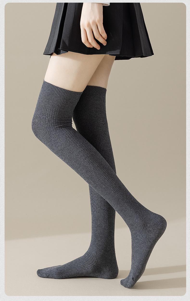 Calcetines para mujer Primavera Otoño Tubo Alto Sobre la Rodilla Muslo Doble Aguja Antipilling Algodón Puro Adelgazantes Estilo Universitario Calcetines Largos para Dama