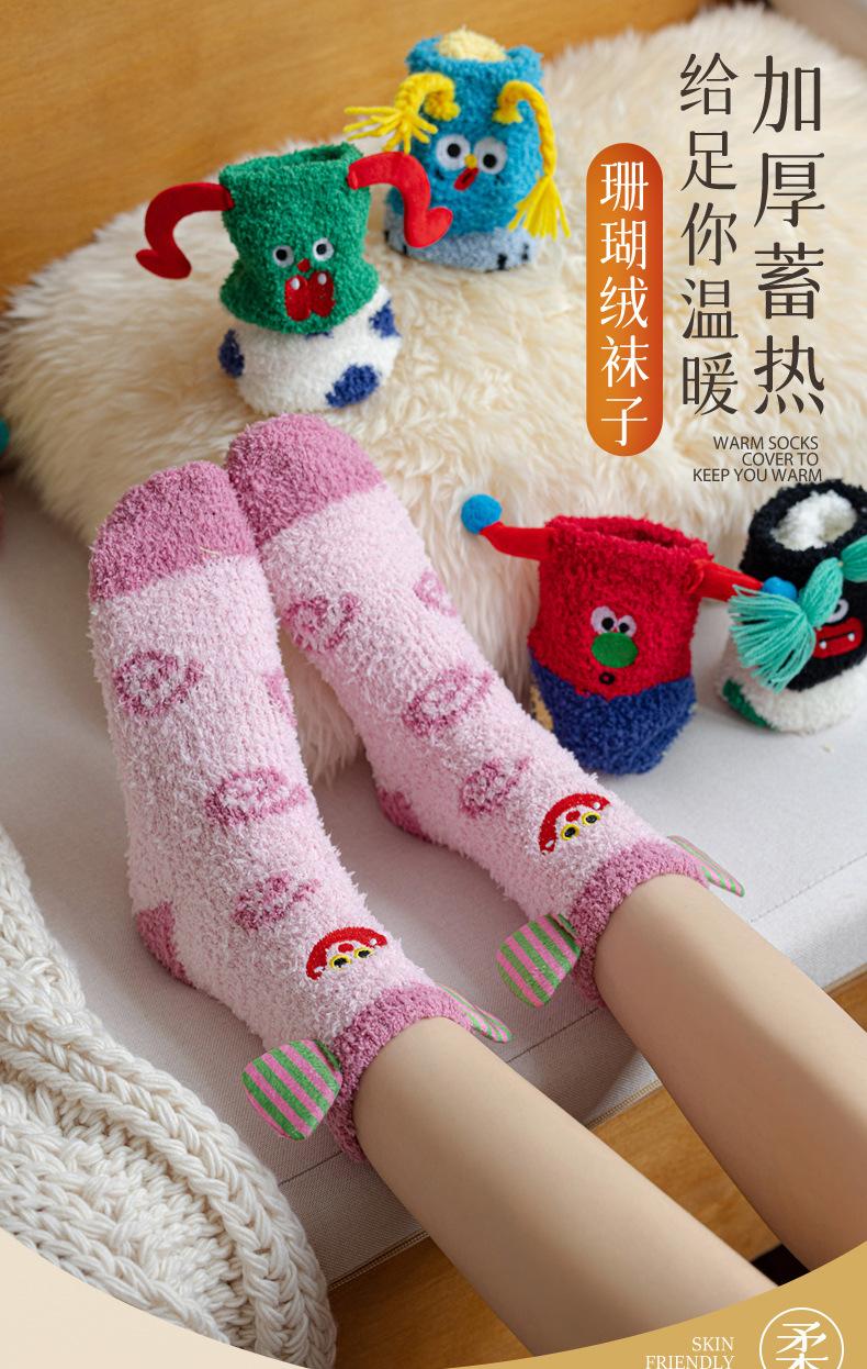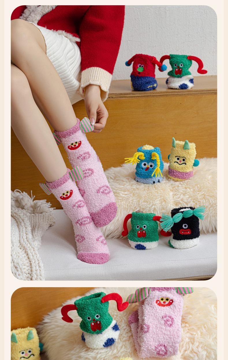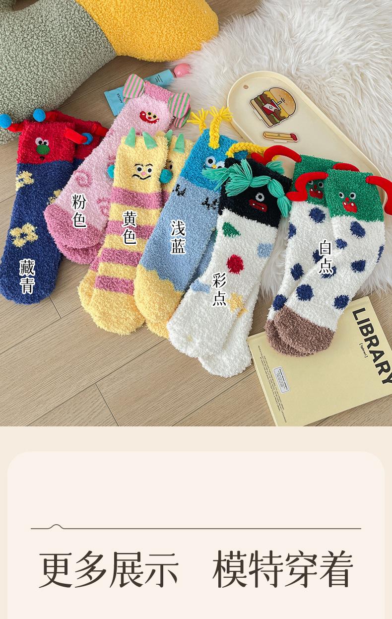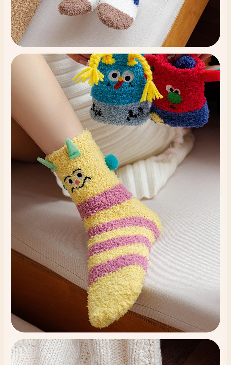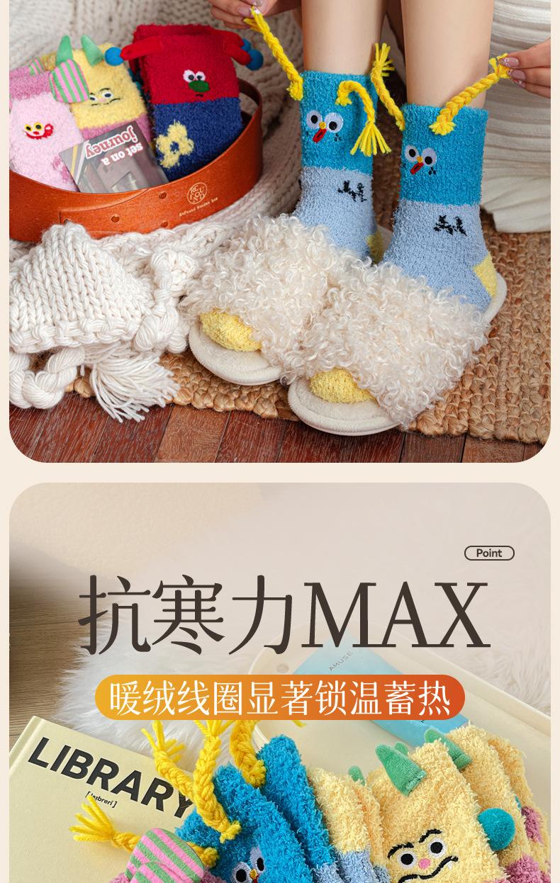 Calcetines de Expresión de Dibujos Animados Calcetines de Media Caña para Mujer Otoño e Invierno Calcetines Gruesos Cálidos para Dormir/Piso Lindo Felpa Calcetines de Forro Polar Coral