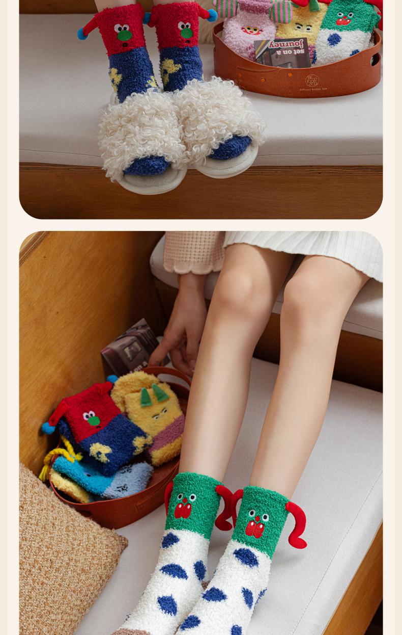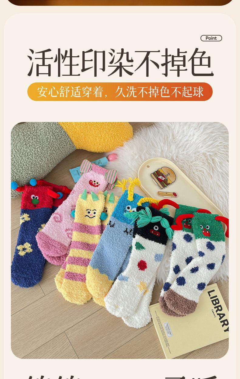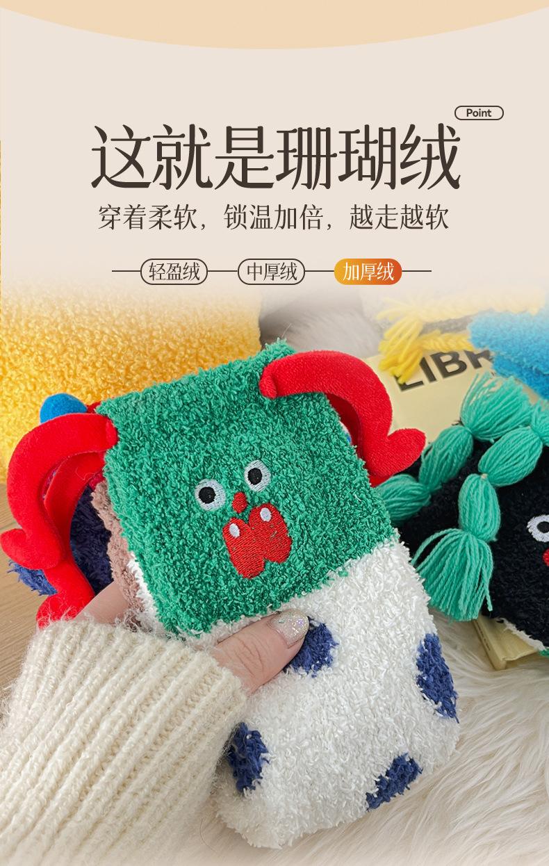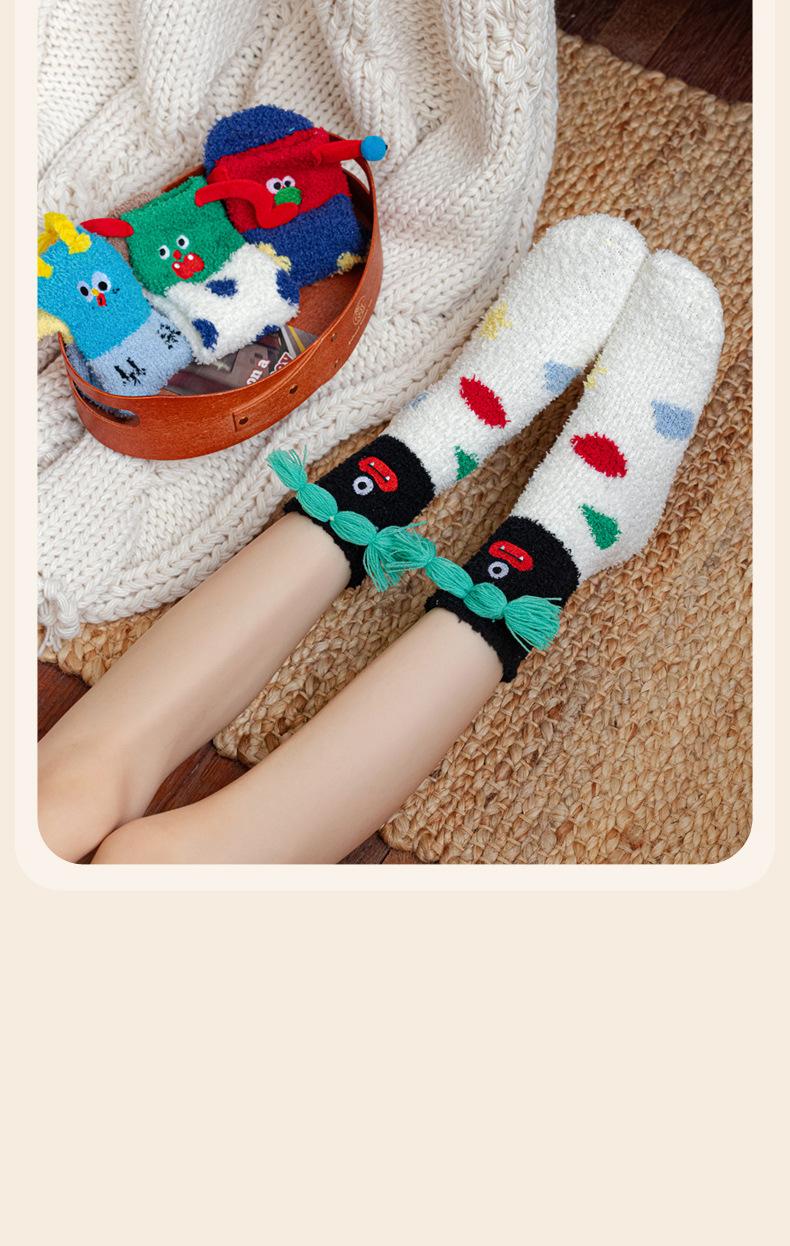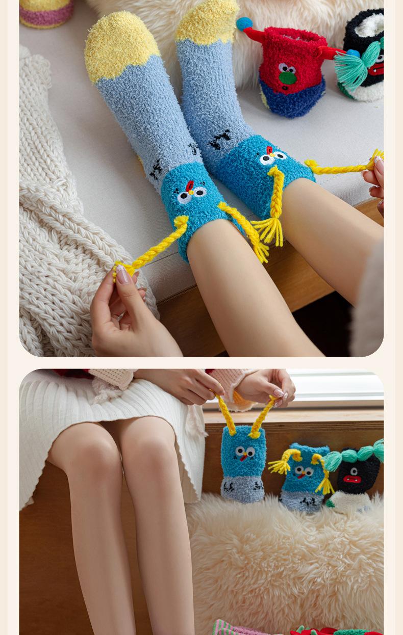 Calcetines de Expresión de Dibujos Animados Calcetines de Media Caña para Mujer Otoño e Invierno Calcetines Gruesos Cálidos para Dormir/Piso Lindo Felpa Calcetines de Forro Polar Coral