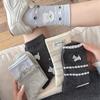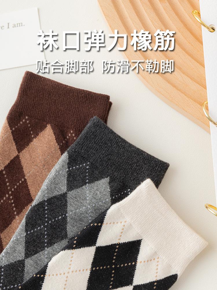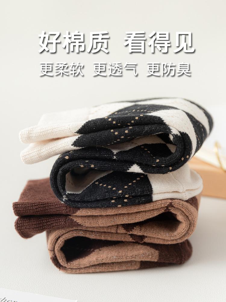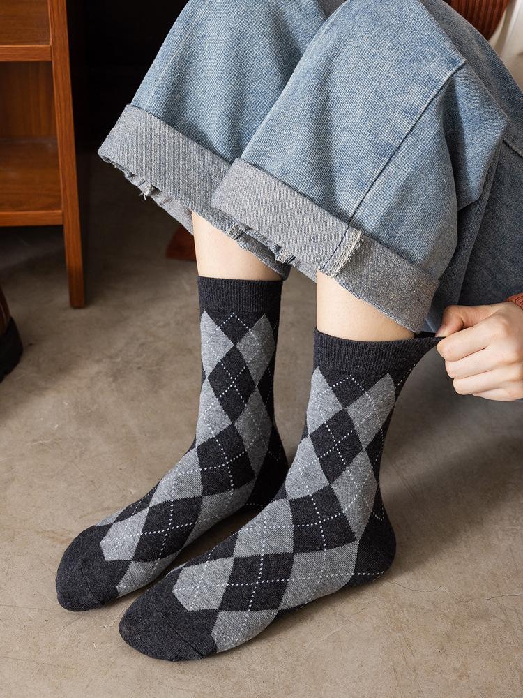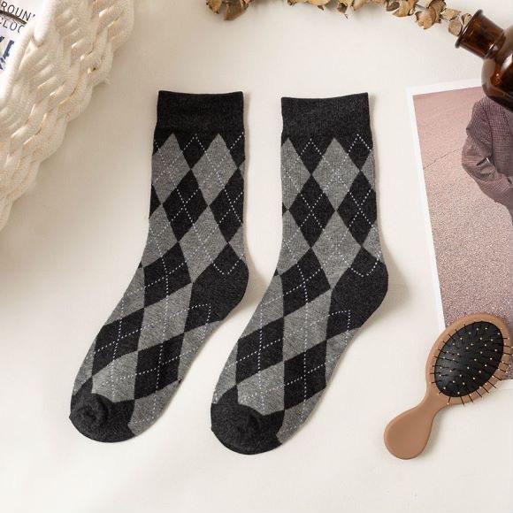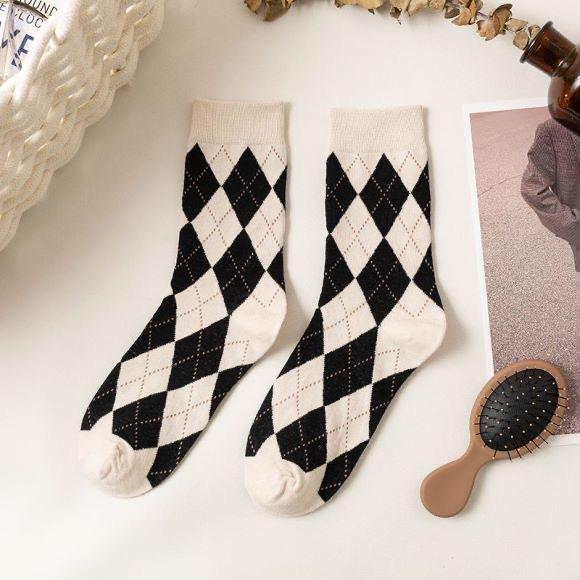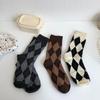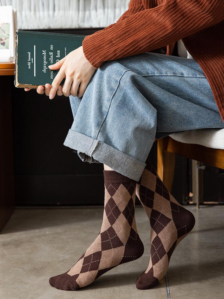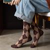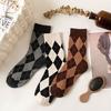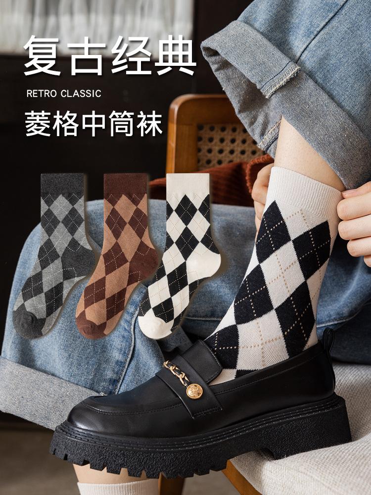 Calcetines de media caña para mujer en estilo moderno de primavera y otoño, patrón de rombos retro japonés, versión coreana, calcetines largos populares, calcetines de otoño e invierno para mujer