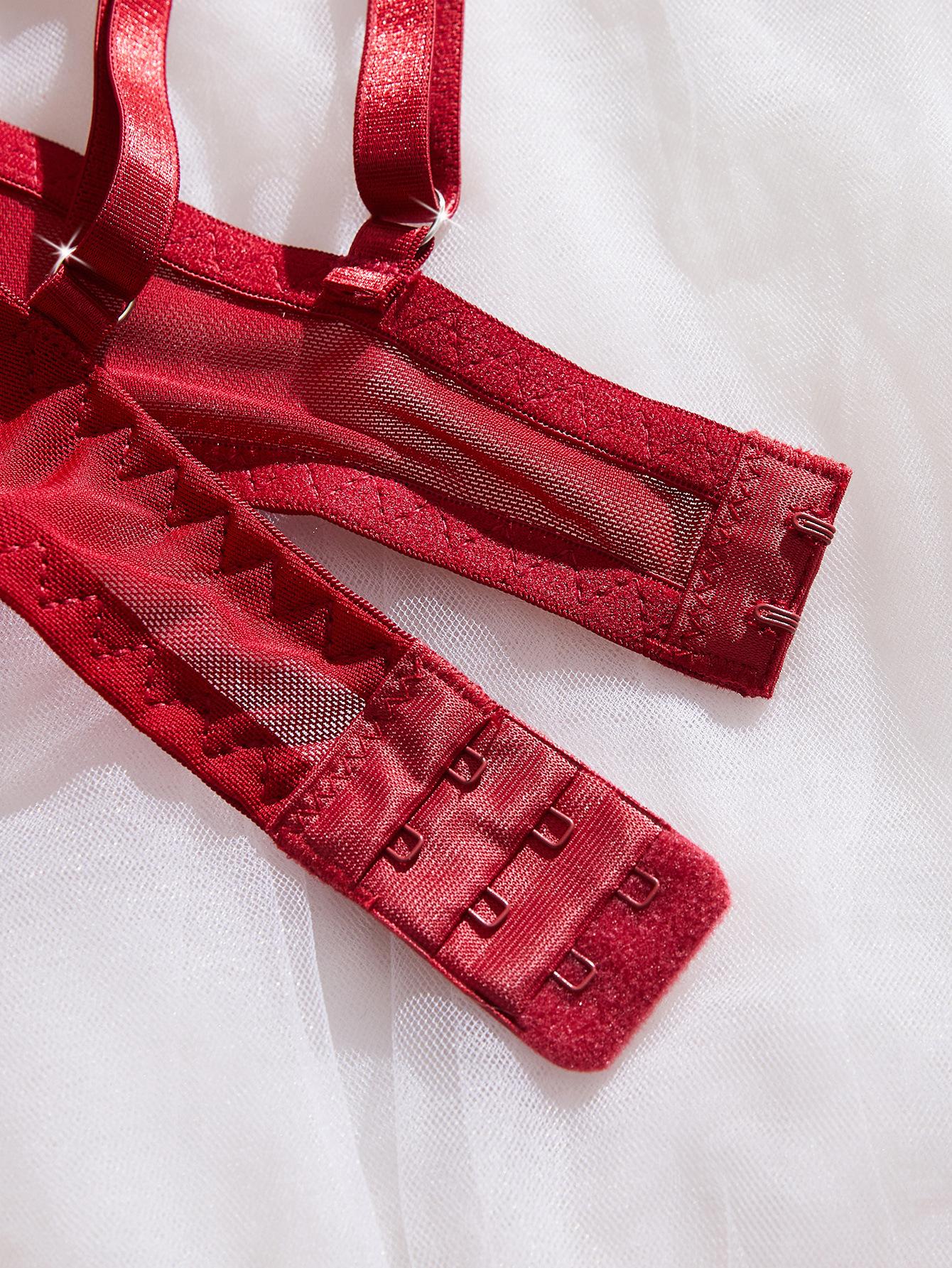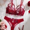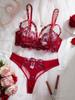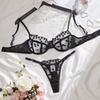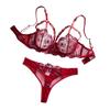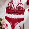 Comercio exterior transfronterizo Lencería sexy europea y americana malla bordado floral deseo puro transparente bragas triangulares conjunto de sujetador push-up
