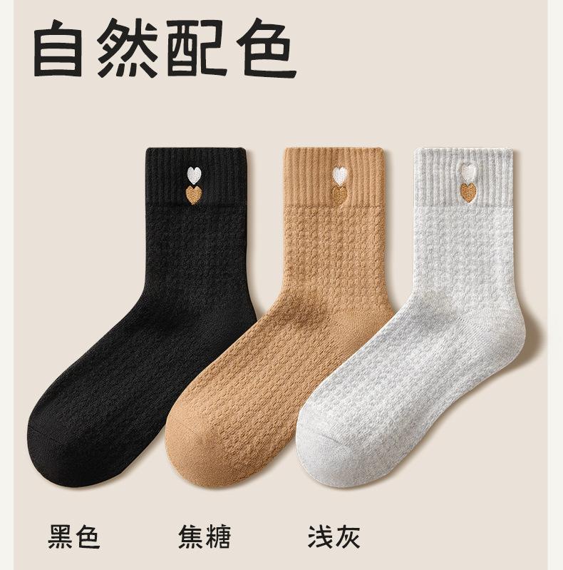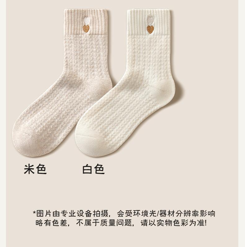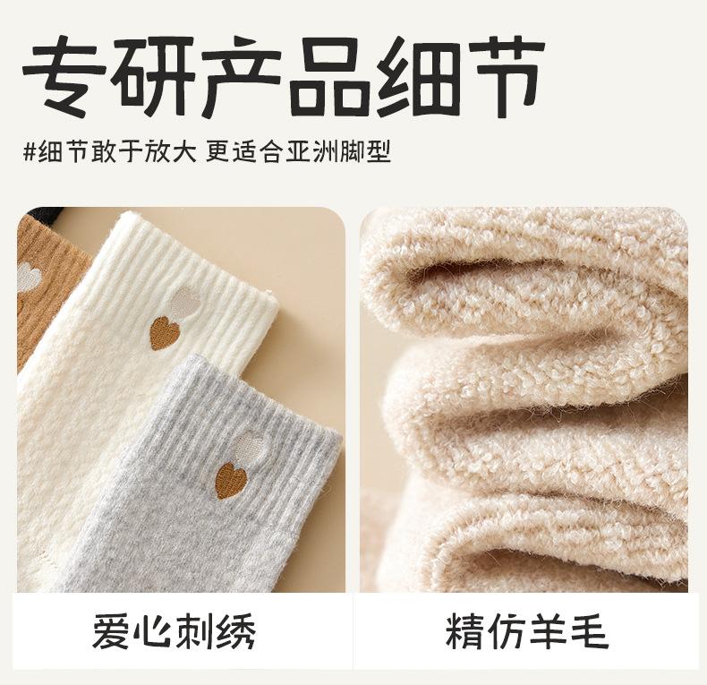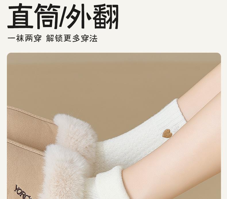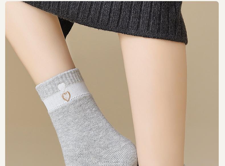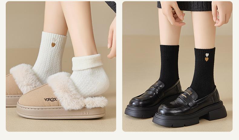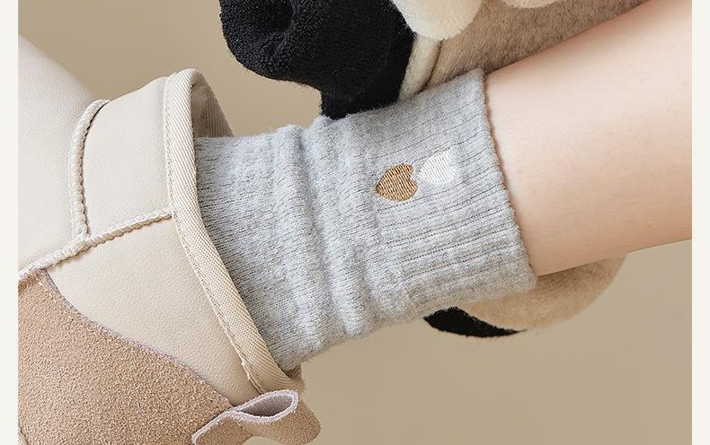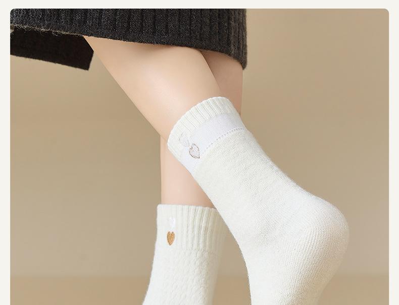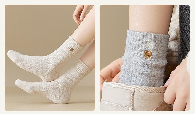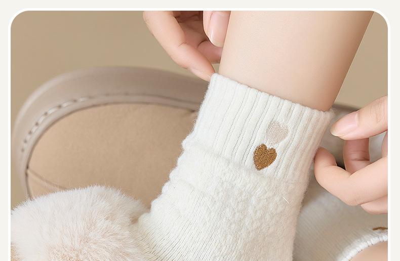 Calcetines de Lana Invierno Gruesos Estilo Coreano Corazón Lindo Bordado Mujer Otoño Invierno Casual Media Pantorrilla Calcetines Cálidos de Algodón a Prueba de Frío