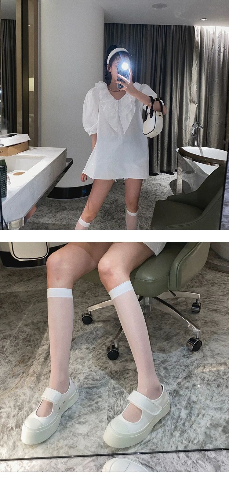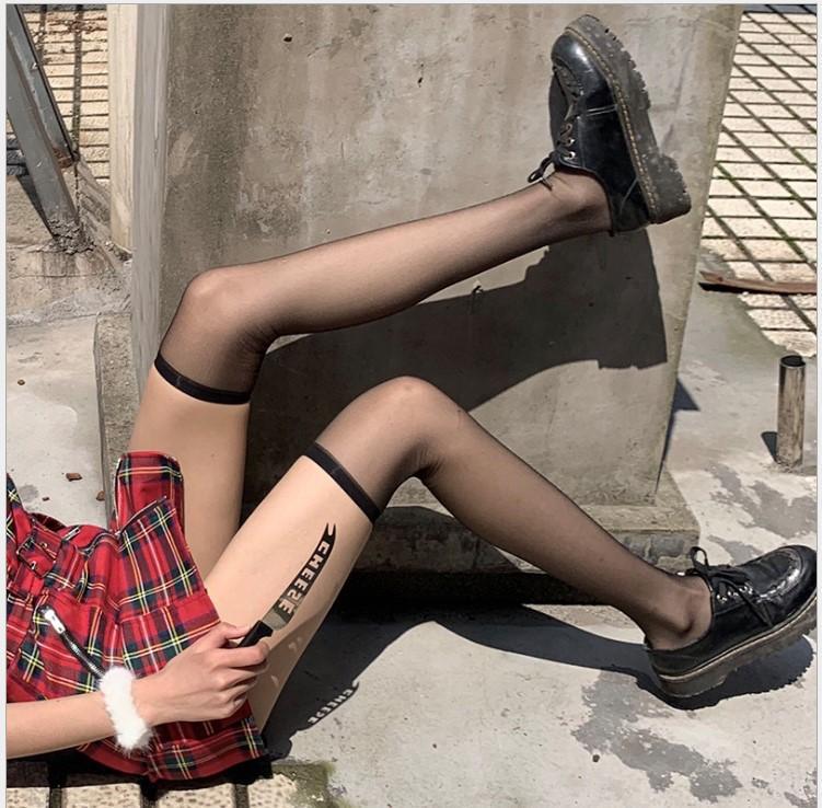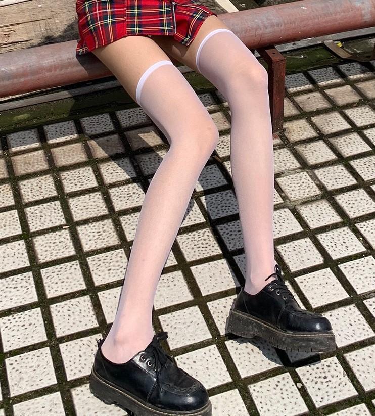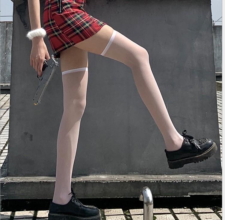 Calcetines Altos hasta el Muslo Finos de Verano Puros y Deseables Medias Negras Transparentes Calcetines Altos JK Calcetines Blancos Sexy de Moda para Mujer