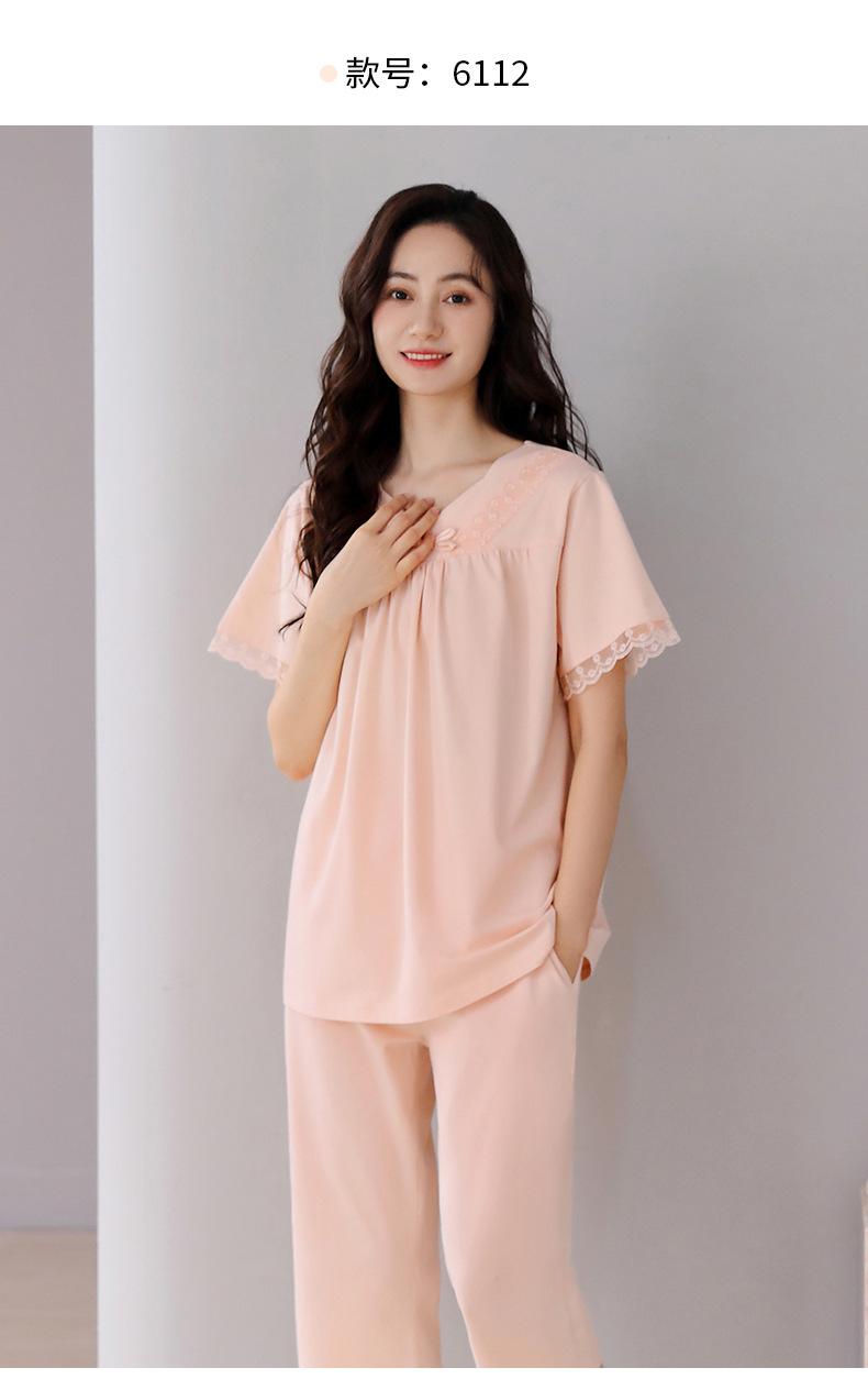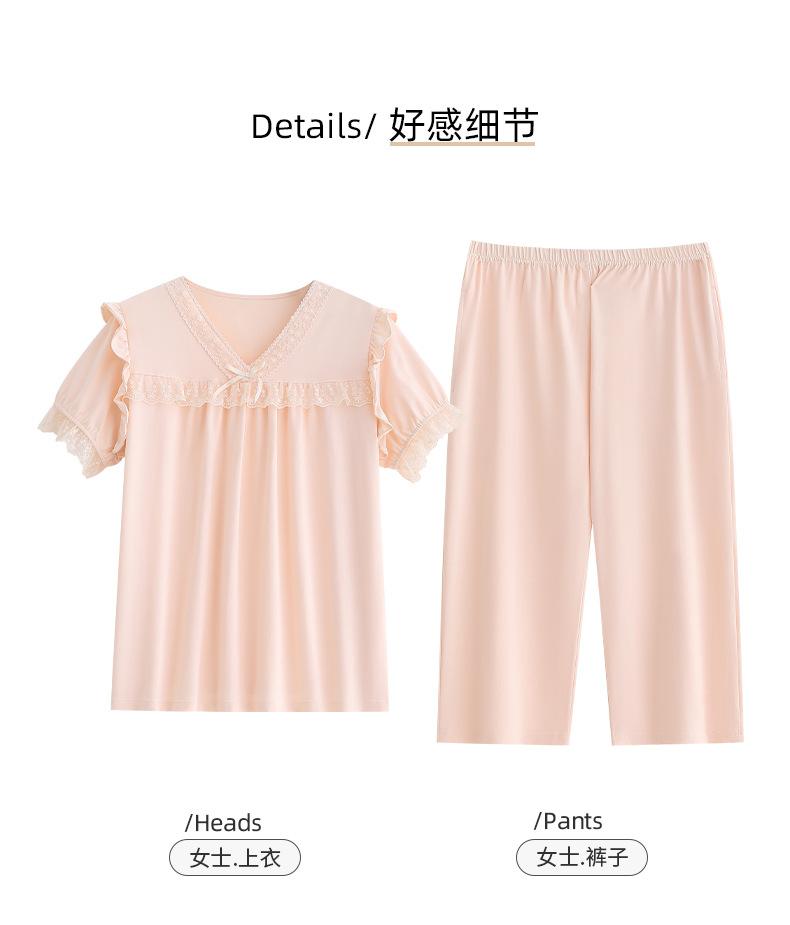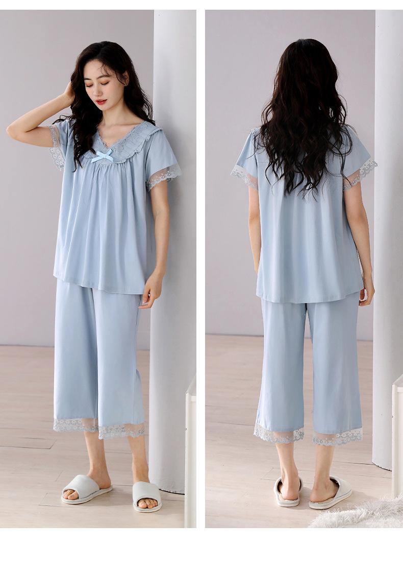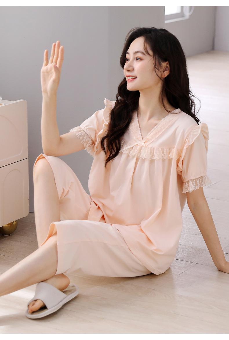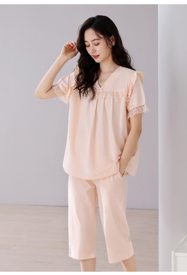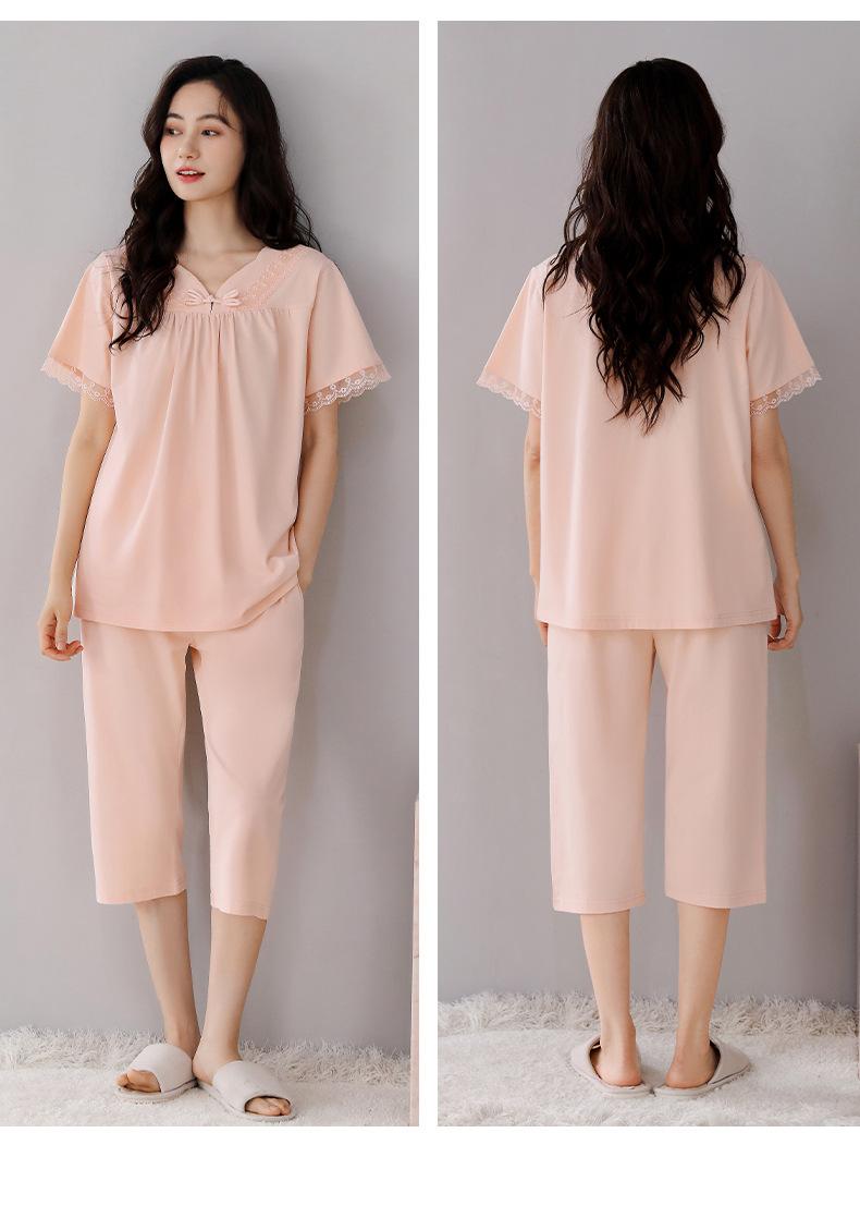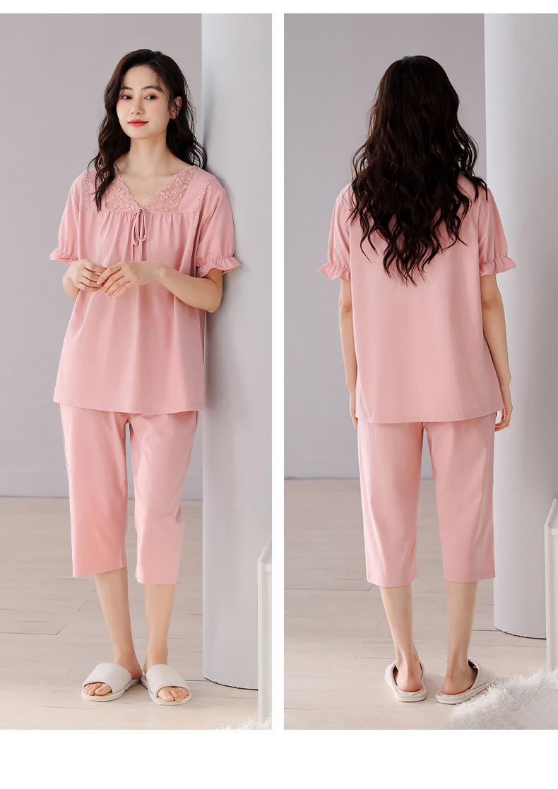 Pijamas de Verano para Mujer Algodón Manga Corta Pantalones Capri Delgados Verano Madre de Mediana Edad Verano Manga Media Talla Grande Ropa para el Hogar