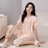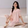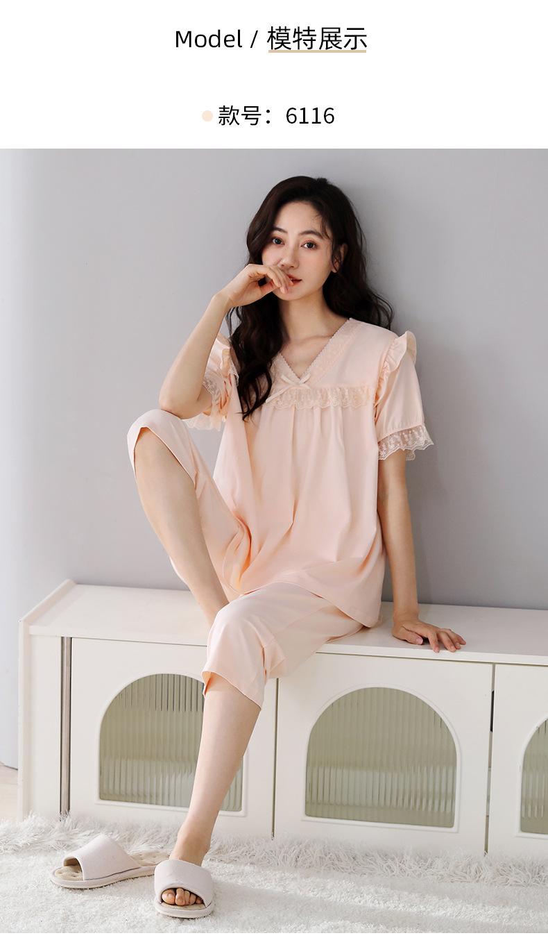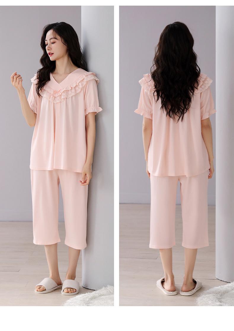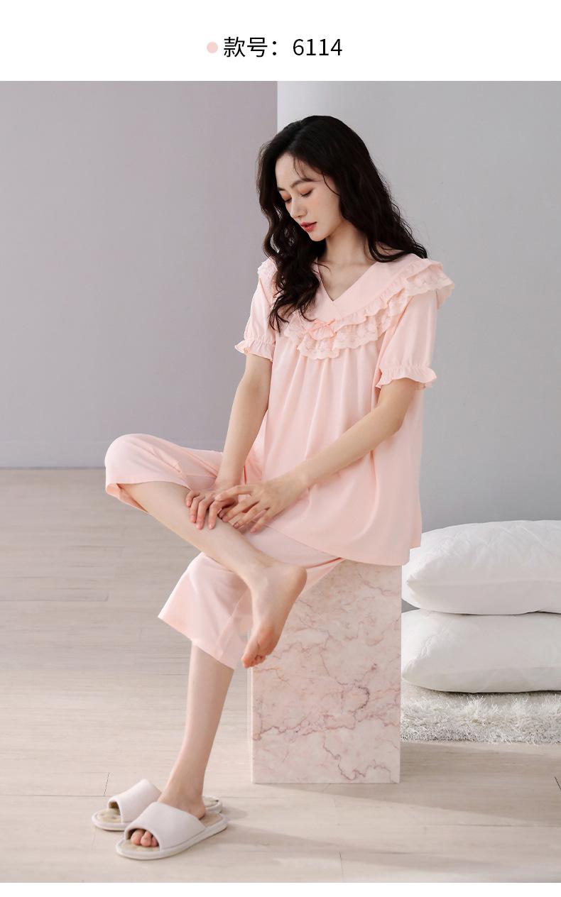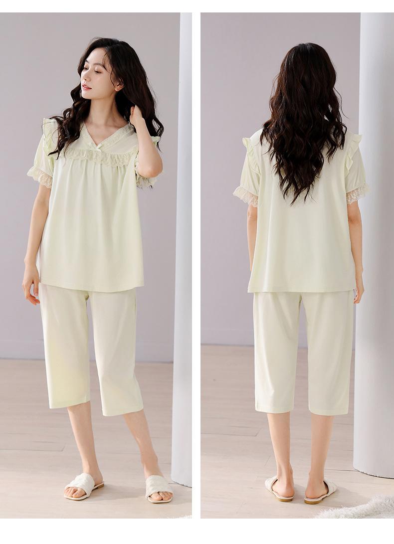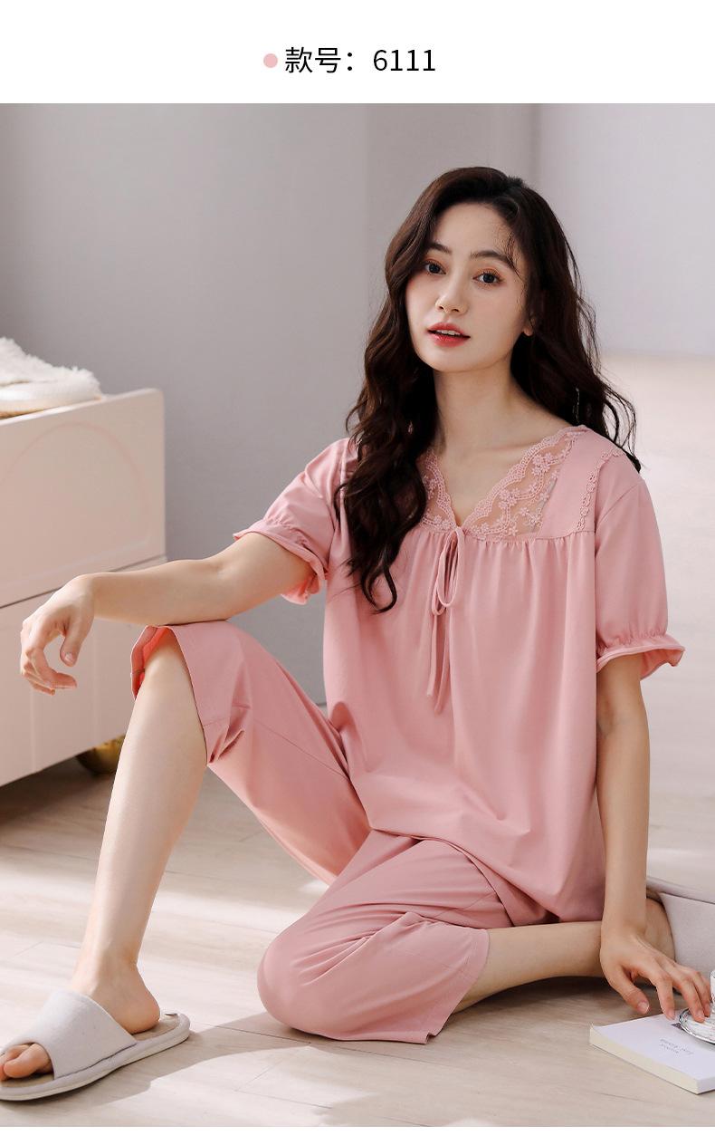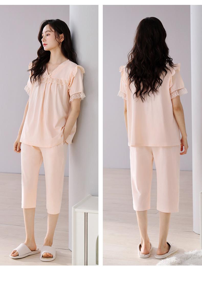 Pijamas de Verano para Mujer Algodón Manga Corta Pantalones Capri Delgados Verano Madre de Mediana Edad Verano Manga Media Talla Grande Ropa para el Hogar