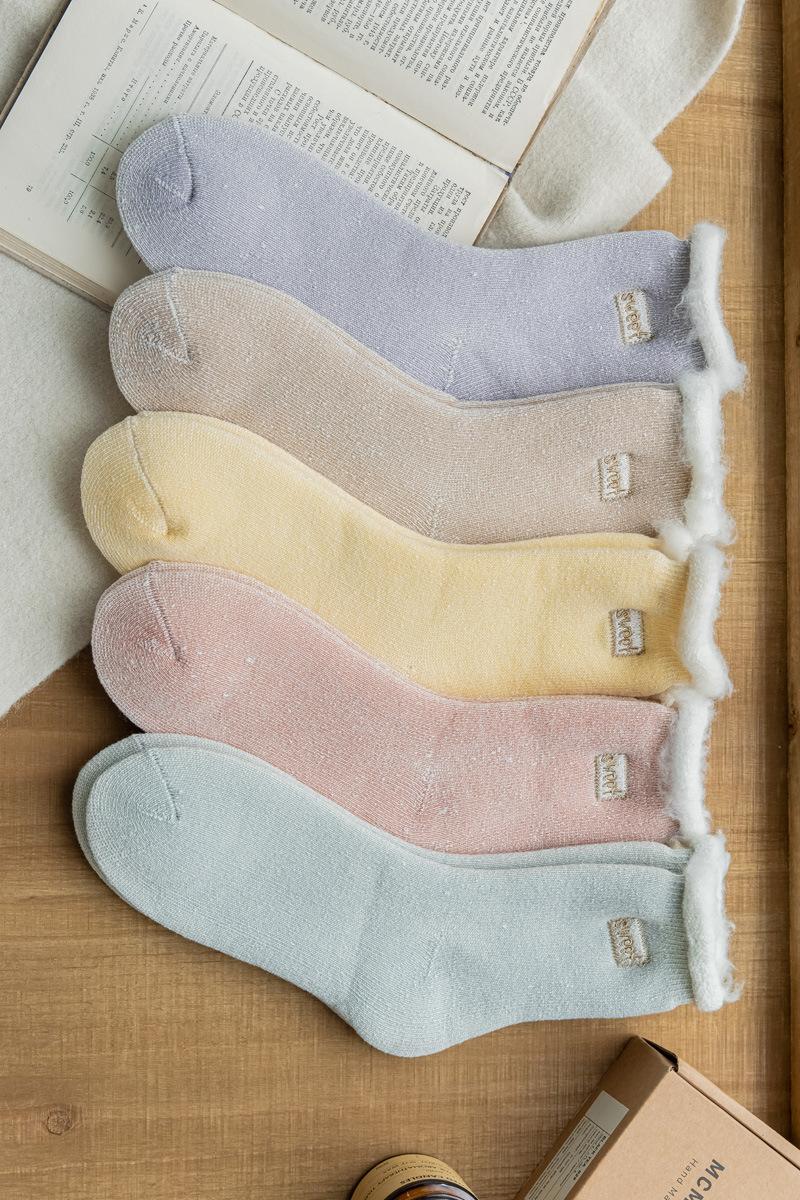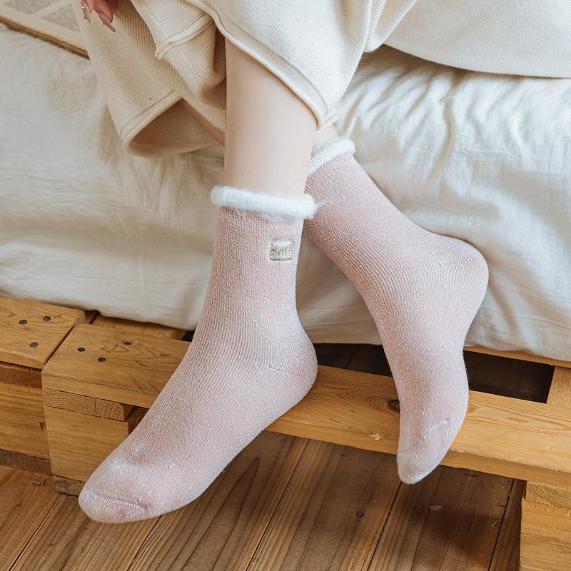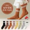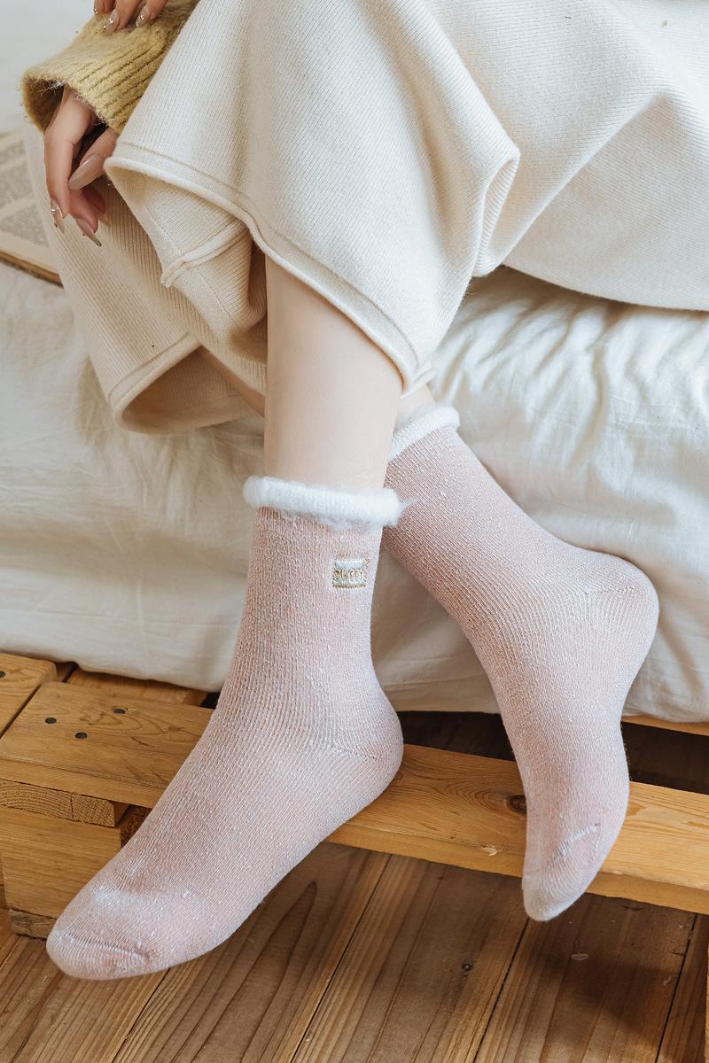 Jacquard dulce invierno forro polar calcetines gruesos cálidos de piso para mujer media pantorrilla calcetines de algodón color sólido calcetines japoneses