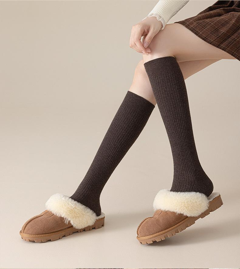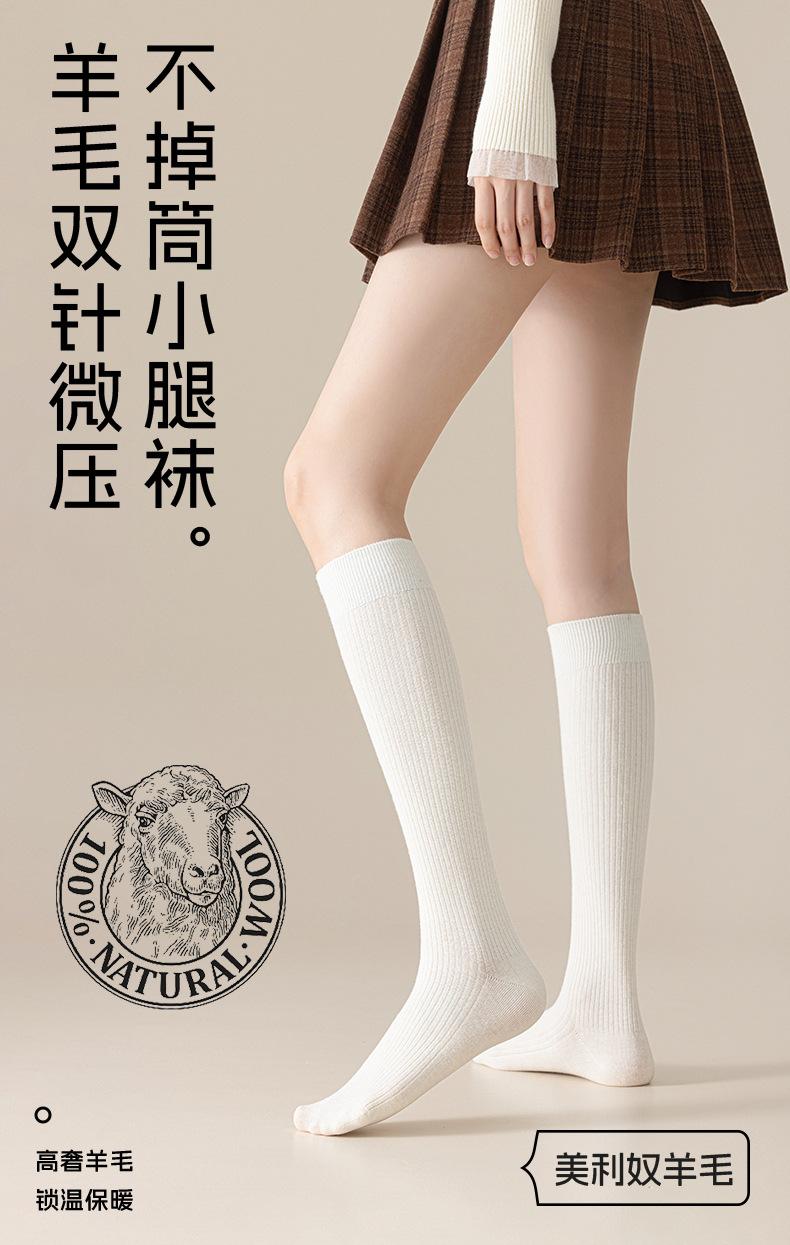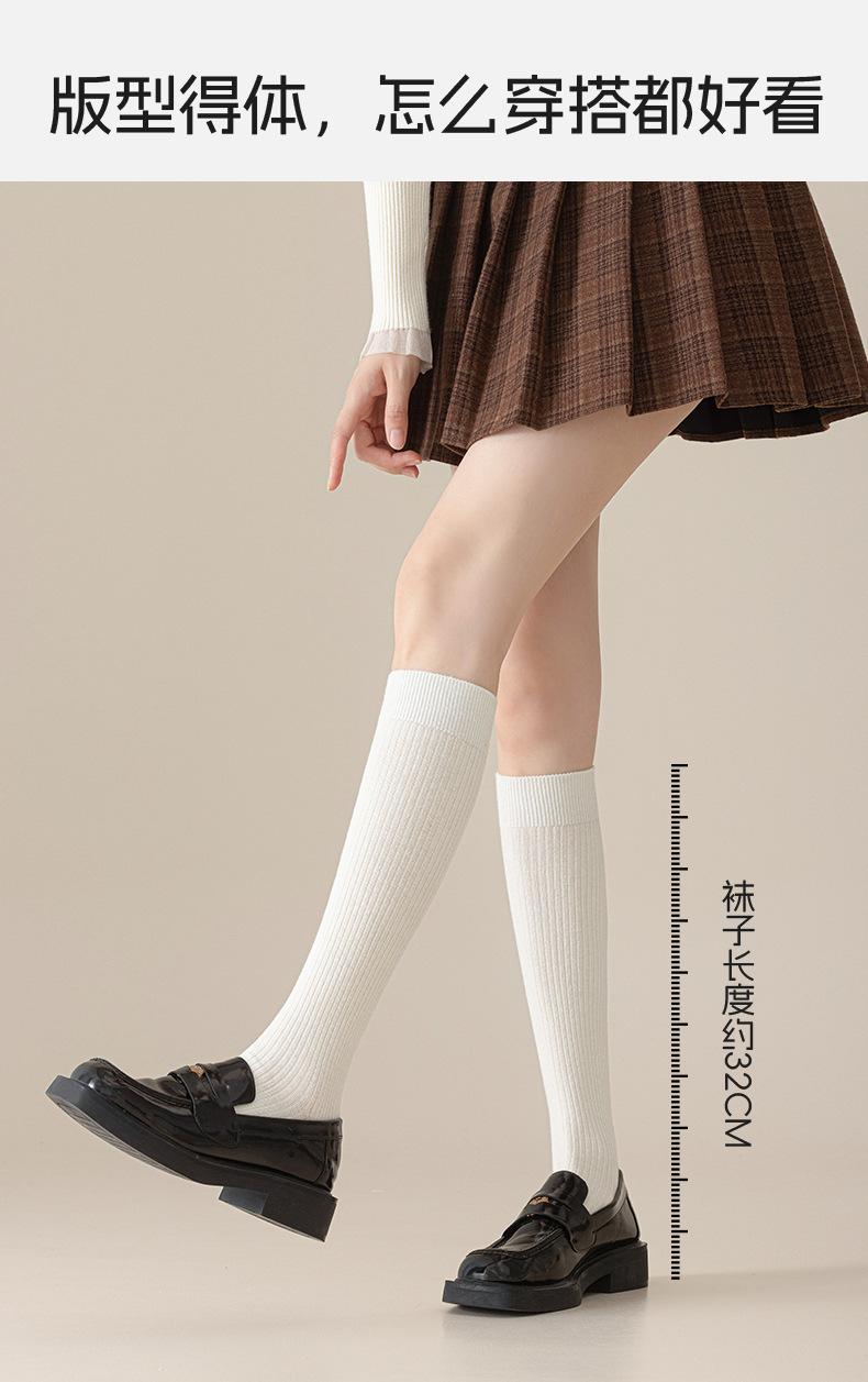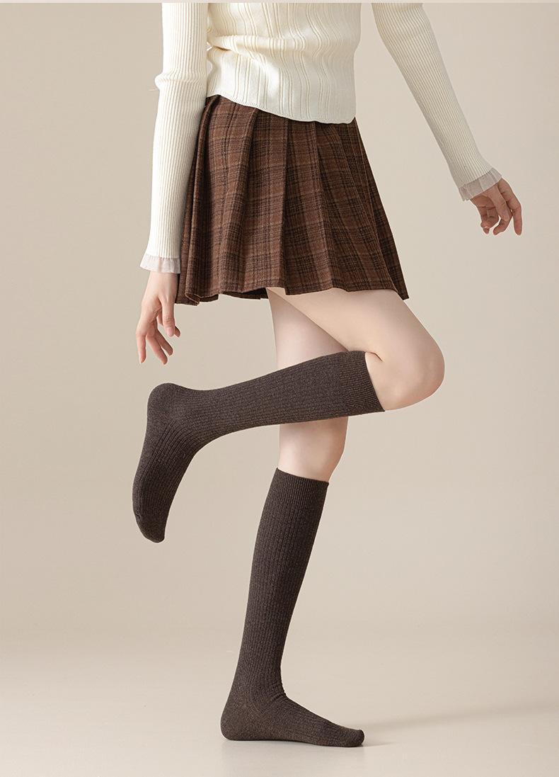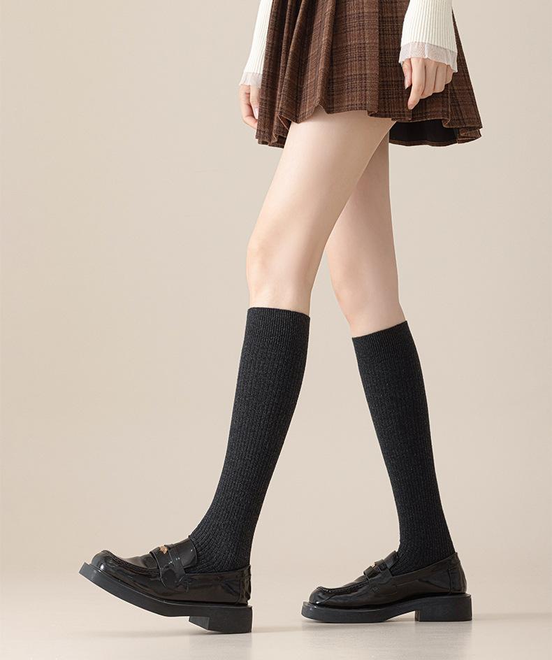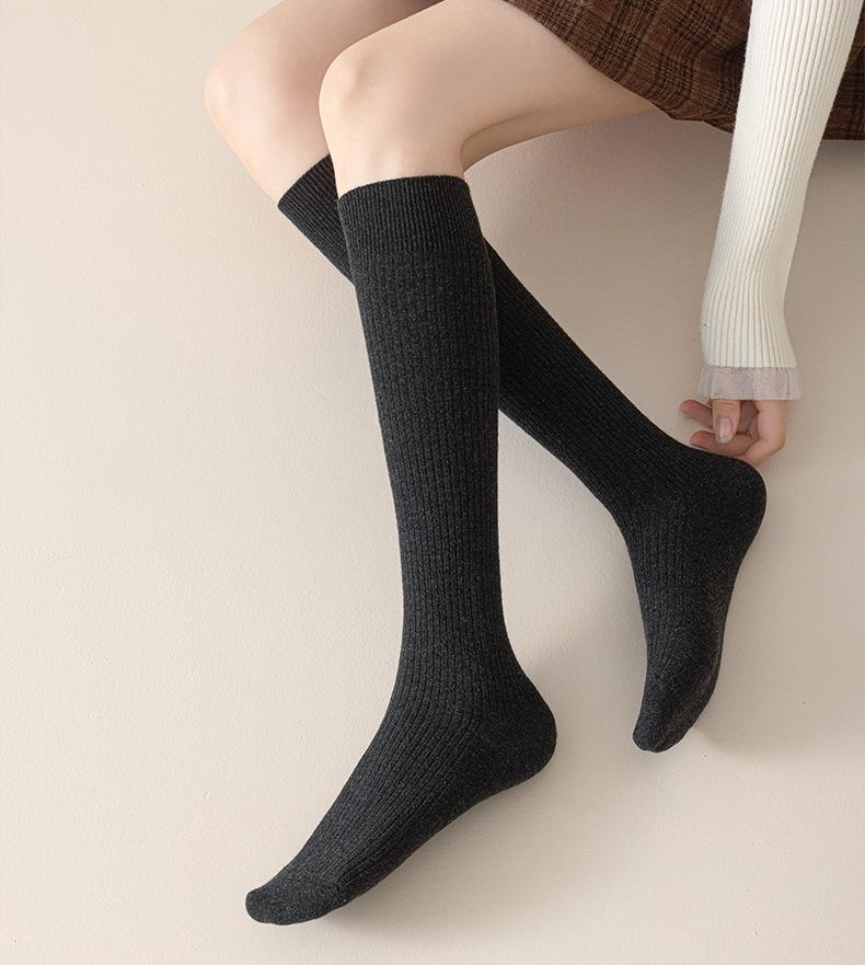 Calcetines de lana de becerro merino otoño e invierno engrosados acanalado de doble aguja calcetines hasta la rodilla para piernas hermosas calcetines largos de presión JK japoneses para mujer