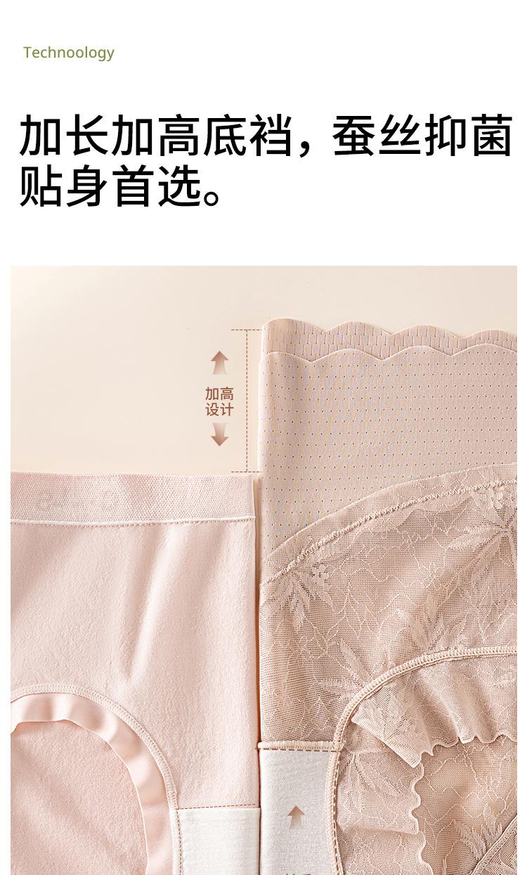 Braguitas de Encaje de Malla Mujer Cintura Alta Control de Abdomen Levantamiento de Cadera Transpirables Seda de Morera Antibacterianas Entrepierna Extendida Bóxers para Mujer
