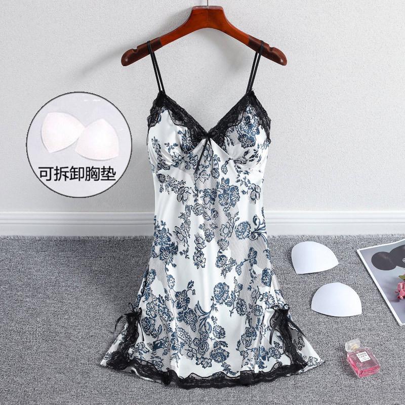 Night Su Lencería Sexy Camisón Sexy para Mujer Nuevo Estilo Tirantes Encaje Lencería Sexy con Almohadillas para el Busto Ropa para el Hogar Dropshipping