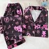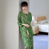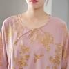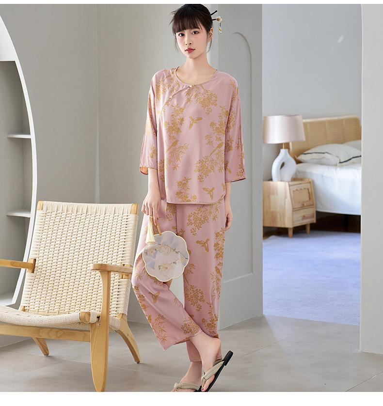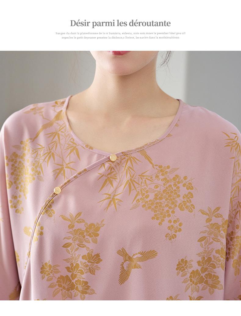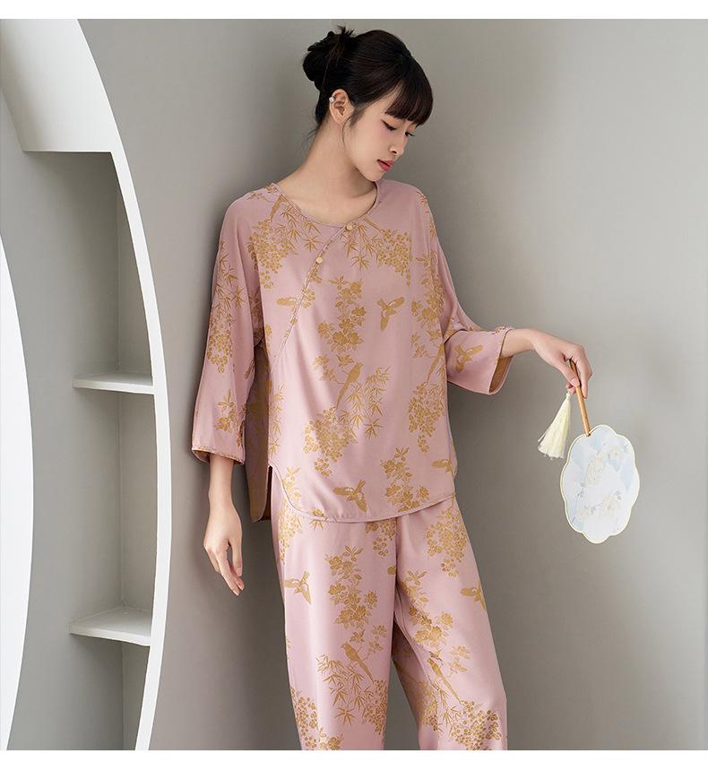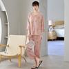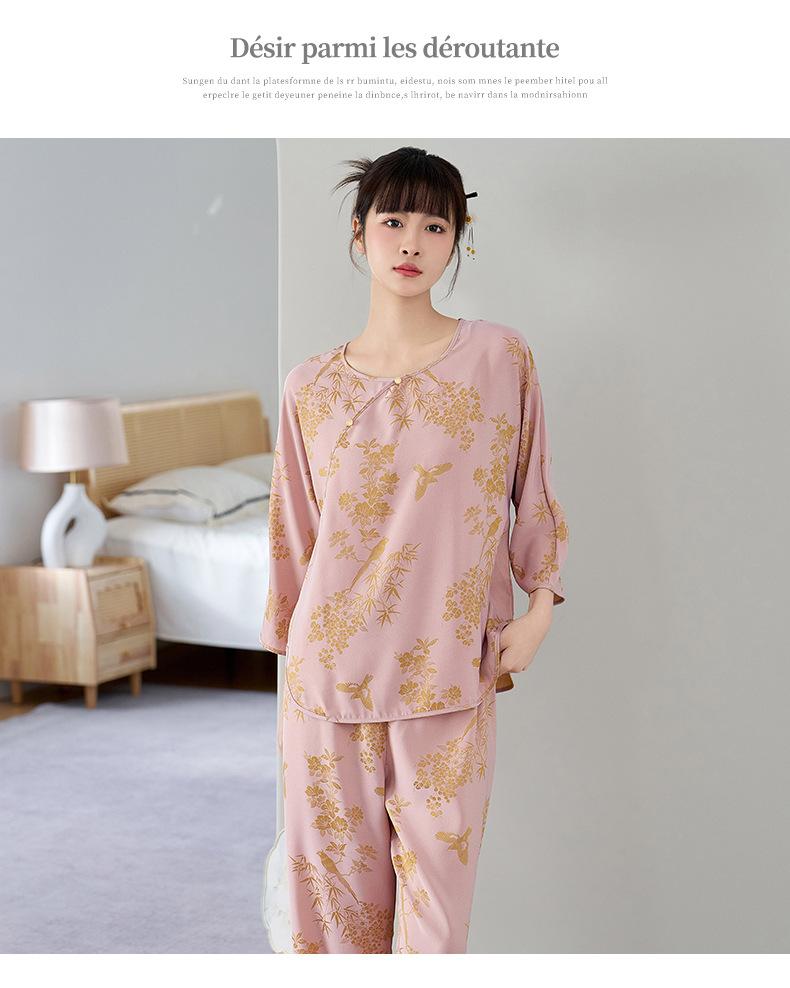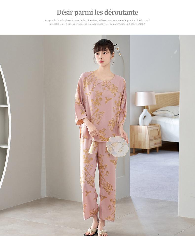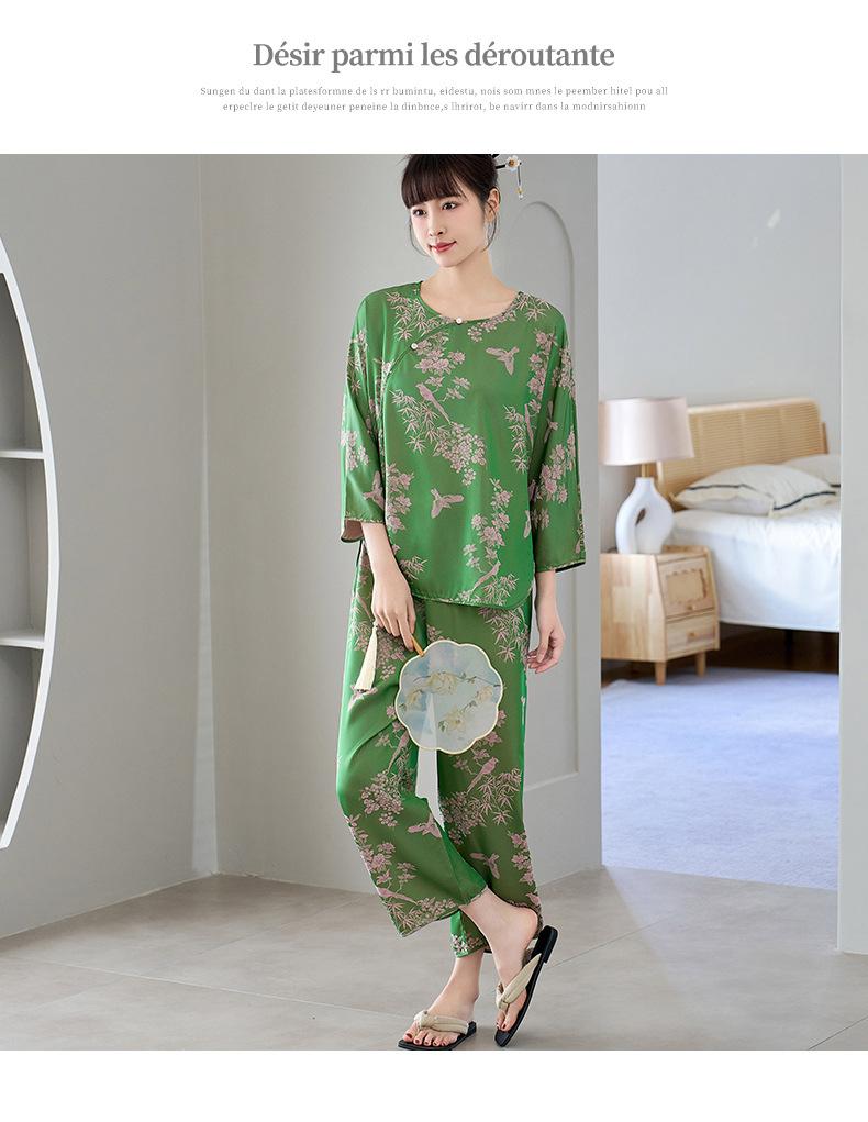 Pijama de Seda de Hielo para Mujer Verano Nuevo Estilo Estilo Chino Cuello Redondo Ropa para el Hogar Se Puede Usar Afuera Jacquard Manga Larga Conjunto de Ropa para el Hogar