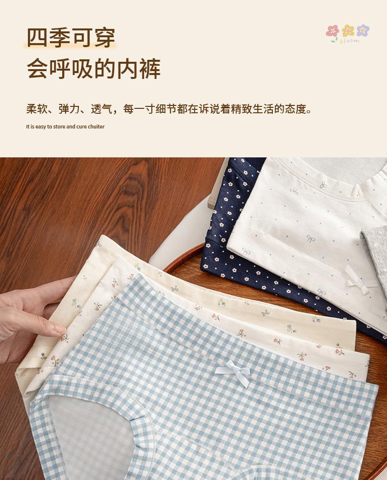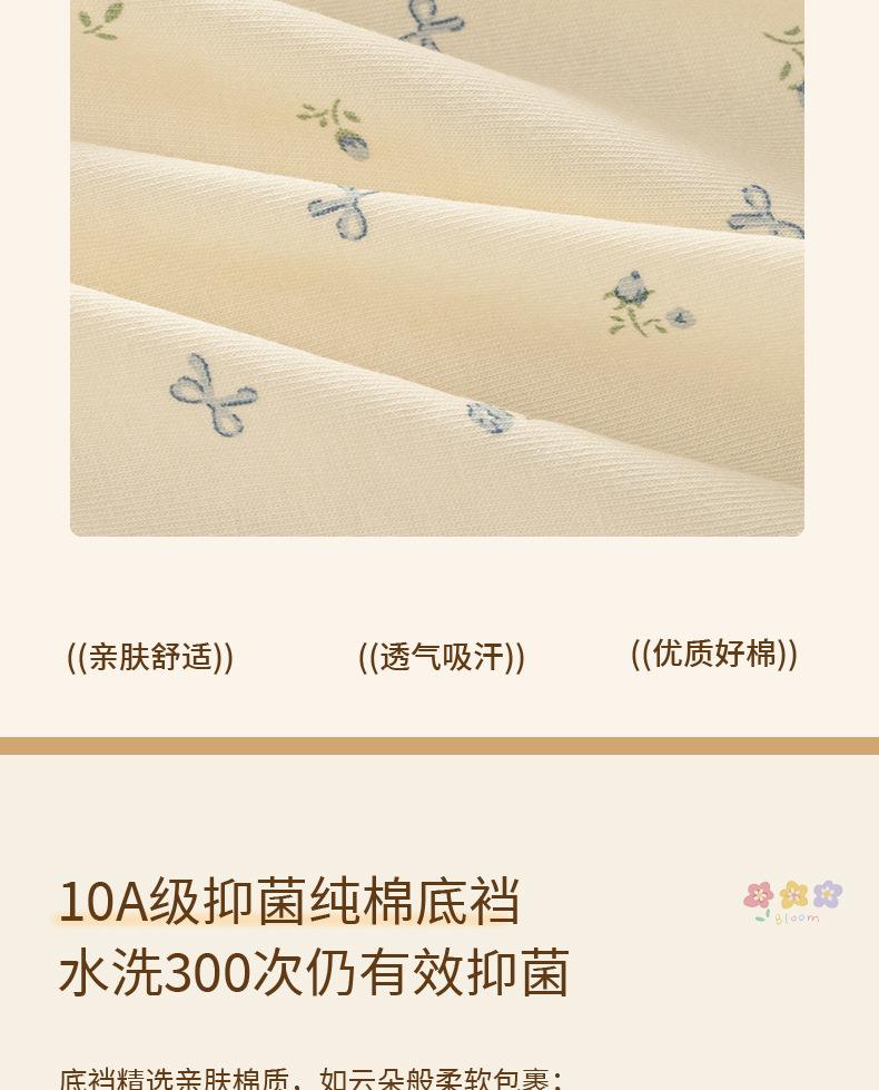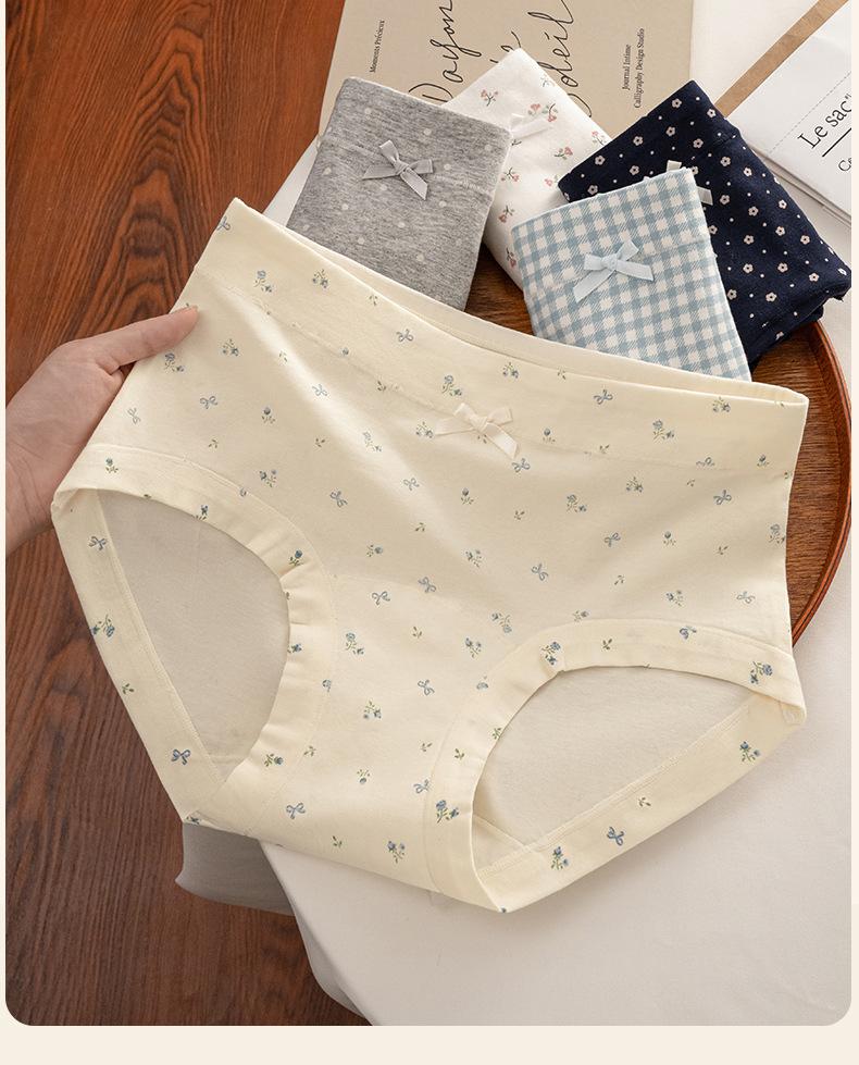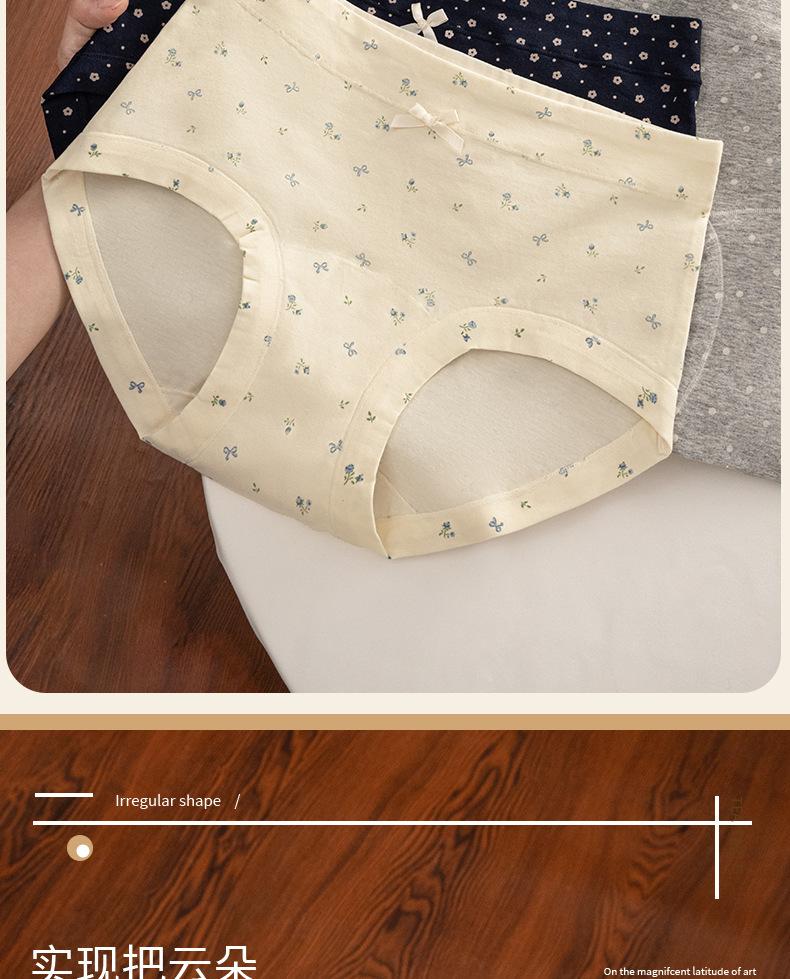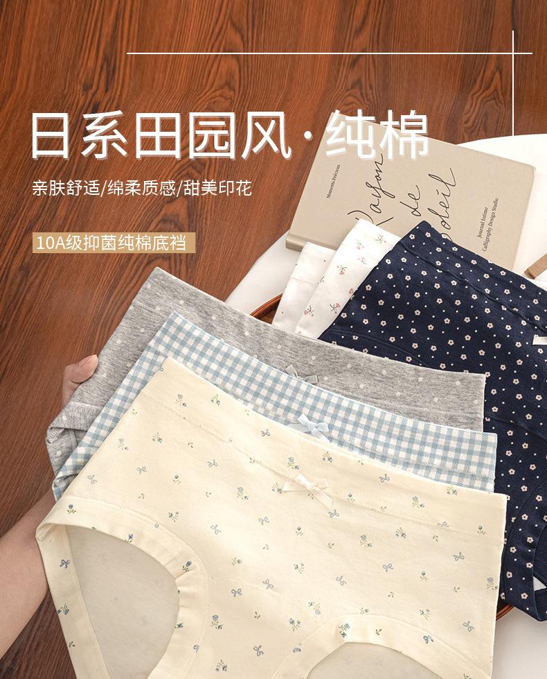 Ropa interior floral de pierna plana para mujer Algodón puro Cintura media-alta 10A Entrepierna de algodón antibacteriana Delicado con la piel Transpirable Calzones para niña Mujer