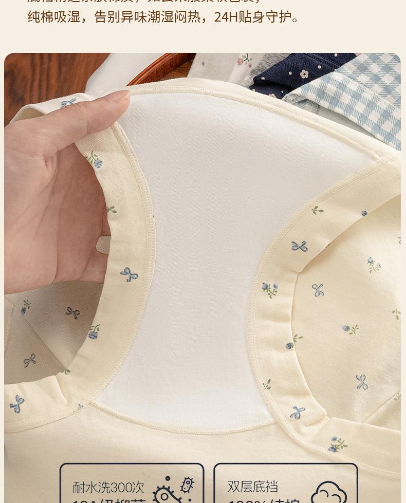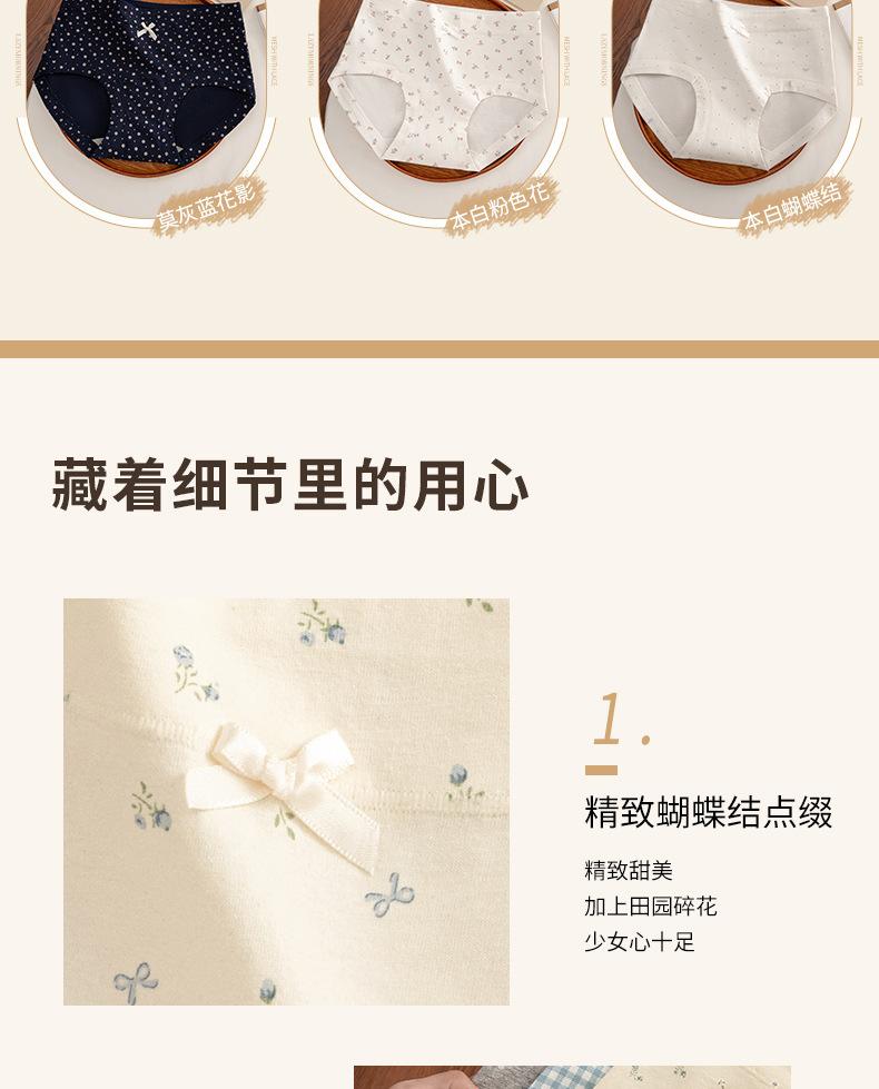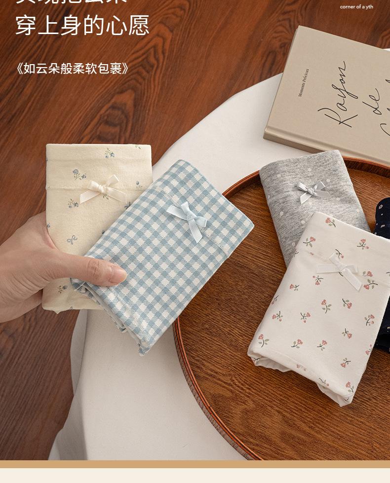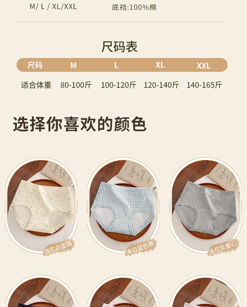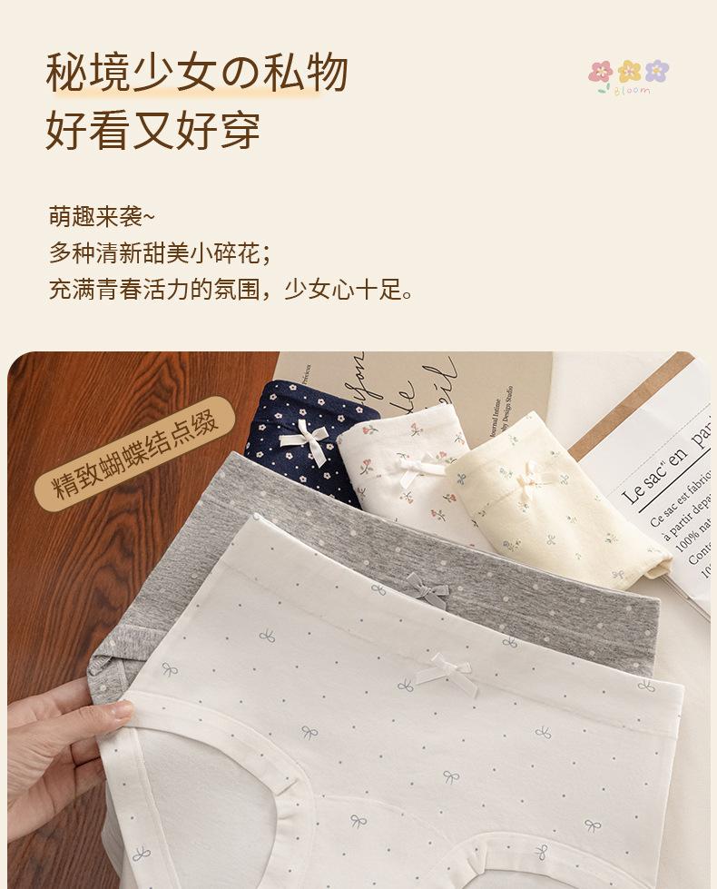 Ropa interior floral de pierna plana para mujer Algodón puro Cintura media-alta 10A Entrepierna de algodón antibacteriana Delicado con la piel Transpirable Calzones para niña Mujer