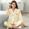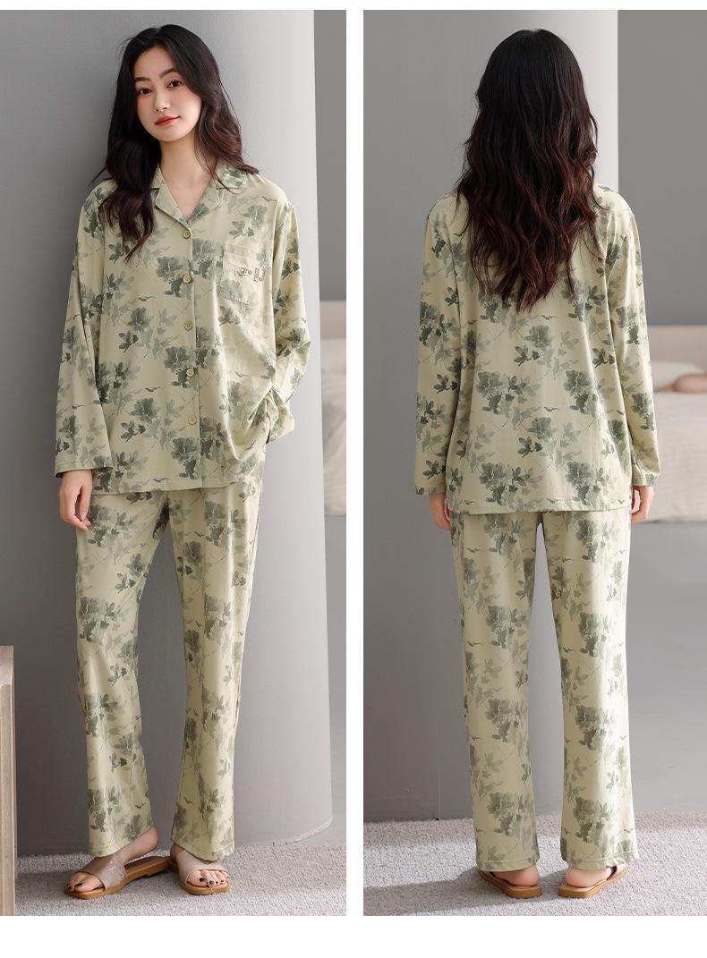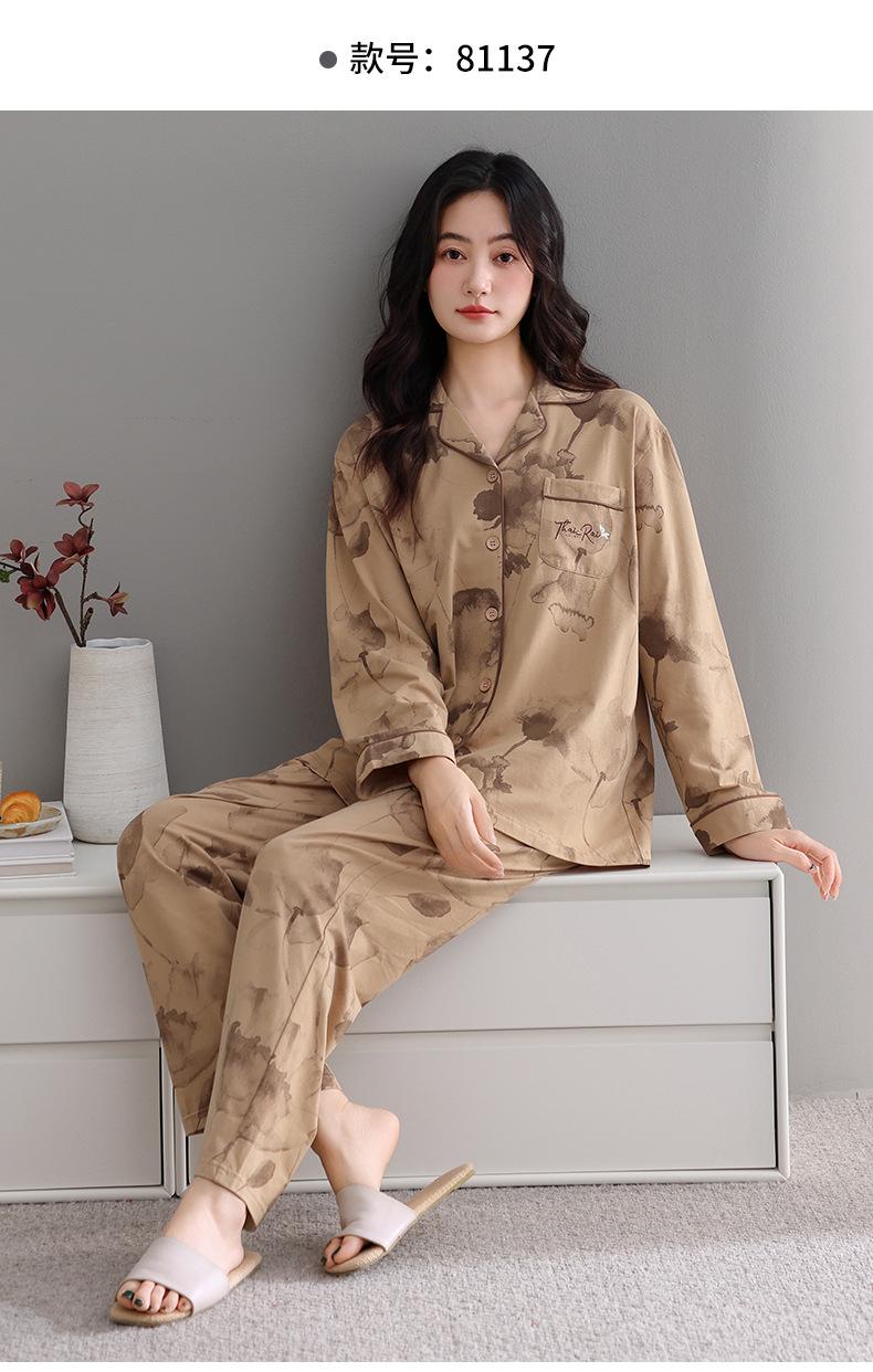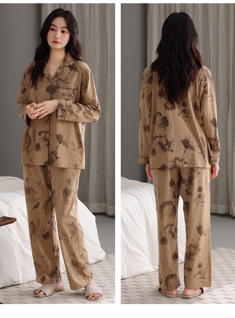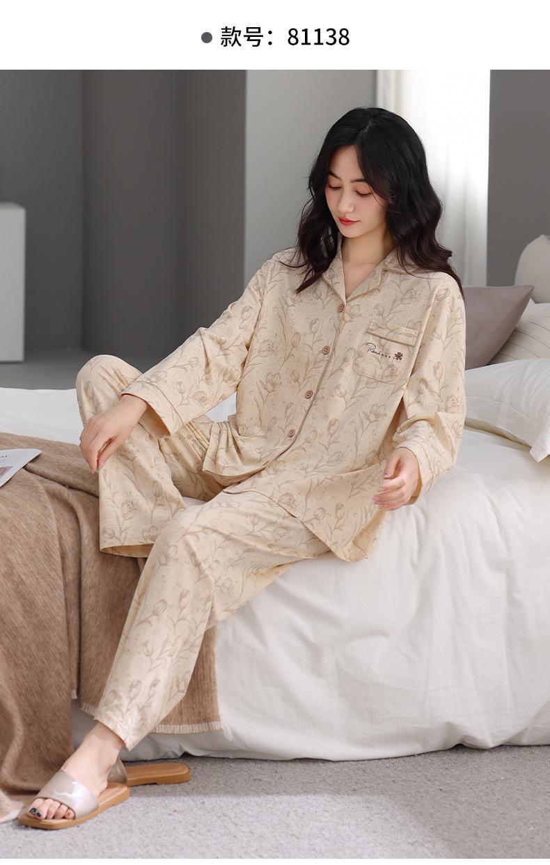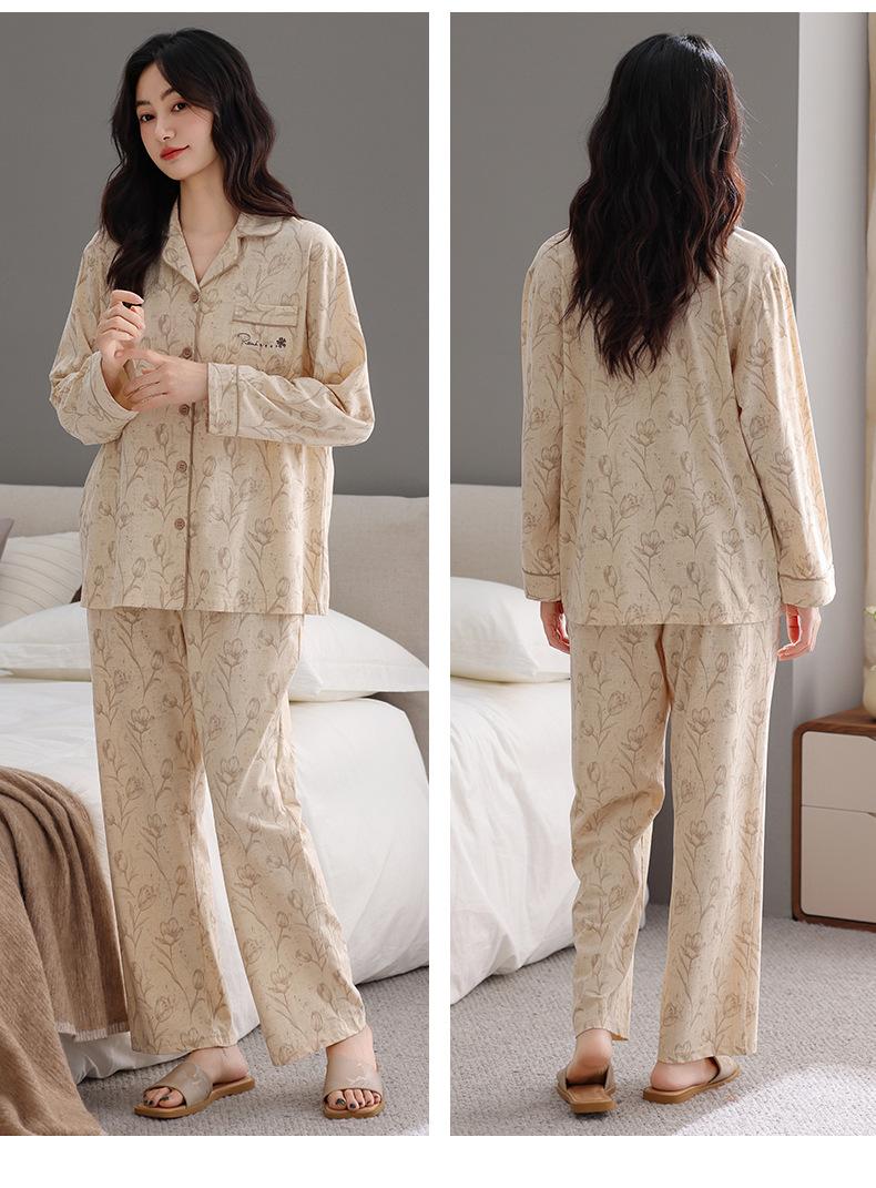 Pijamas suaves para mujer estilo primavera y otoño algodón puro manga larga pantalones largos mamá de mediana edad otoño holgado talla grande conjunto de ropa de casa