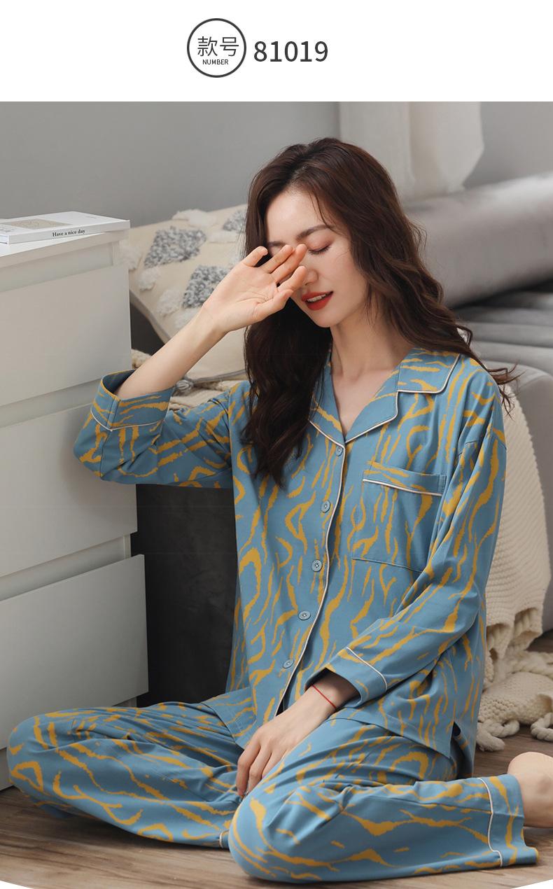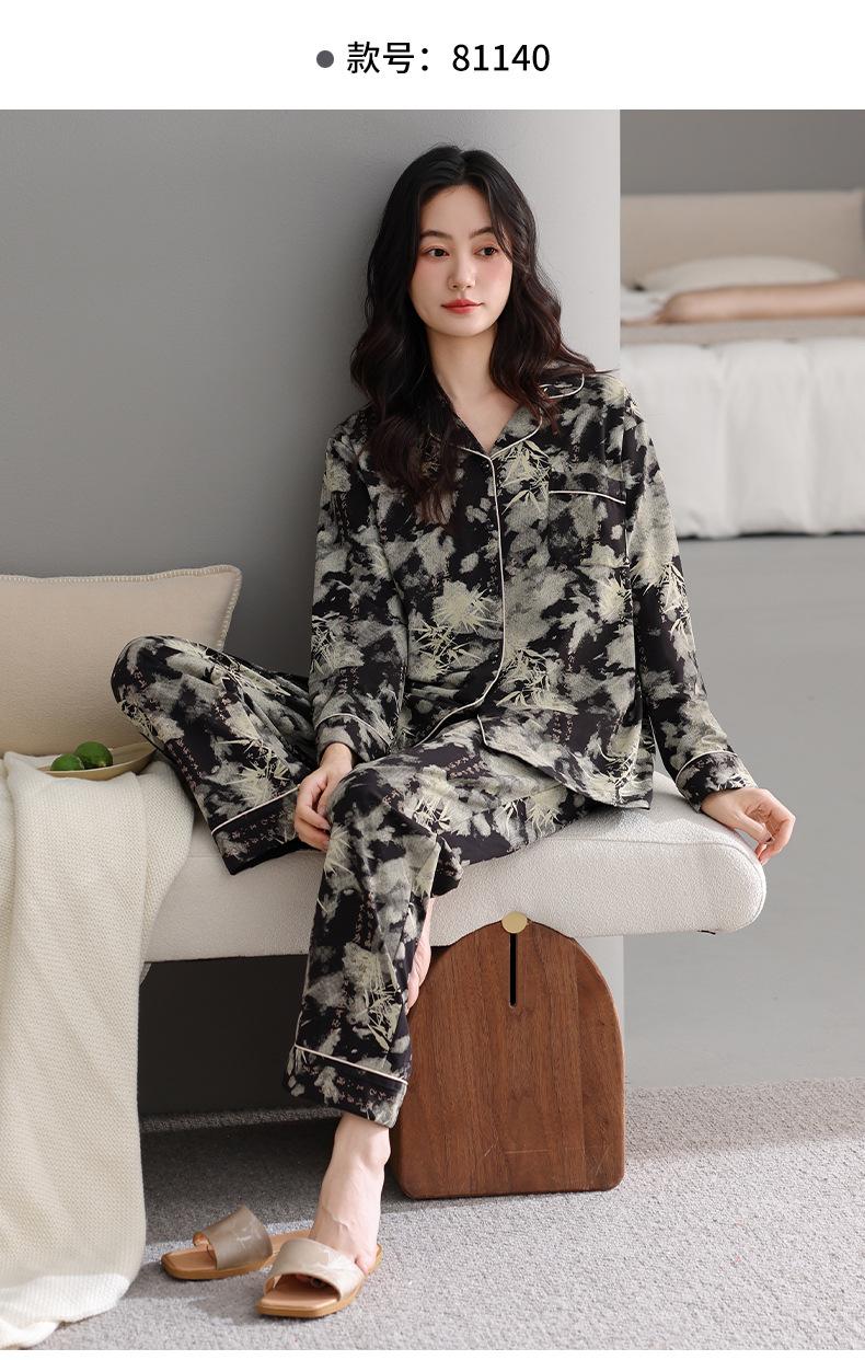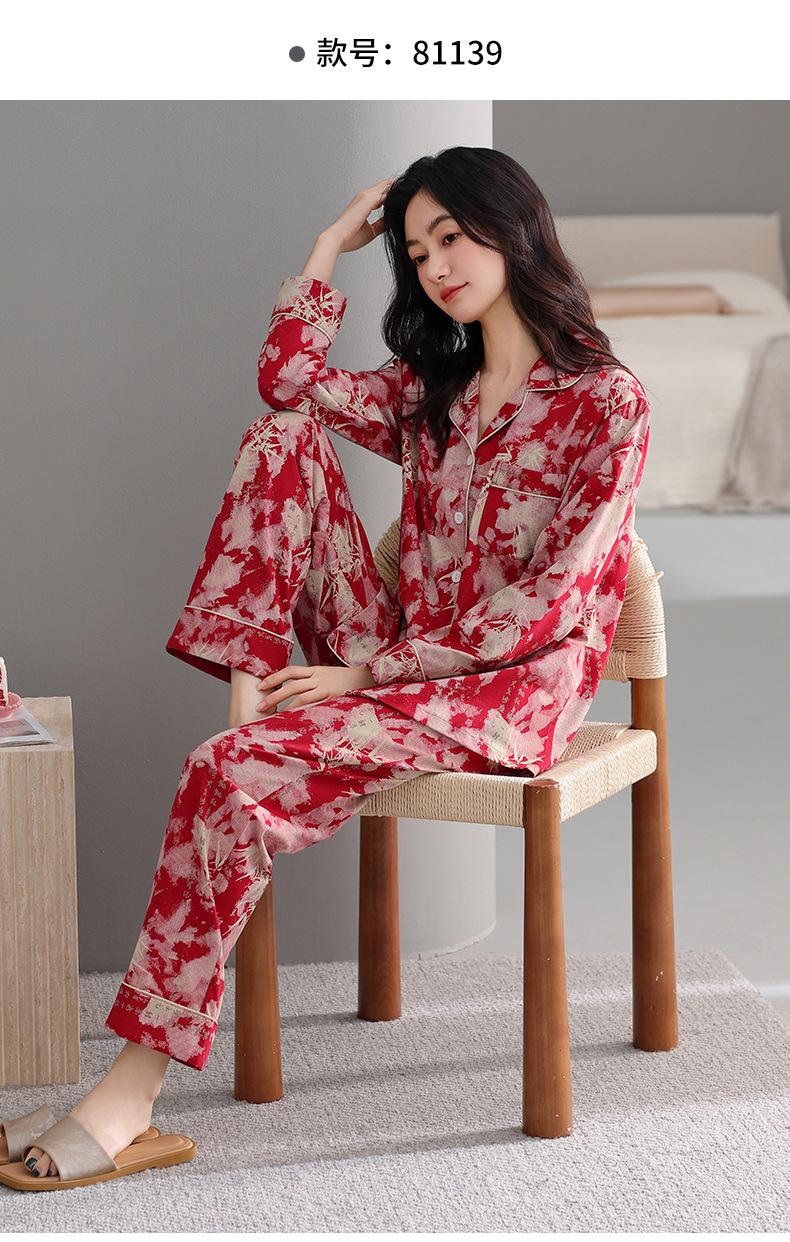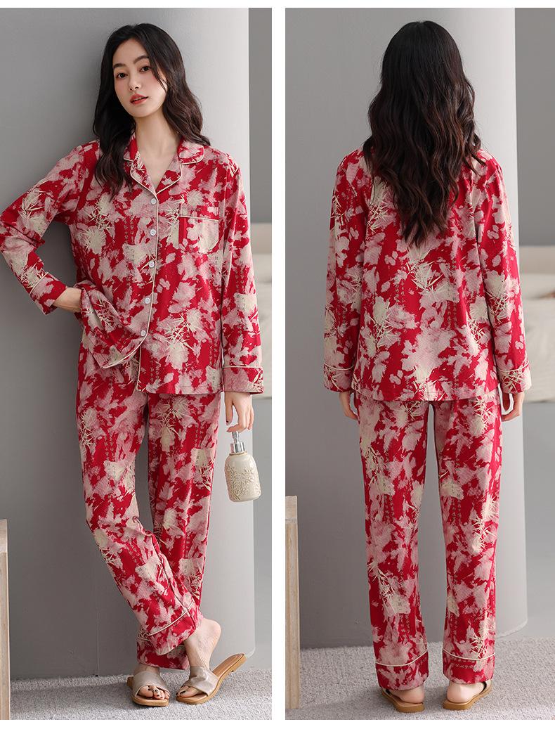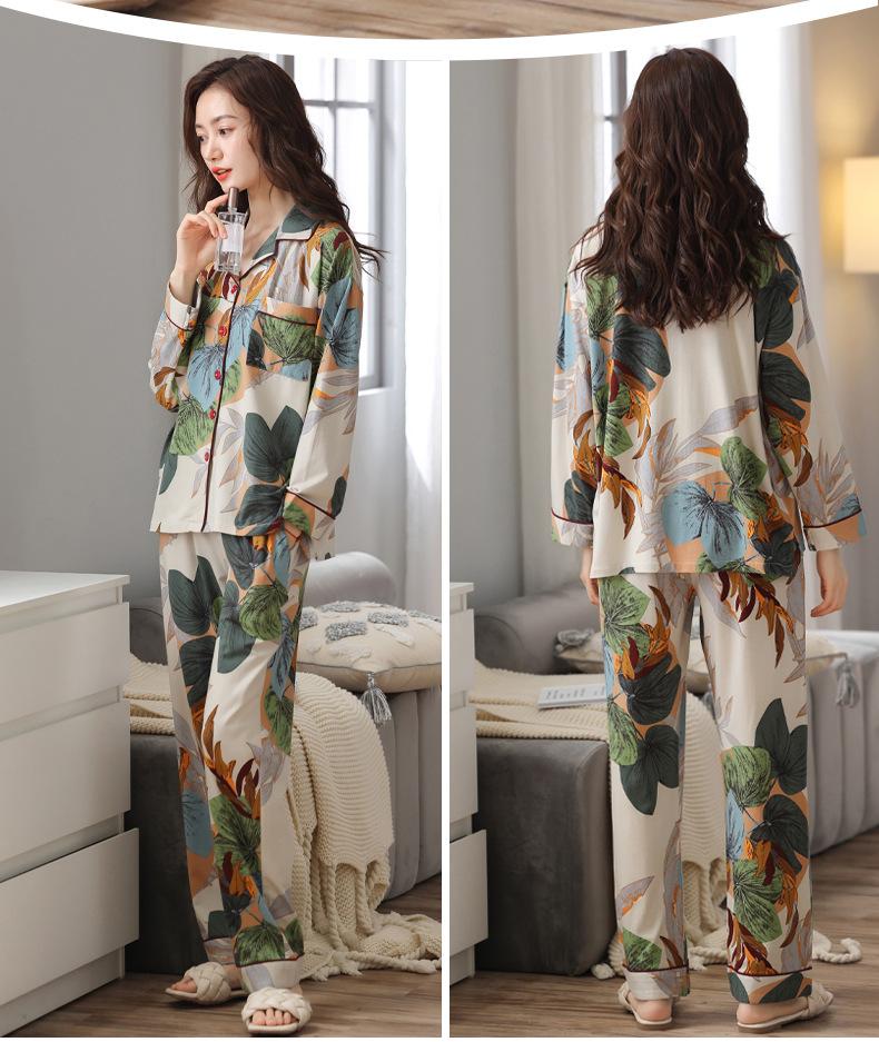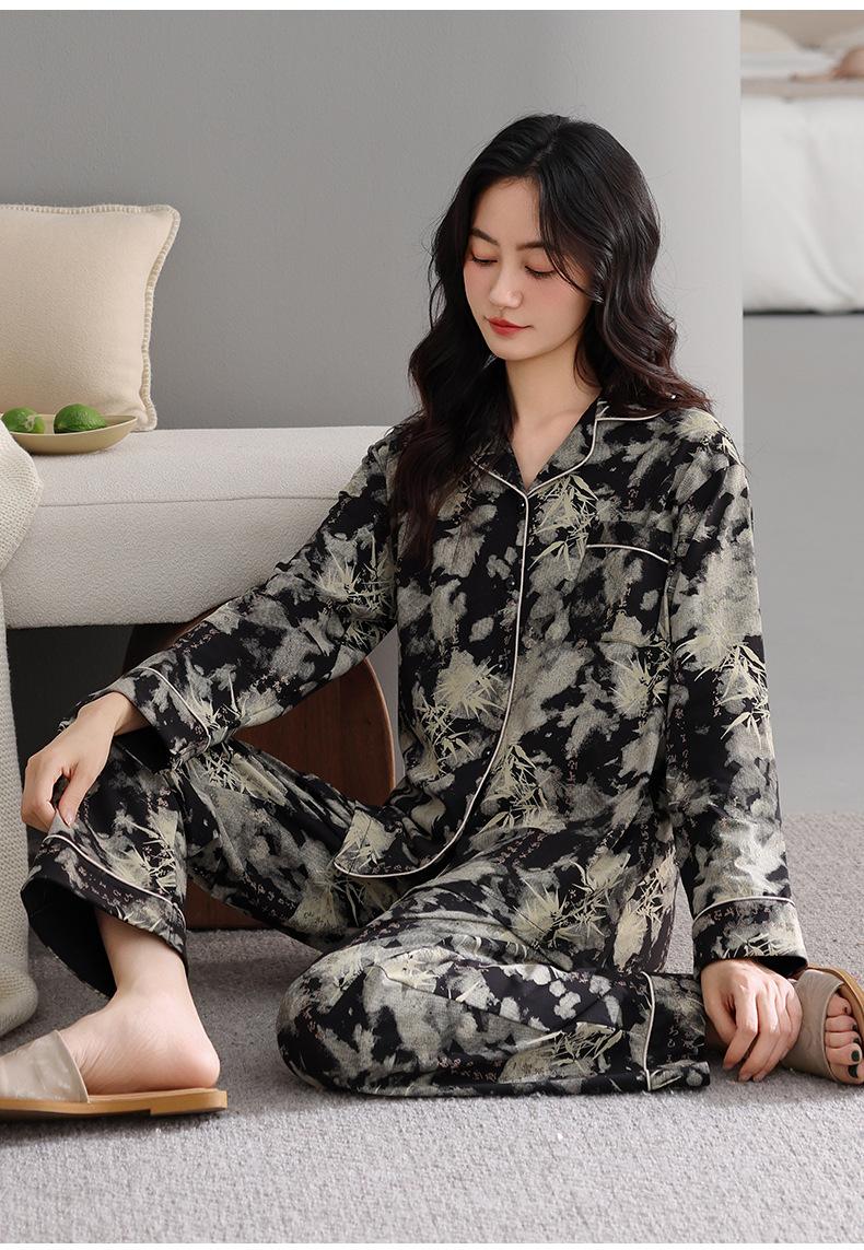 Pijamas suaves para mujer estilo primavera y otoño algodón puro manga larga pantalones largos mamá de mediana edad otoño holgado talla grande conjunto de ropa de casa