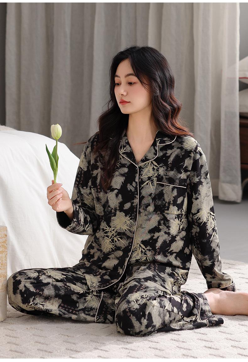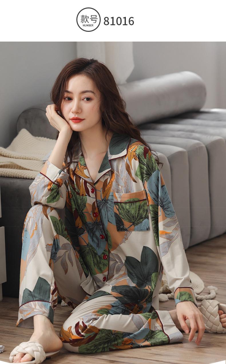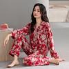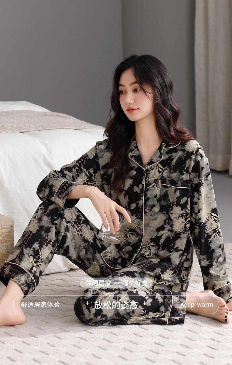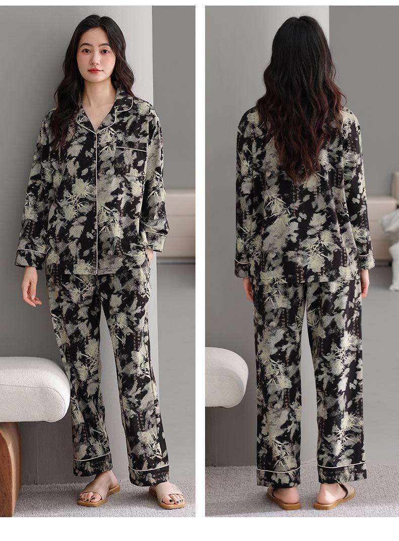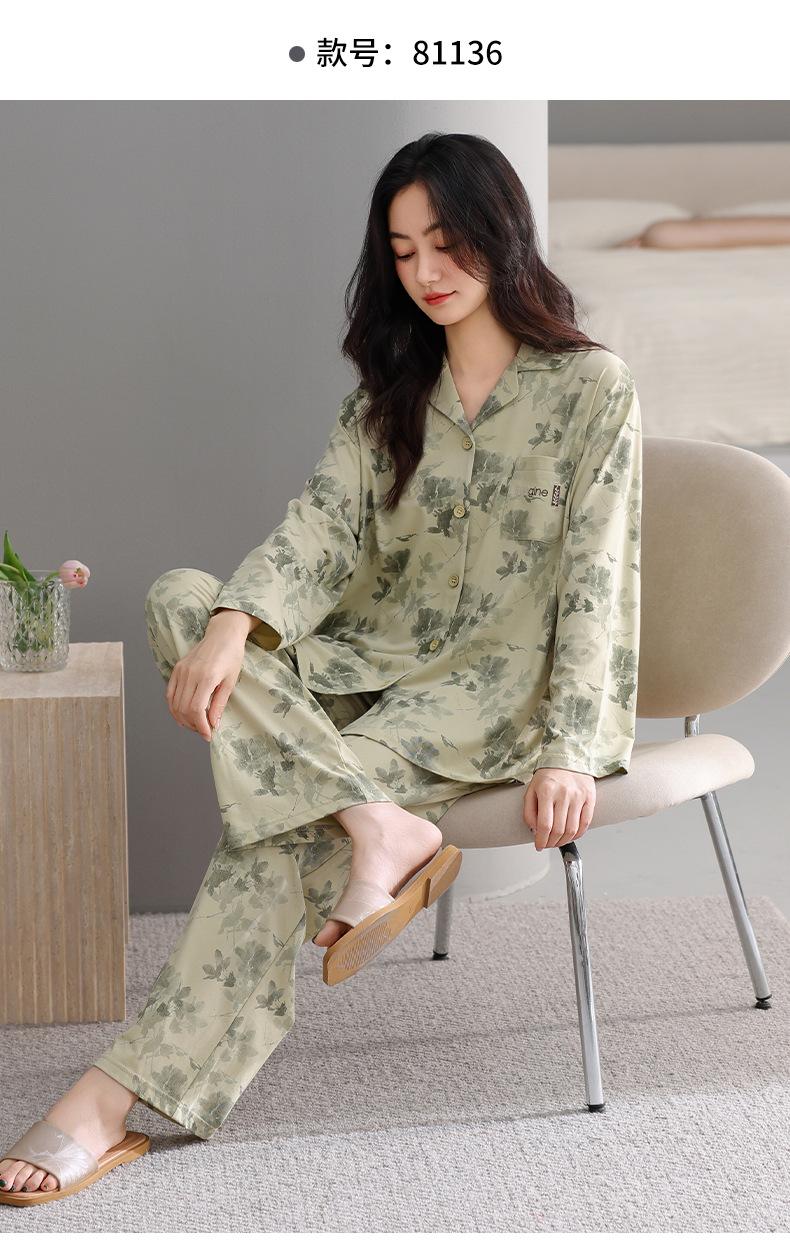 Pijamas suaves para mujer estilo primavera y otoño algodón puro manga larga pantalones largos mamá de mediana edad otoño holgado talla grande conjunto de ropa de casa