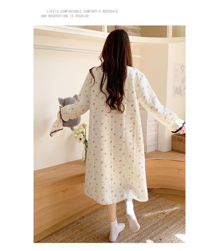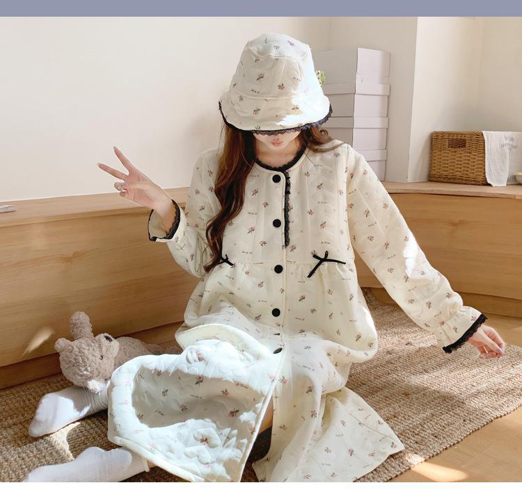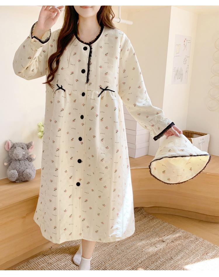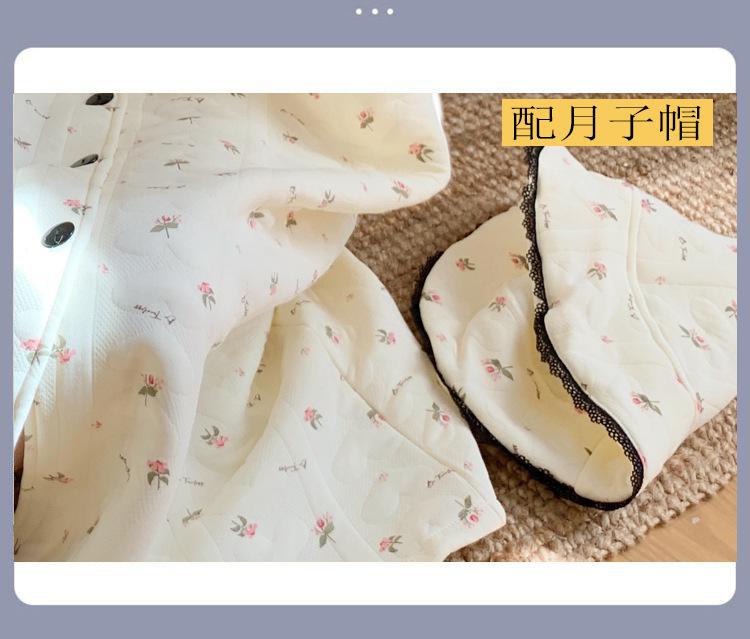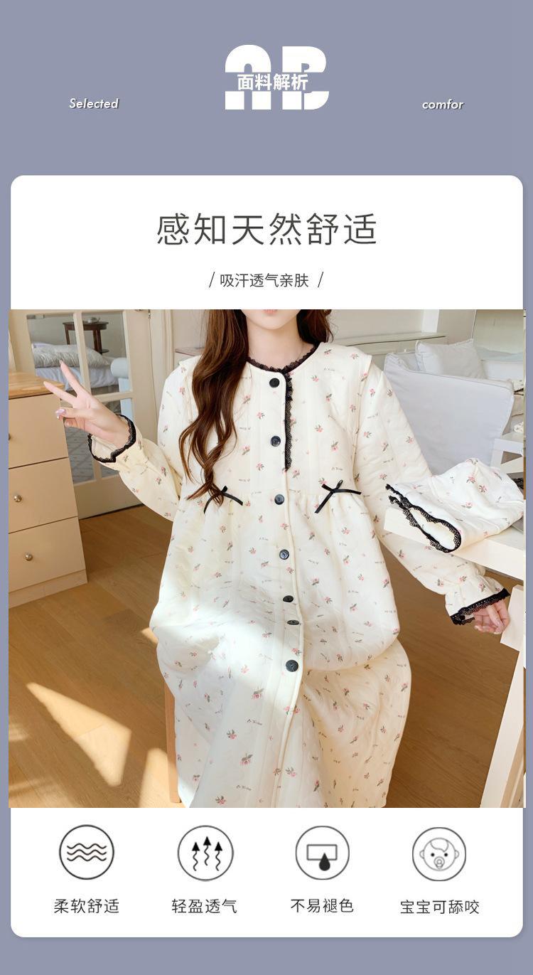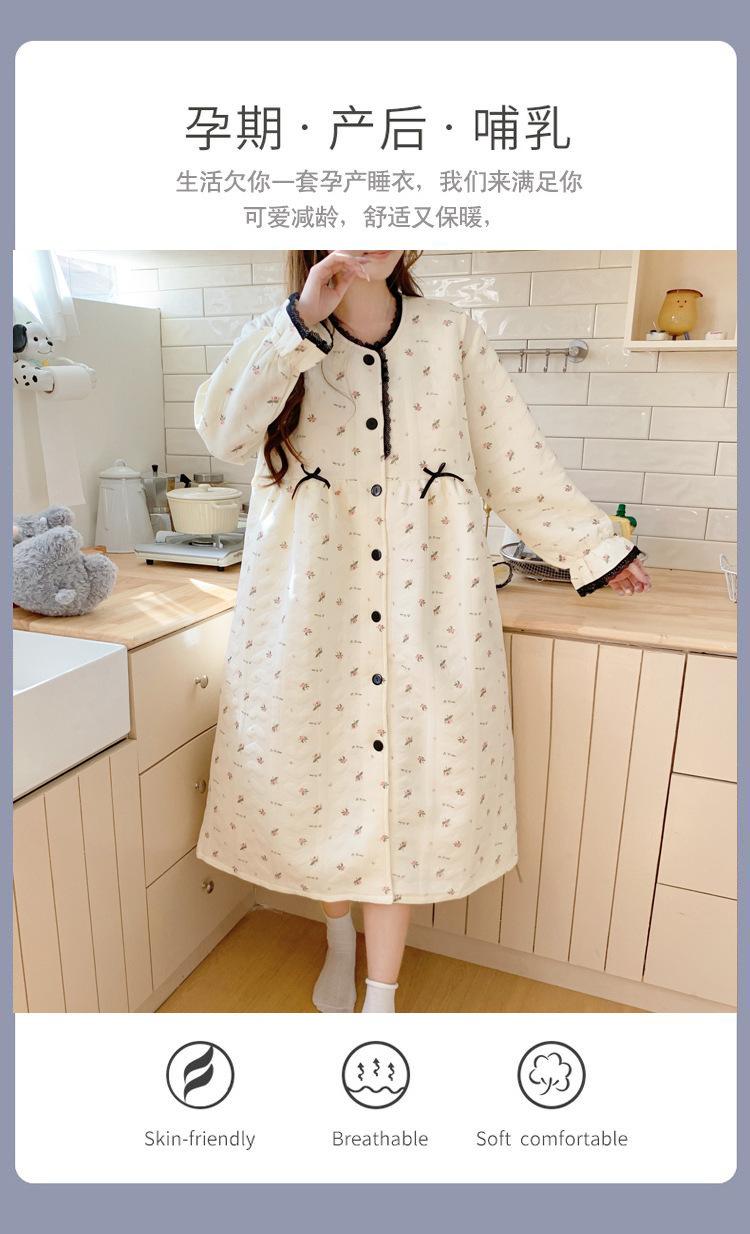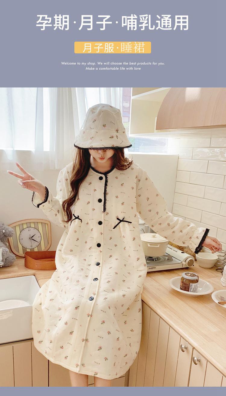 Vestido de Maternidad Nuevo de Invierno Happy Moon Acolchado Removible con Sombrero Postparto Lactancia Capa Intermedia de Algodón Aire Camisón