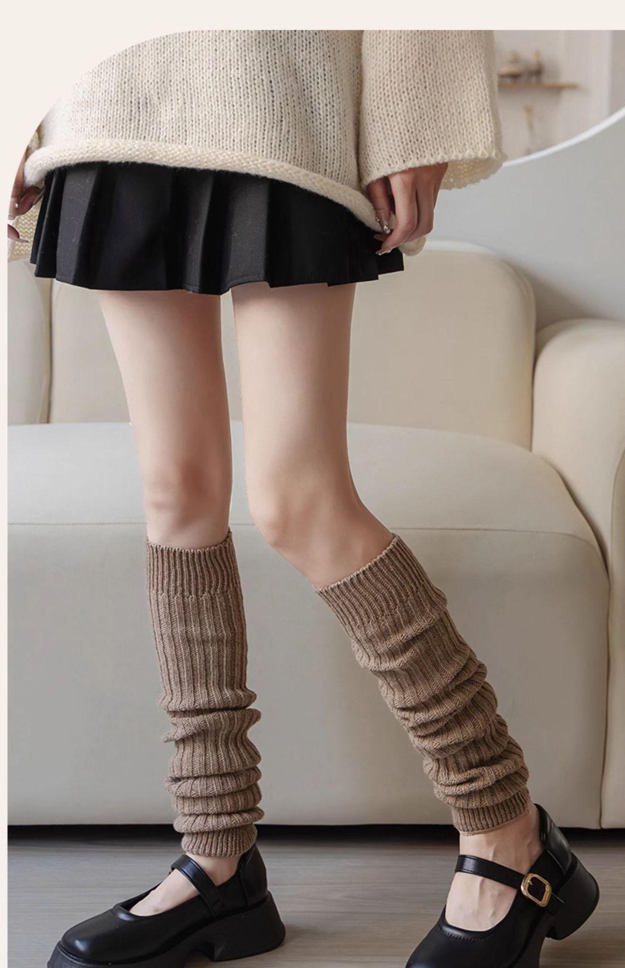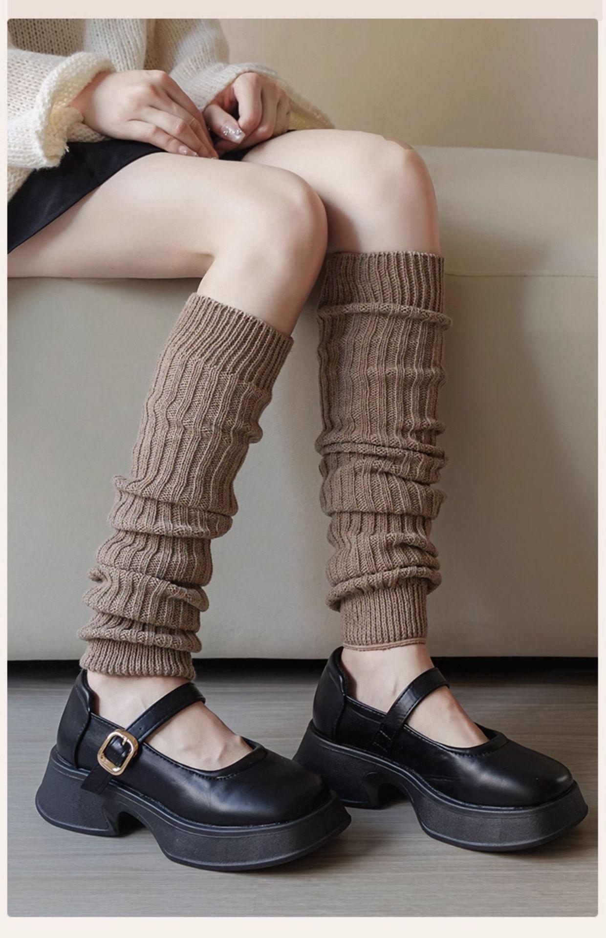 Calcetines Largos de Lana para Mujer Otoño e Invierno Engrosados de Línea Gruesa Cálidos Calcetines Altos Marrones Protectores de Rodilla Muslo Calcetines Japoneses Sobre la Rodilla