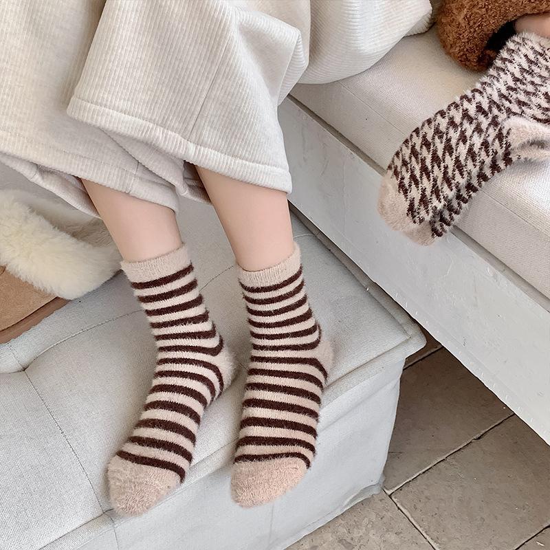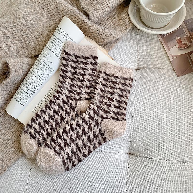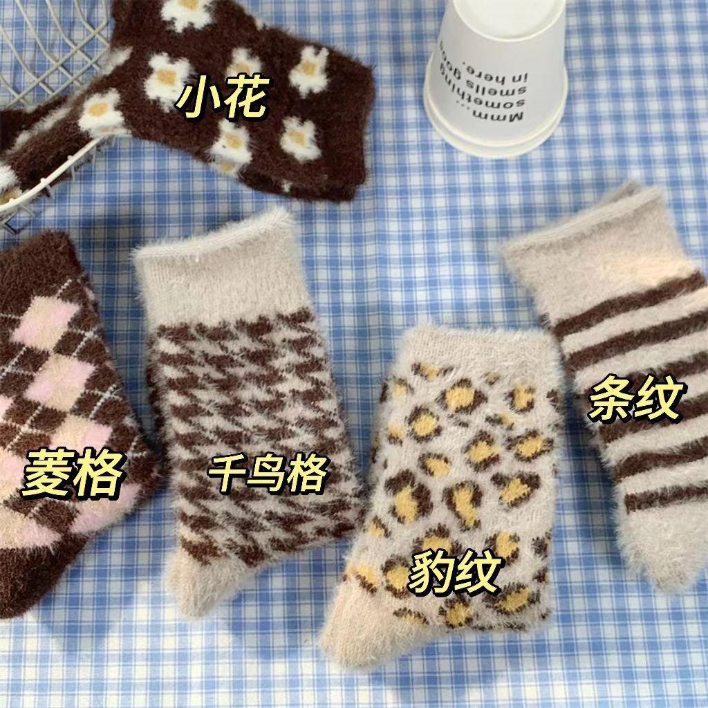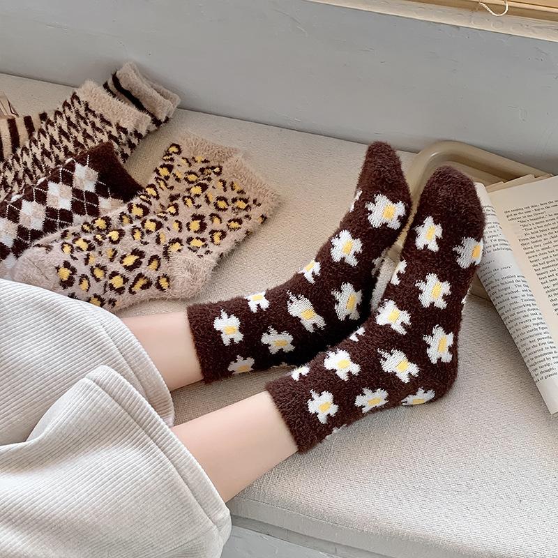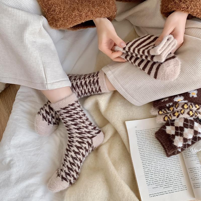 Otoño e invierno más calcetines de piso gruesos de terciopelo cálidos calcetines de dormir de felpa retro versátiles calcetines de media caña calcetines transpirables absorbentes de sudor mujeres