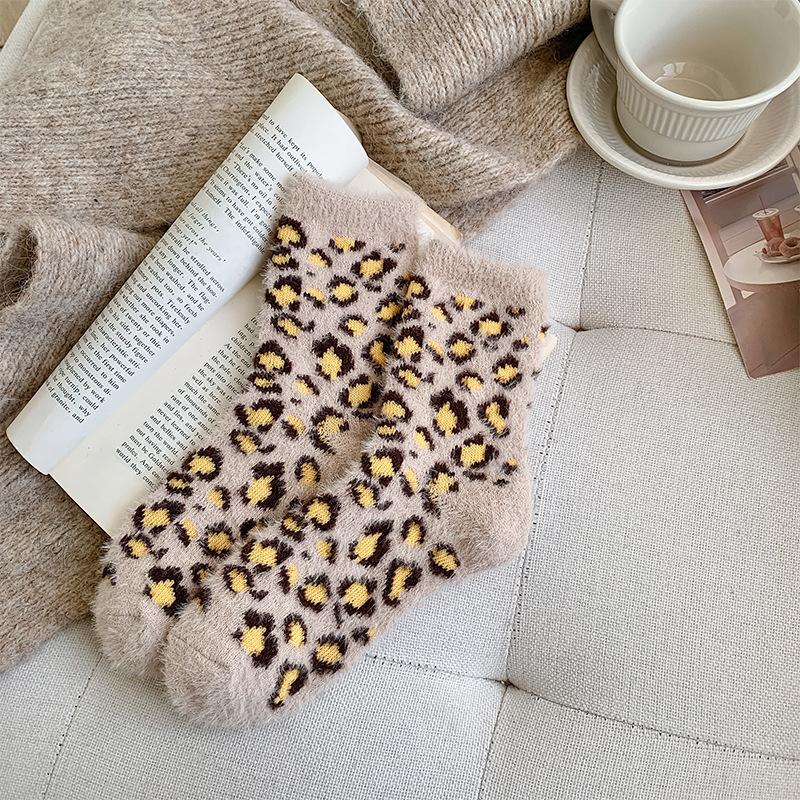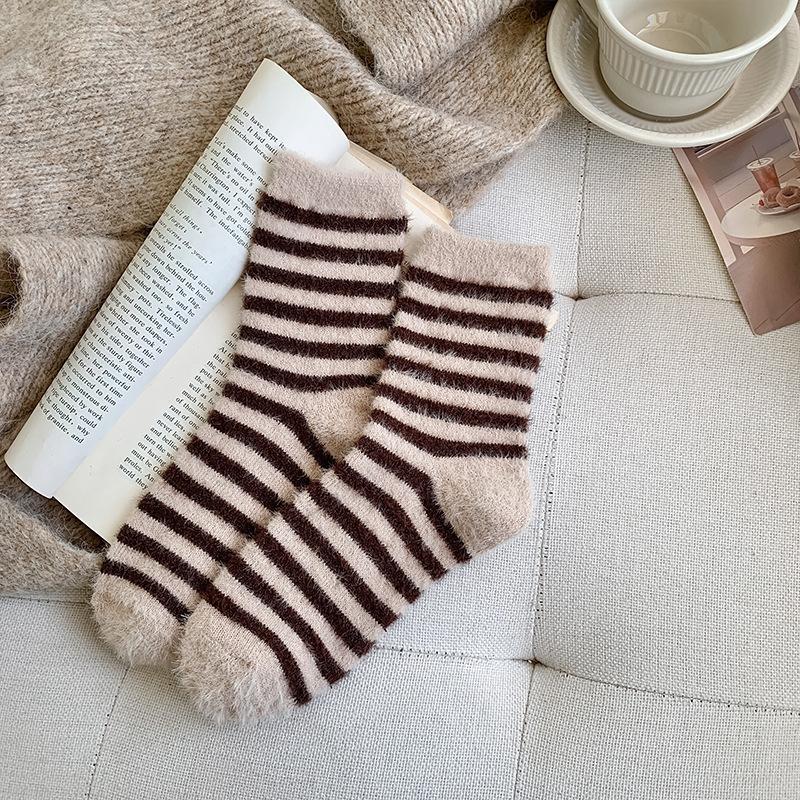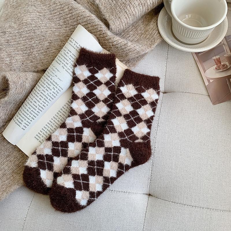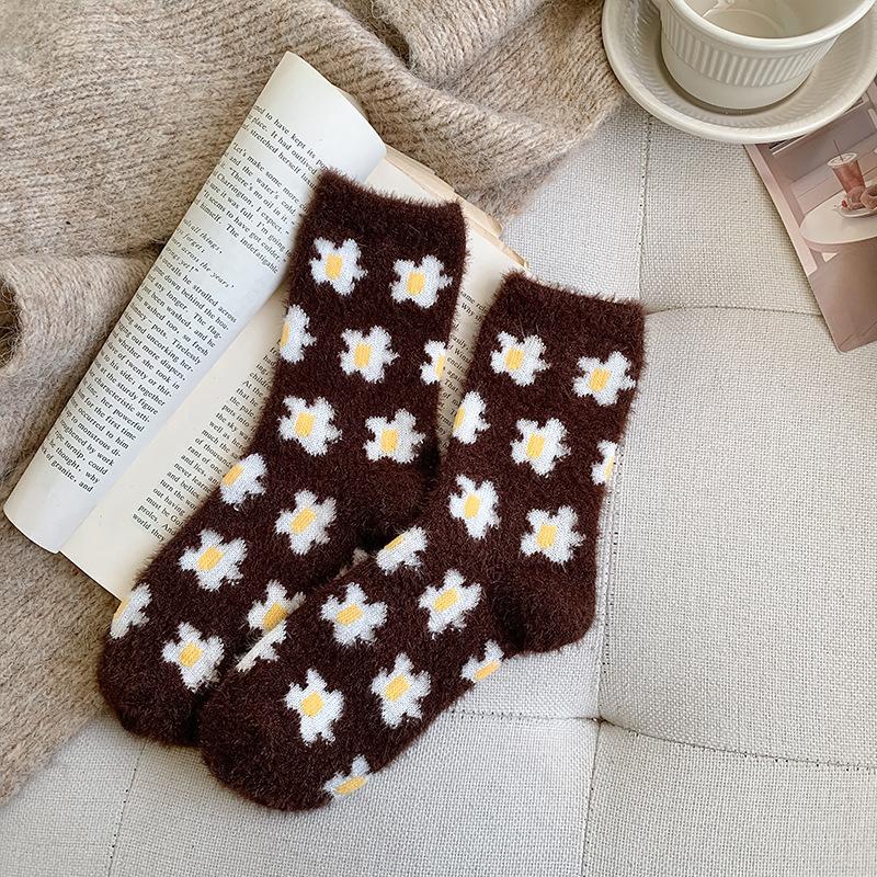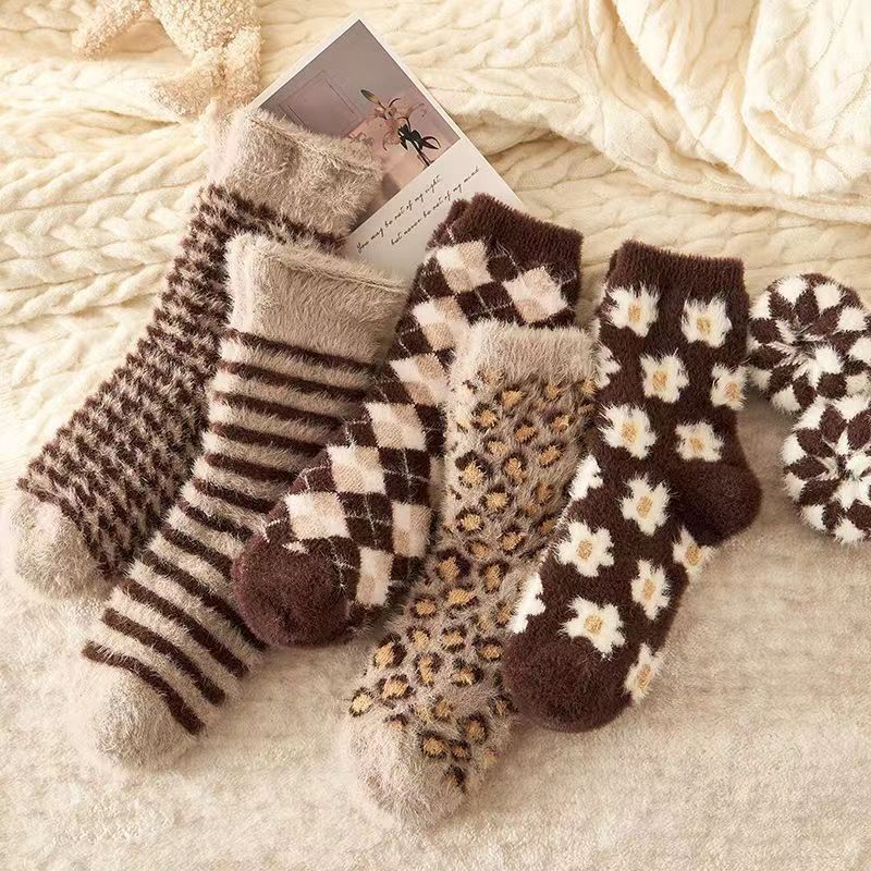 Otoño e invierno más calcetines de piso gruesos de terciopelo cálidos calcetines de dormir de felpa retro versátiles calcetines de media caña calcetines transpirables absorbentes de sudor mujeres