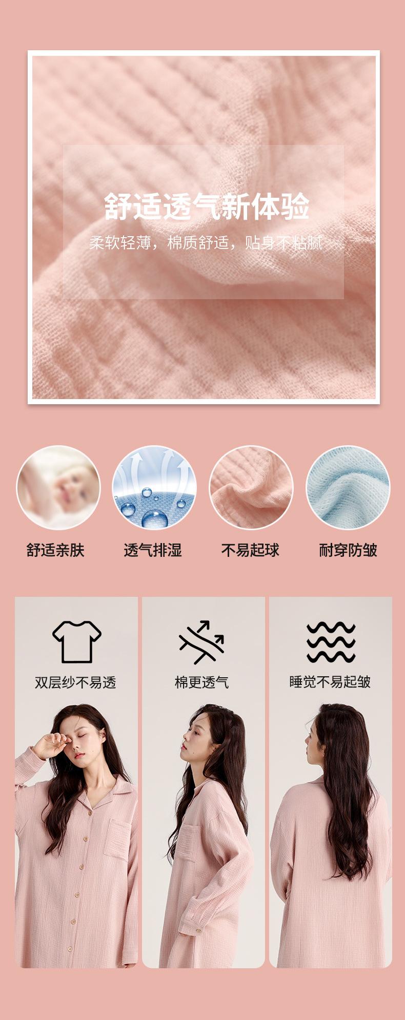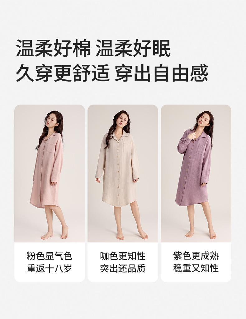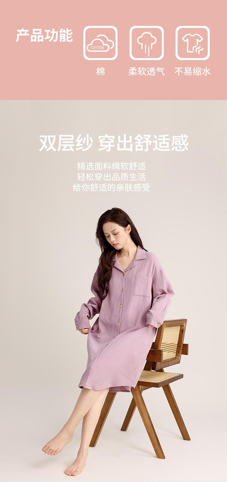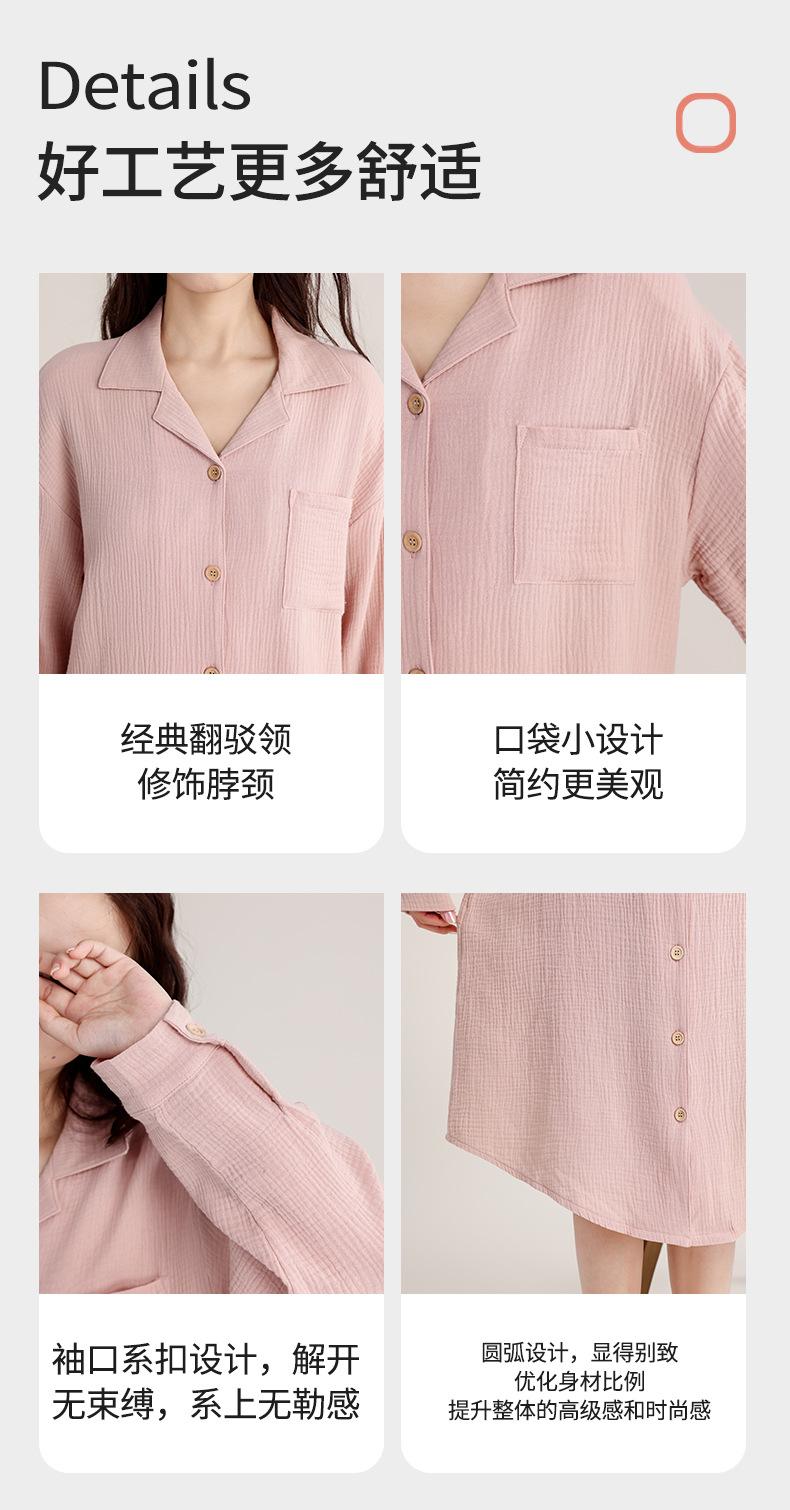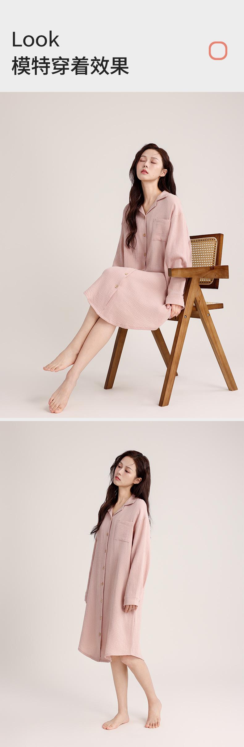 Camisón de Verano Personalizado para Mujer Crepé de Doble Capa Algodón Transpirable Estilo sin Estampado Cárdigan Simple con Solapa Se Puede Usar Afuera