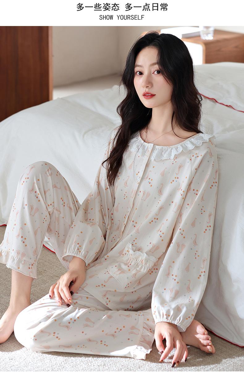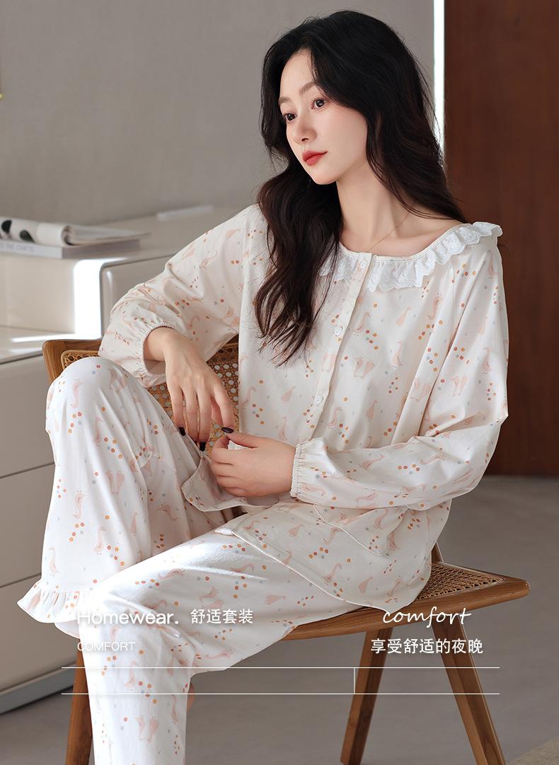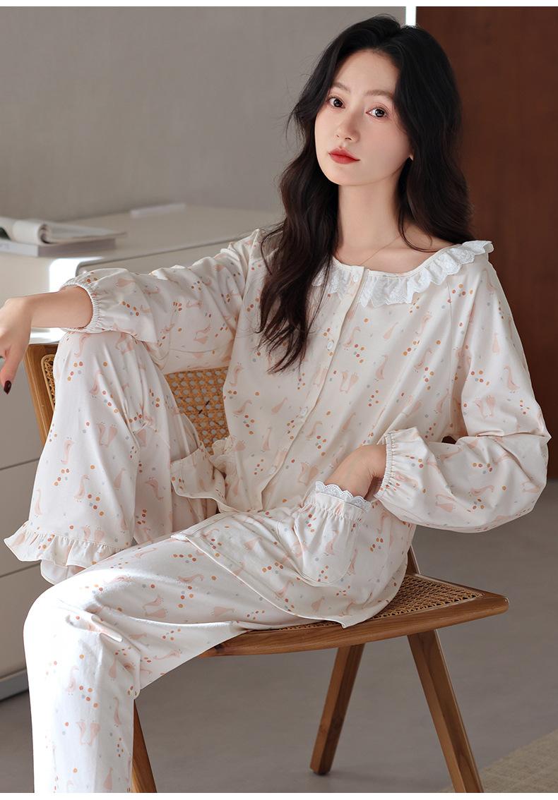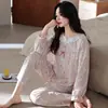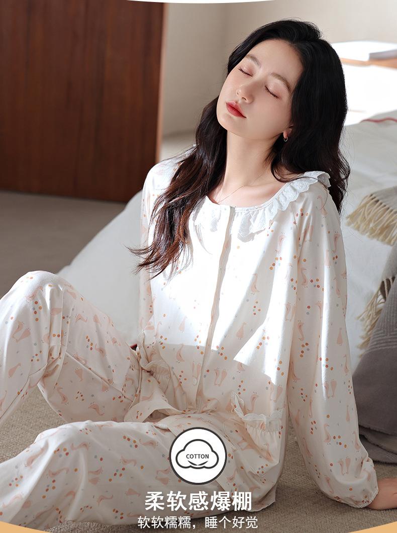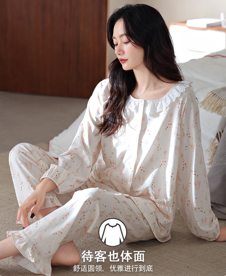 Pijama de algodón de manga larga para mujer de primavera y otoño, nuevo algodón fino casual para el hogar, traje