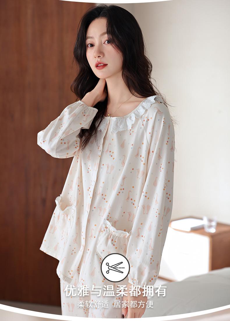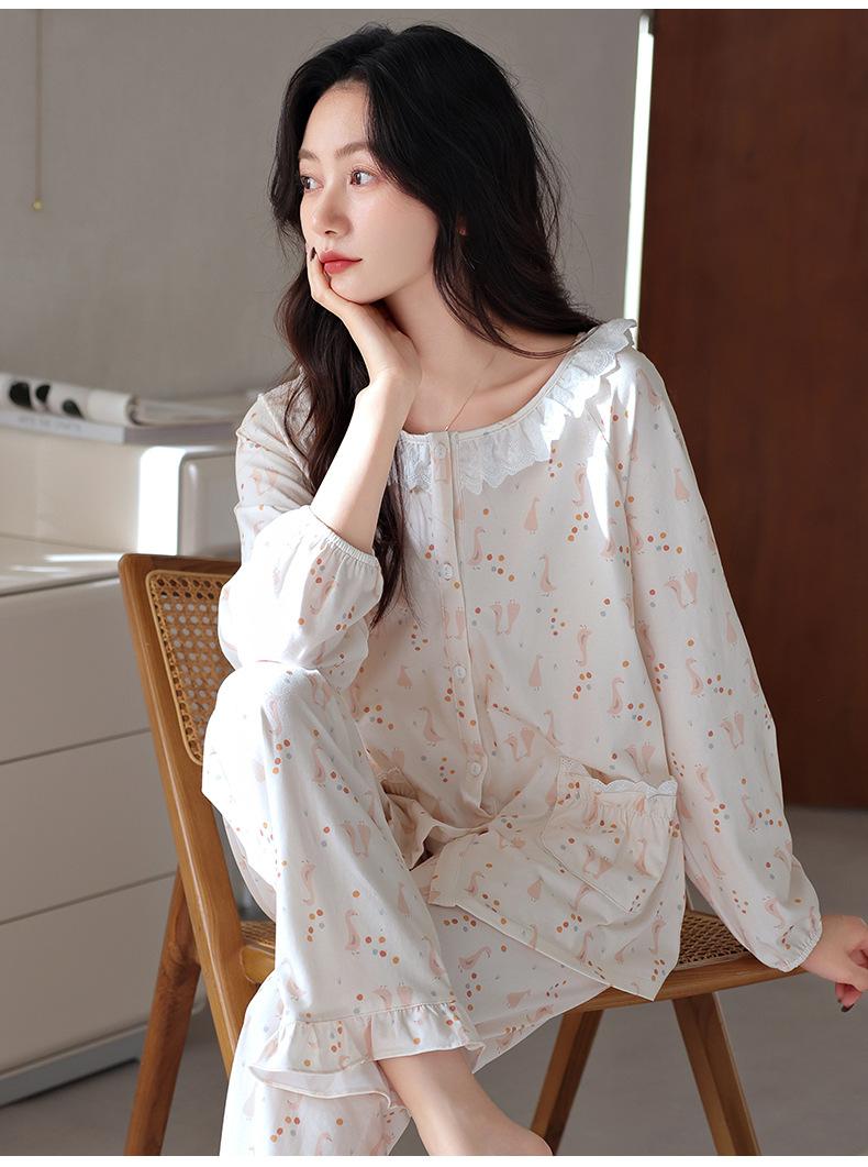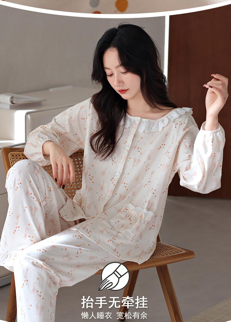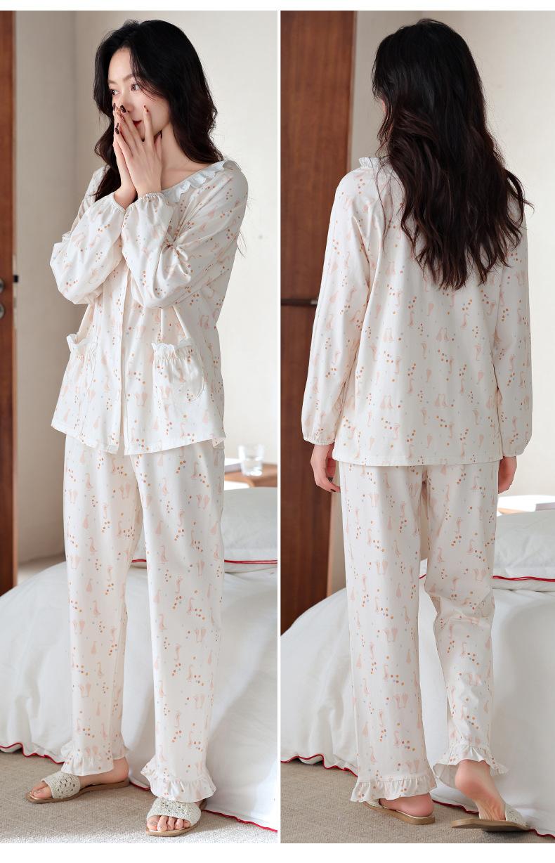 Pijama de algodón de manga larga para mujer de primavera y otoño, nuevo algodón fino casual para el hogar, traje