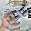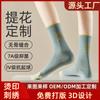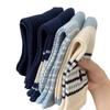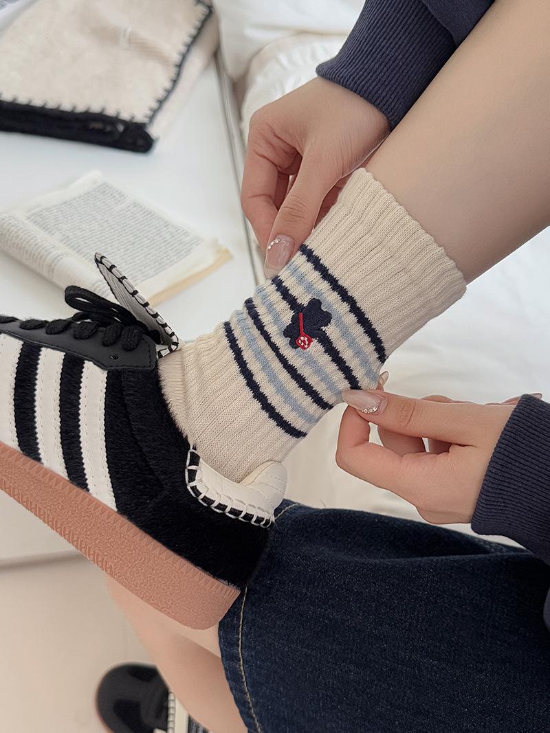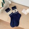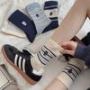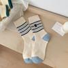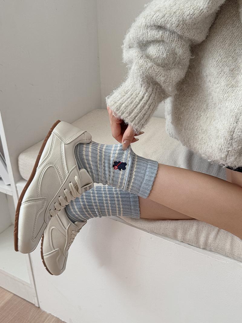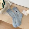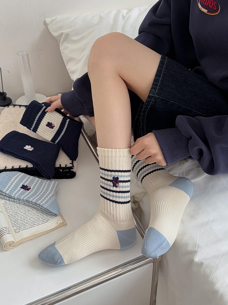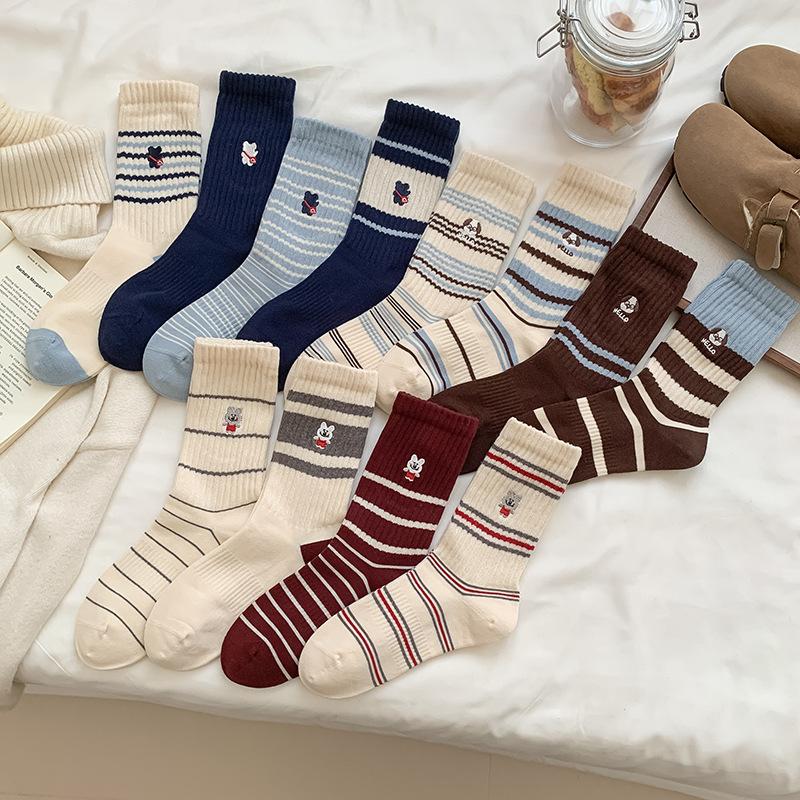 Nuevos Calcetines Holgados a Rayas Gris-Azul Otoño/Invierno Calcetines de Media Caña para Mujer ins Modernos Japoneses Versátiles de Dibujos Animados Osito Calcetines para Mujer por Encima de la Rodilla