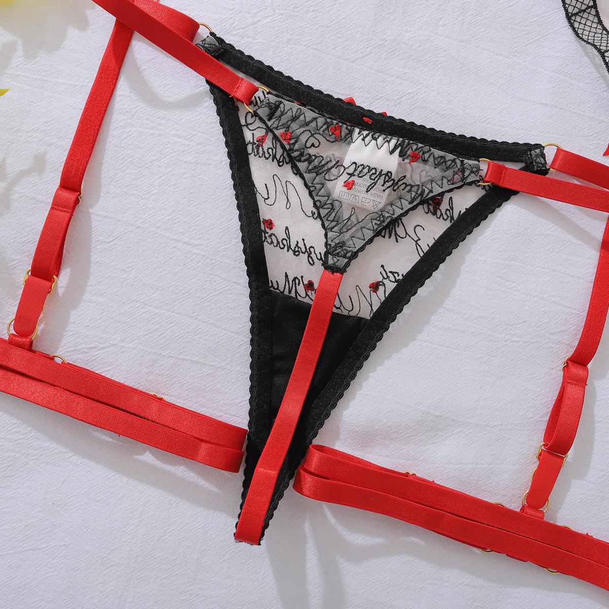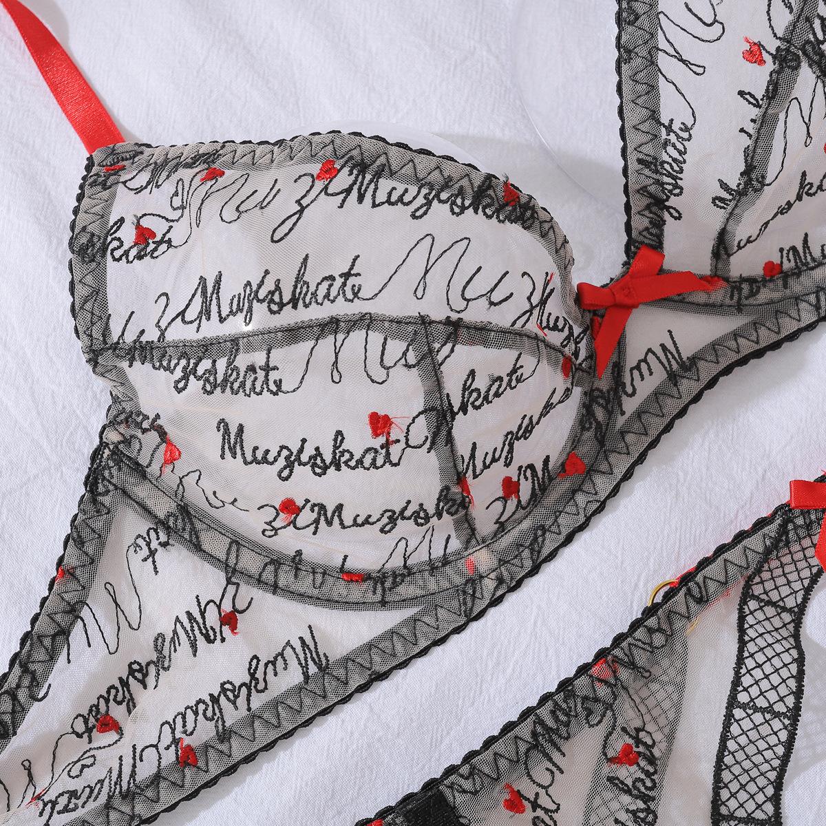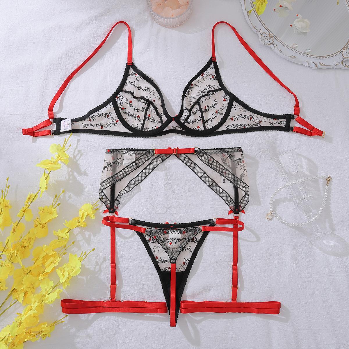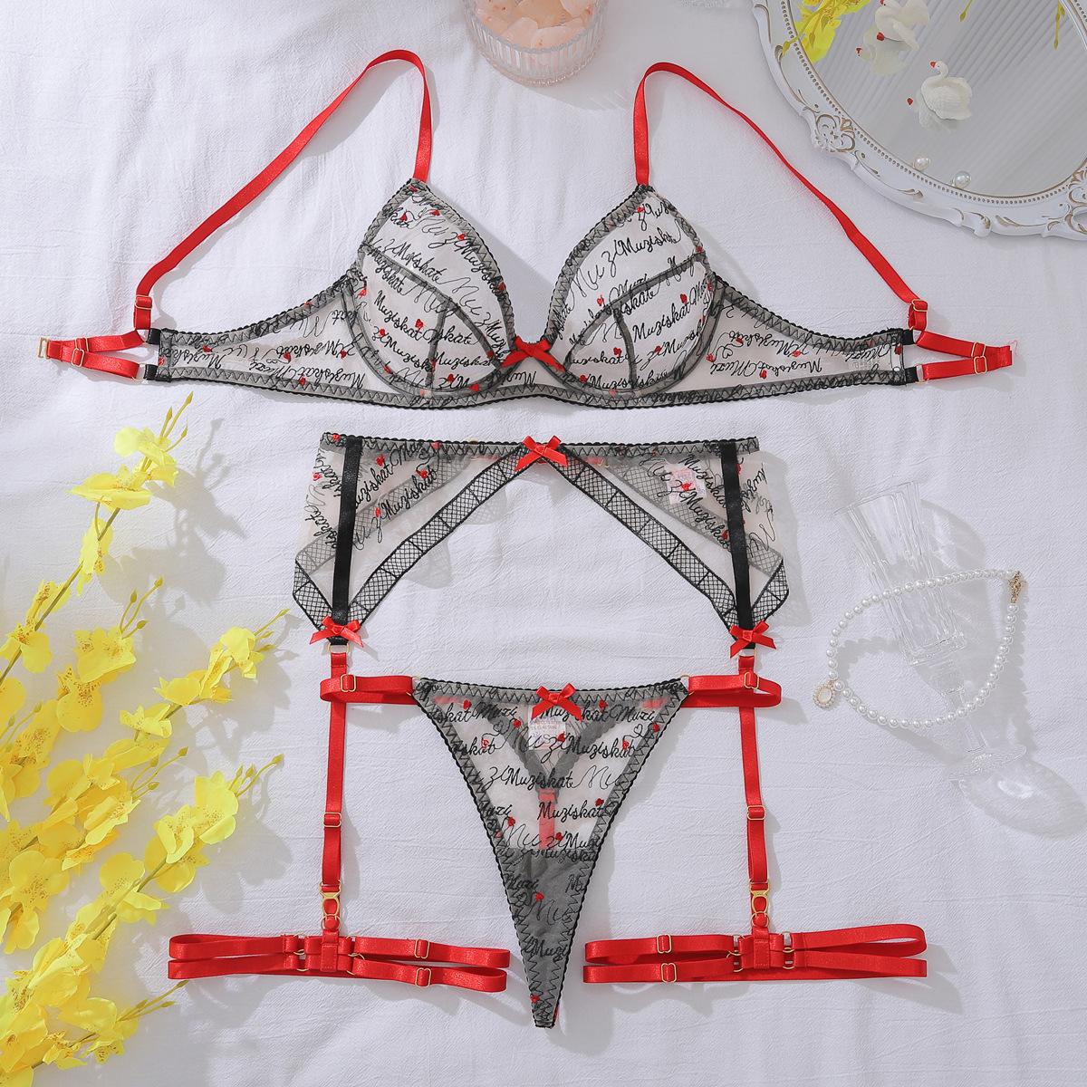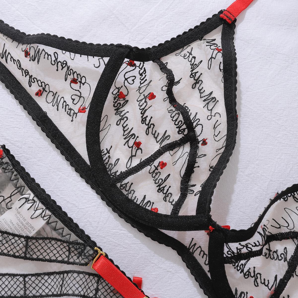 Xiyun Transfronterizo 2025 Decoración de Lazo Bordado de Corazón con Letras Moldeador de Cuerpo Ajustable Lencería Sexy Conjunto de Dos Piezas