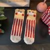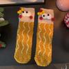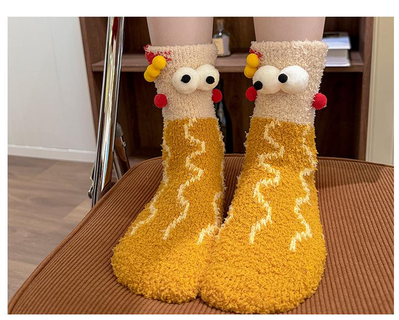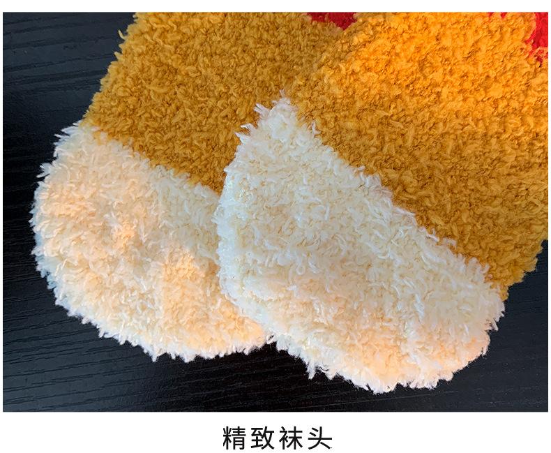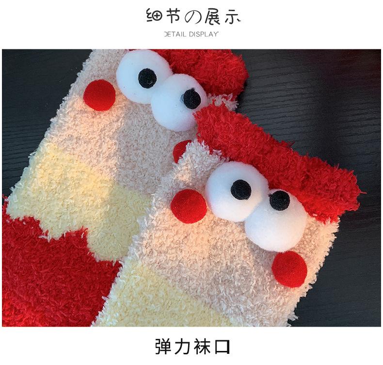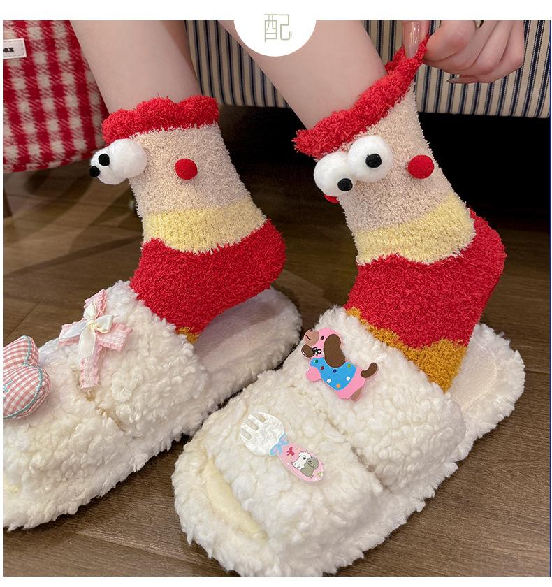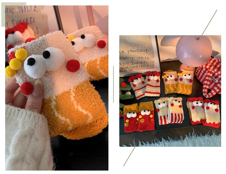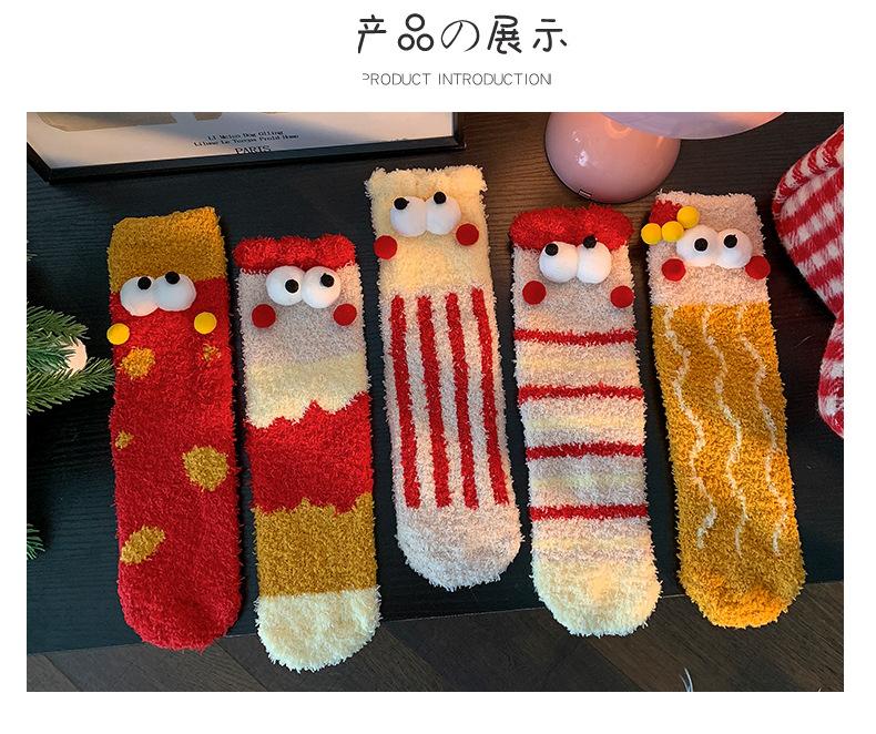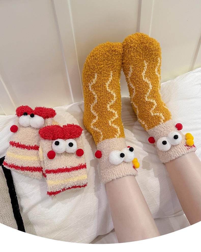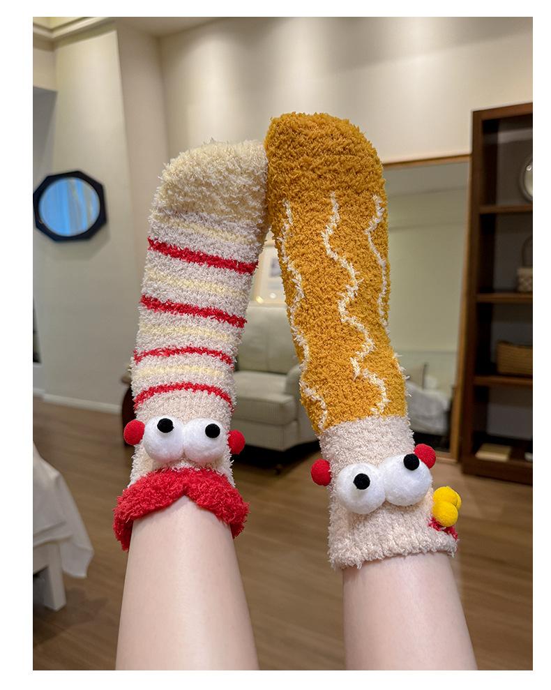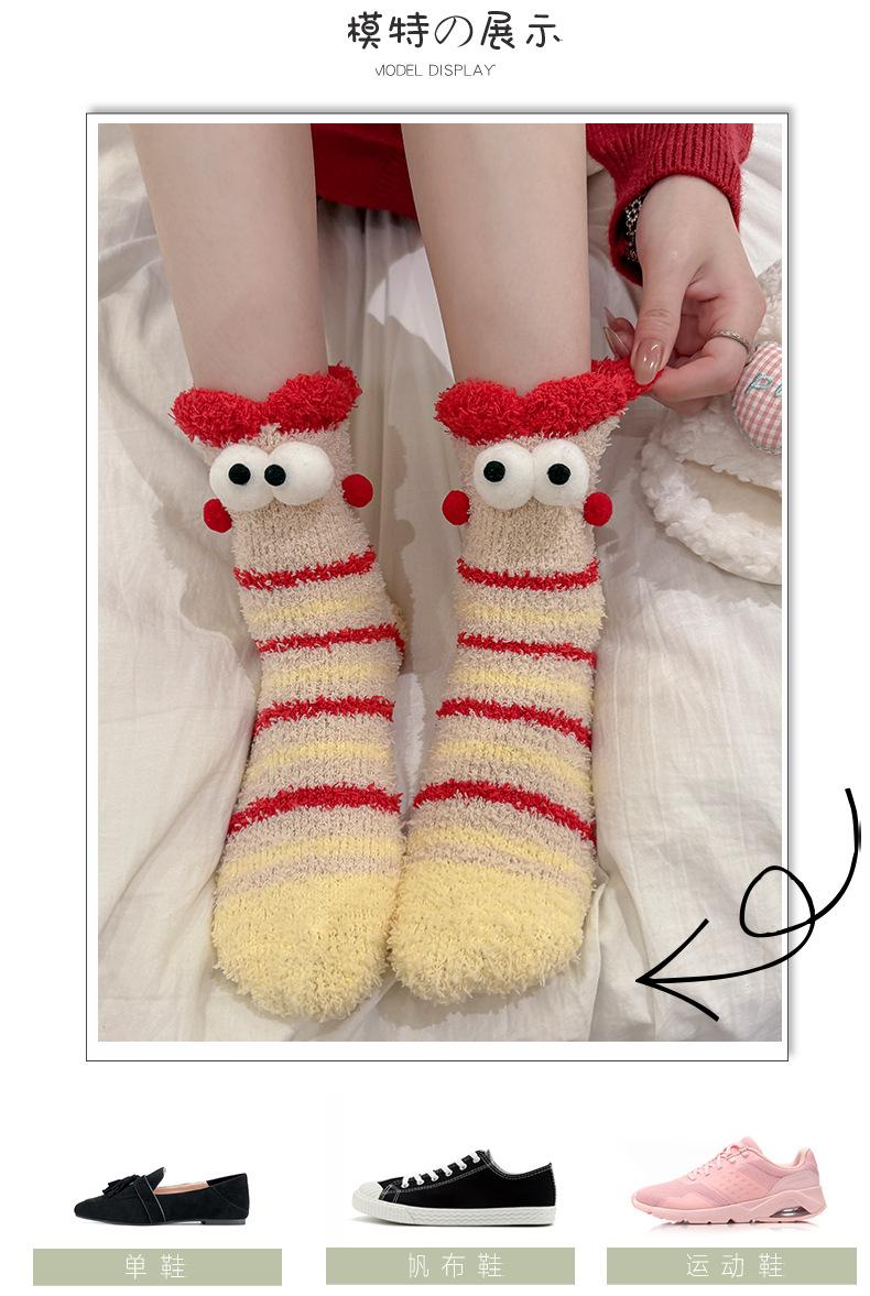 Calcetines para mujer Ojos grandes Calcetines de media caña Invierno Calcetines gruesos Dibujos animados Papas fritas Forro polar coral Cálidos para el hogar Dormir Piso